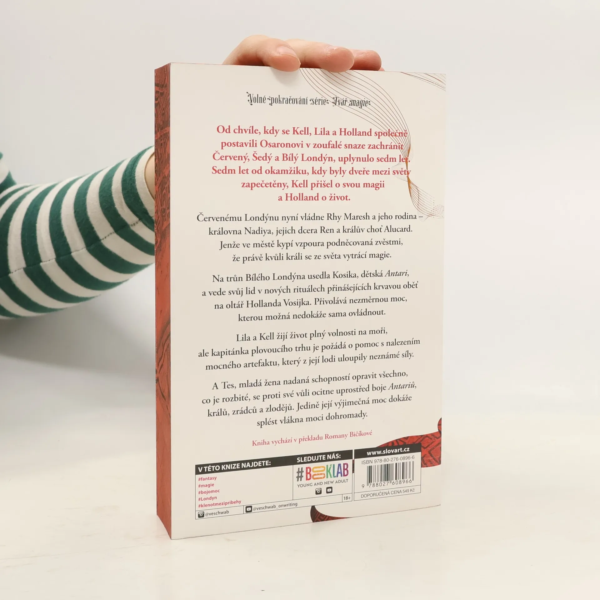 Kdysi existovaly čtyři světy, naskládané na sebe jako stránky v knize. Kypěly magickou mocí a spojovalo je jedno město: Londýn. Pak se však magie začala šířit až příliš prudce a světy se v zoufalé snaze se ochránit oddělily a zapečetily dveře. Otevřít je dokázali jen mágové zvaní Antari, ale ti byli stále vzácnější. V posledních letech byli známí pouze tři - Kell Maresh z Červeného Londýna, Delilah Bardová z Šedého a Holland Vosijk z Bílého. Teď po nich však už sedm let nebylo skoro ani vidu, ani slechu - zato v Bílém Londýně se objevila nová Antari jménem Kosika a usedla v Hollandově nepřítomnosti na trůn. Mladičká královna je ochotná prolévat pro své město krev - svých poddaných i svou vlastní - ale její náboženský zápal se stále stupňuje a hrozí, že by mohl město utopit. V Červeném Londýně mezitím král Rhy Maresh čelí počínajícímu povstání rebelů, kteří jsou odhodlaní nastolit rovnováhu moci tak, že ho svrhnou z trůnu. Mezi starými přáteli a novými nepřáteli se však objeví ještě dívka s neobvyklými magickými schopnostmi a zmocní se přístroje, který by mohl změnit osud všech čtyř světů. Jmenuje se Tes a je to právě ona, kdo může světy spojit - anebo je navždy zničit.