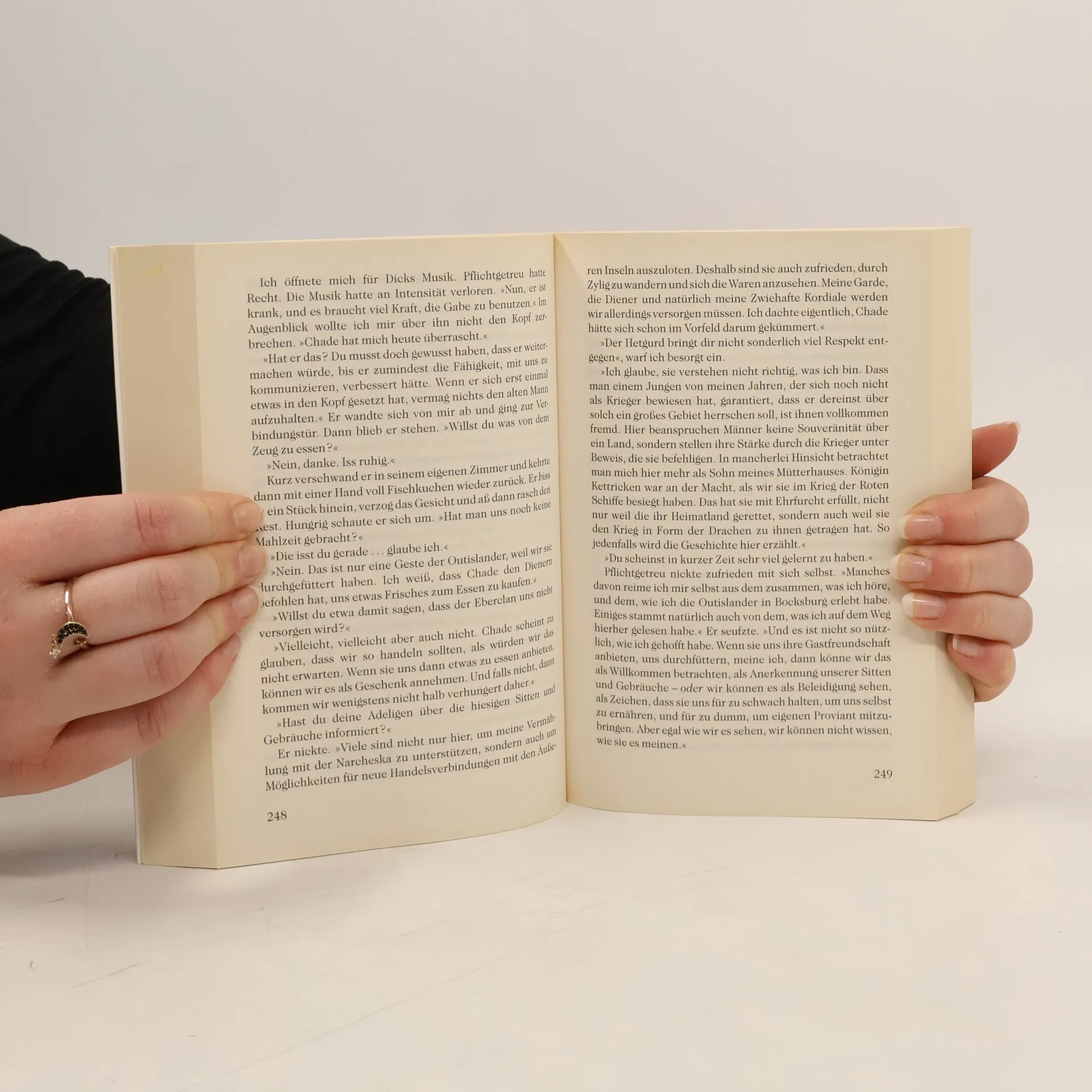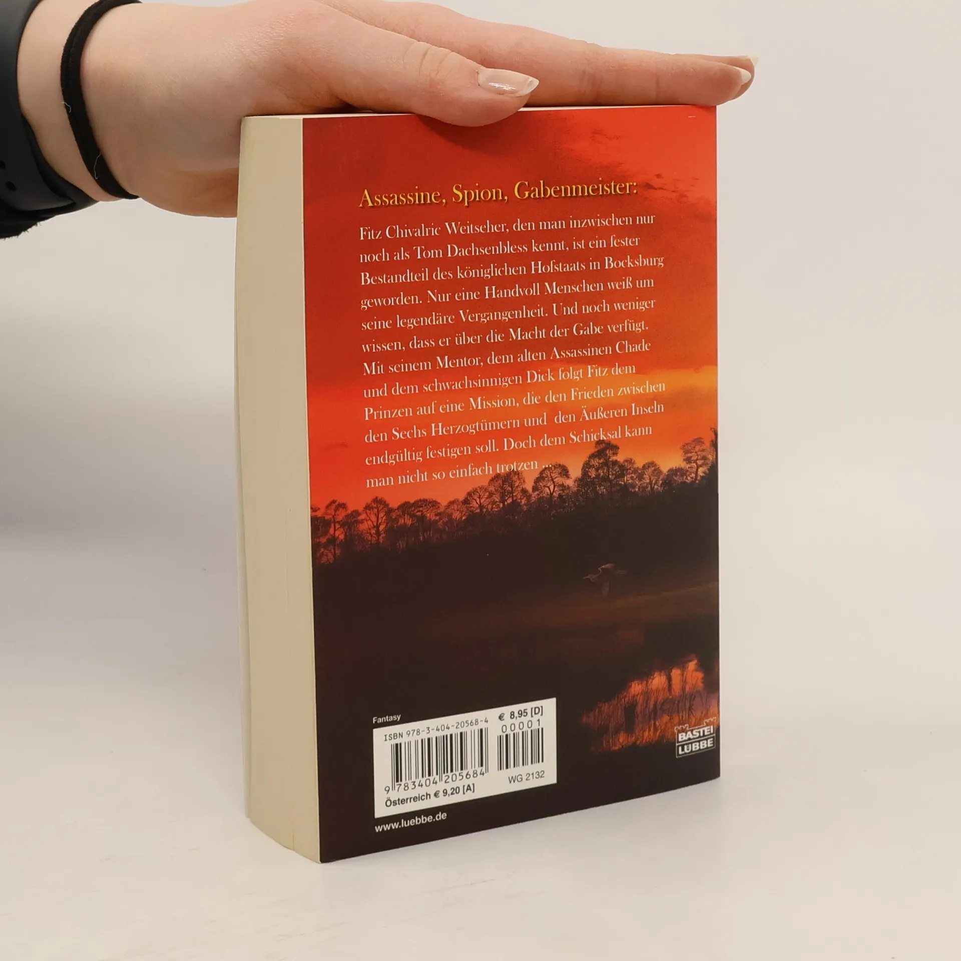 Fitz Chivalric Weitseher, bekannt als Tom Dachsenbless, ist Teil des königlichen Hofstaats in Bocksburg. Nur wenige kennen seine legendäre Vergangenheit und seine Gabe. Gemeinsam mit seinem Mentor Chade und Dick begleitet er den Prinzen auf einer Mission zur Friedenssicherung zwischen den Herzogtümern und den Äußeren Inseln.