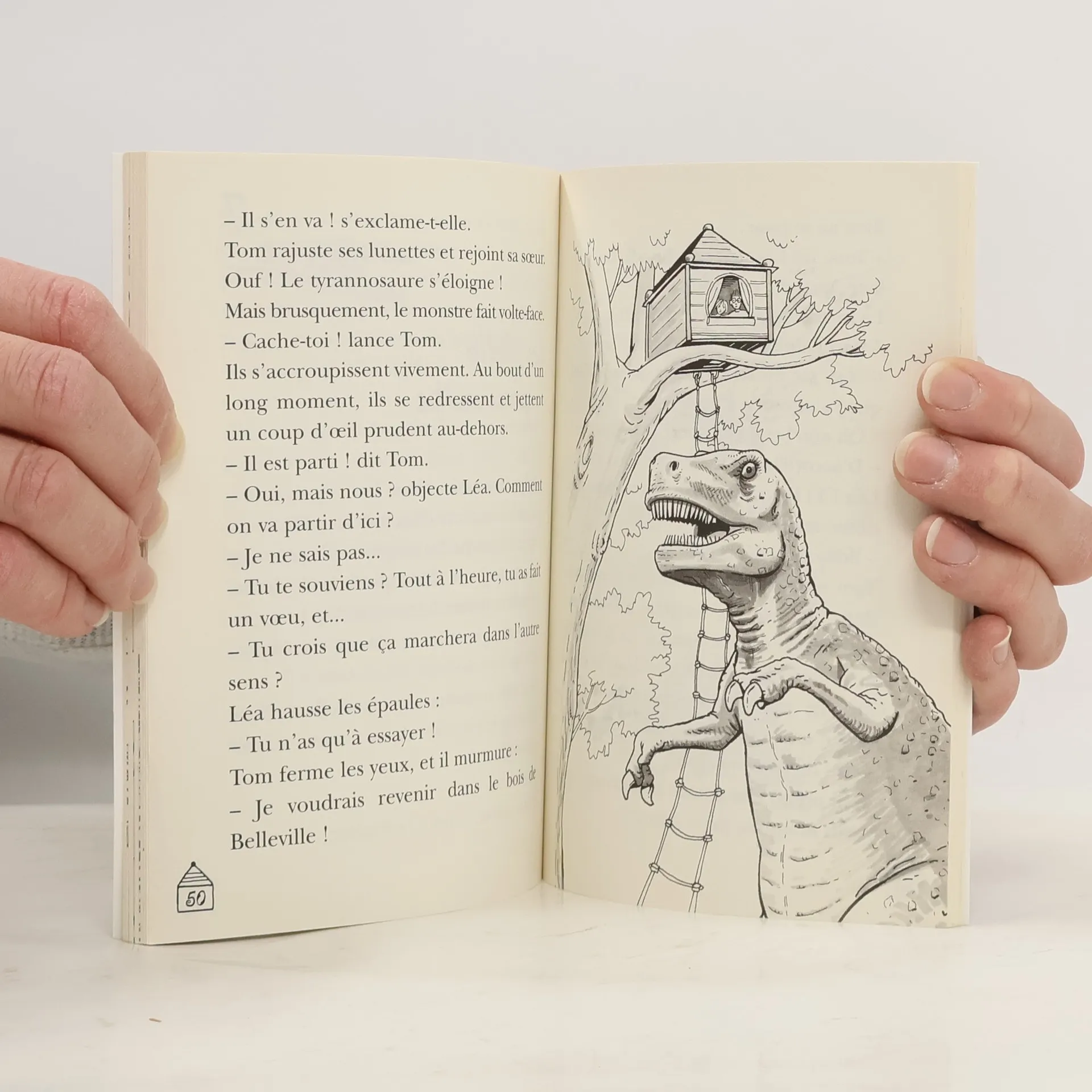 La vallée des dinosaures Tom et sa sœur, Léa, sont projetés au temps des dinosaures. Ils explorent pas à pas un monde peuplé de créatures bizarres et gigantesques, jusqu'au moment où ils se retrouvent face au tyrannosaure, un animal particulièrement féroce... Trouve l'indice caché dans chaque aventure de Tom et Léa et découvre qui est le mystérieux propriétaire de la Cabane magique.