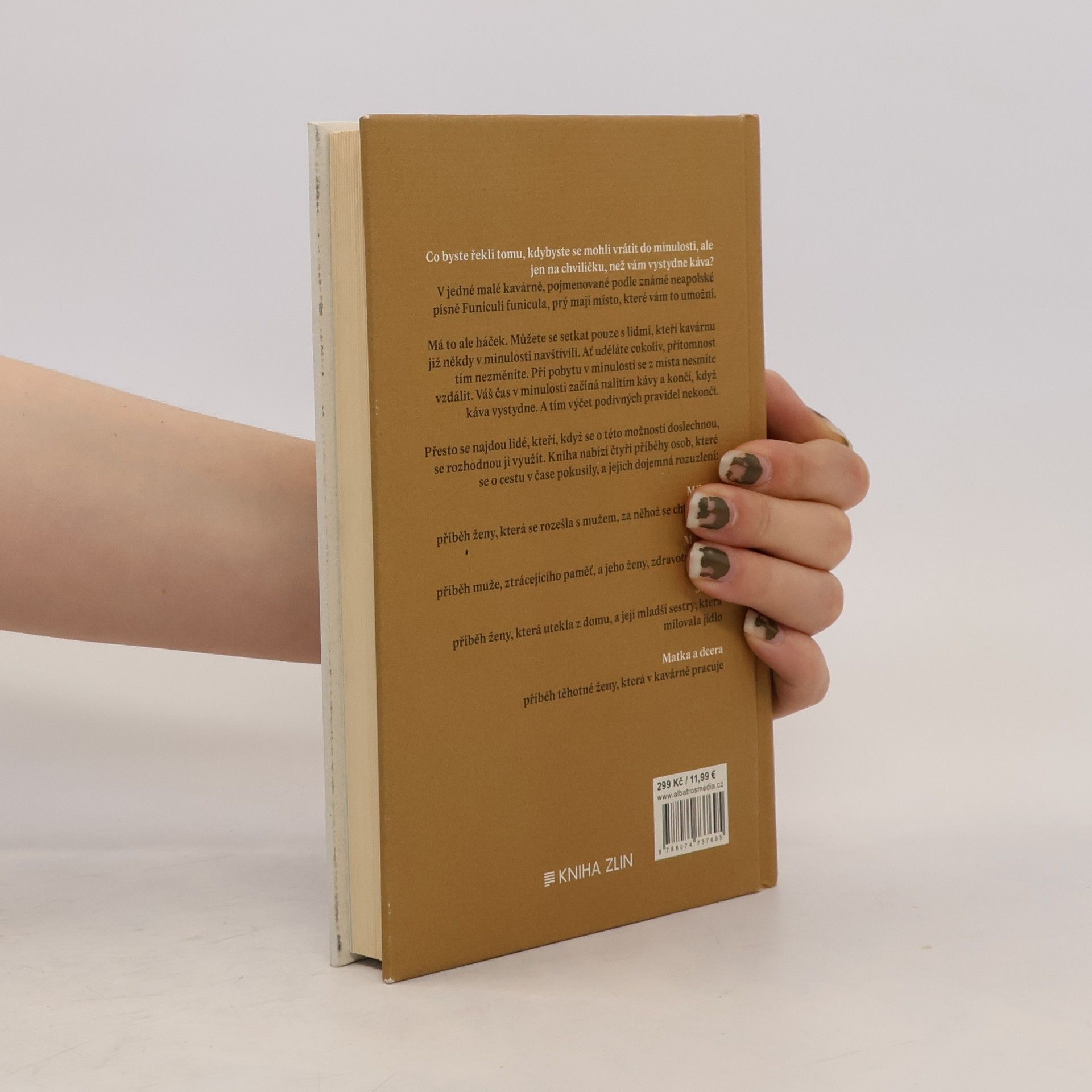 Co byste řekli tomu, kdybyste se mohli vrátit zpět do minulosti, ale pouze na chvilku, než vám vystydne káva? V jedné malé kavárně nazvané Funiculi Funicula, mají místo, které vám to umožní. Ale jen za těchto zvláštních podmínek: Můžete se setkat pouze s lidmi, kteří kavárnu již někdy v minulosti navštívili. Ať uděláte cokoli, přítomnost tím nezměníte. Při pobytu v minulosti se z místa nesmíte vzdálit. Váš čas v minulosti začíná nalitím kávy a končí, když káva vystydne. A tím výčet podivných pravidel nekončí. Přesto se najdou lidé, kteří, když se o této možnosti doslechnou, se rozhodnou ji využít. A co vy? Stáli byste o návrat do minulosti i za takových podmínek? Kniha nabízí čtyři příběhy osob, které se o cestu v čase pokusily, a jejich dojemná rozuzlení. Příběh první: Milenci – příběh ženy, která se rozešla s mužem, za něhož se chtěla vdát Příběh druhý: Manželé – příběh muže ztrácejícího paměť a jeho ošetřovatelky Příběh třetí: Sestry – příběh dívky, která utekla z domu, a její mladší sestry, která milovala jídlo Příběh čtvrtý: Matka a dcera – příběh těhotné ženy, která v této kavárně pracuje
