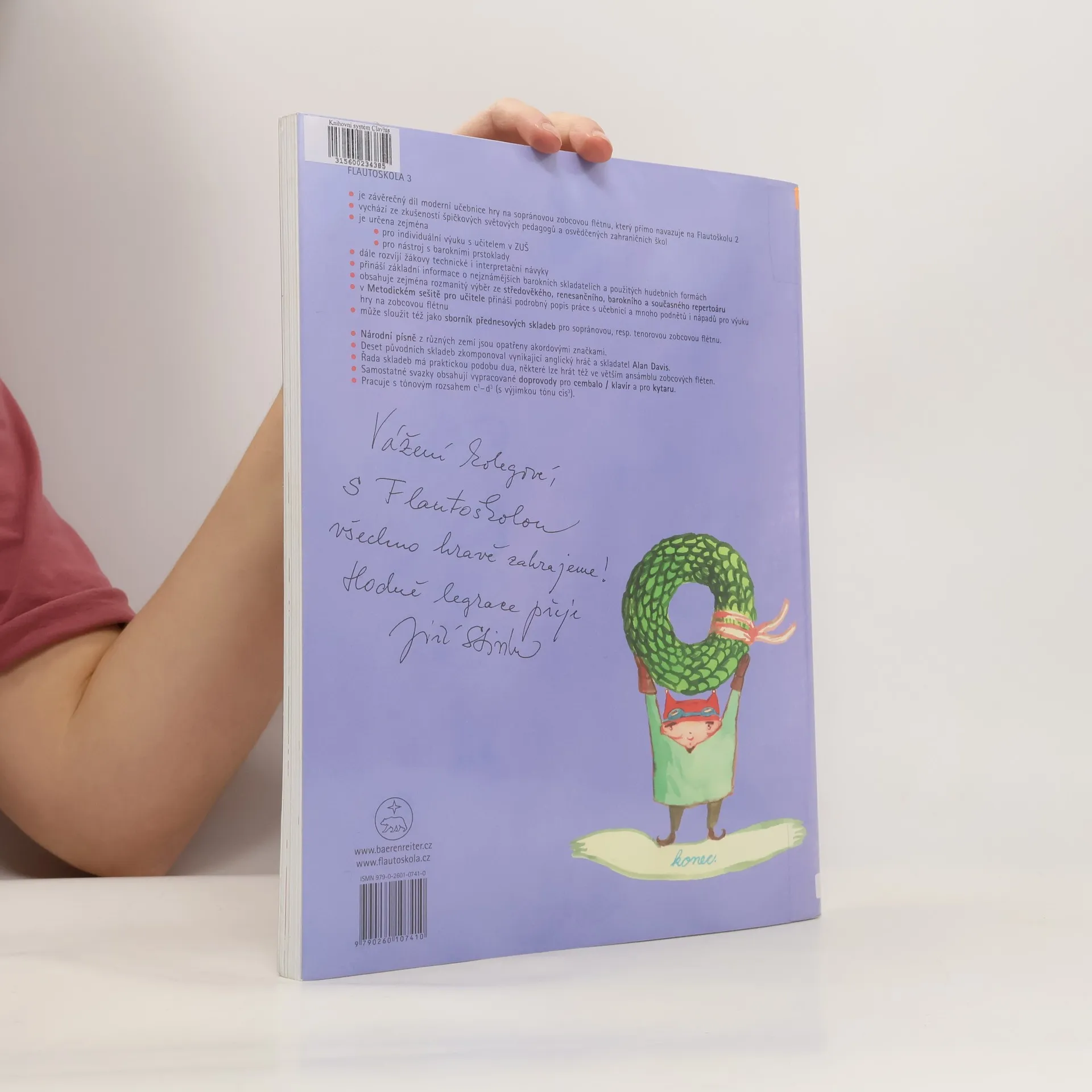 Závěrečný díl oblíbené stejnojmenné série učebnic hry na sopránovou zobcovou flétnu. Přímo navazuje na Flautoškolu 2 a stejně jako předchozí díly má podobu žákovského sešitu s bohatými ilustracemi a detailně zpracovaného metodického sešitu pro učitele. Učebnice je určena zejména pro individuální výuku s učitelem v počátečních ročnících ZUŠ. Učebnice vychází ze zkušeností špičkových světových pedagogů a osvědčených zahraničních škol.