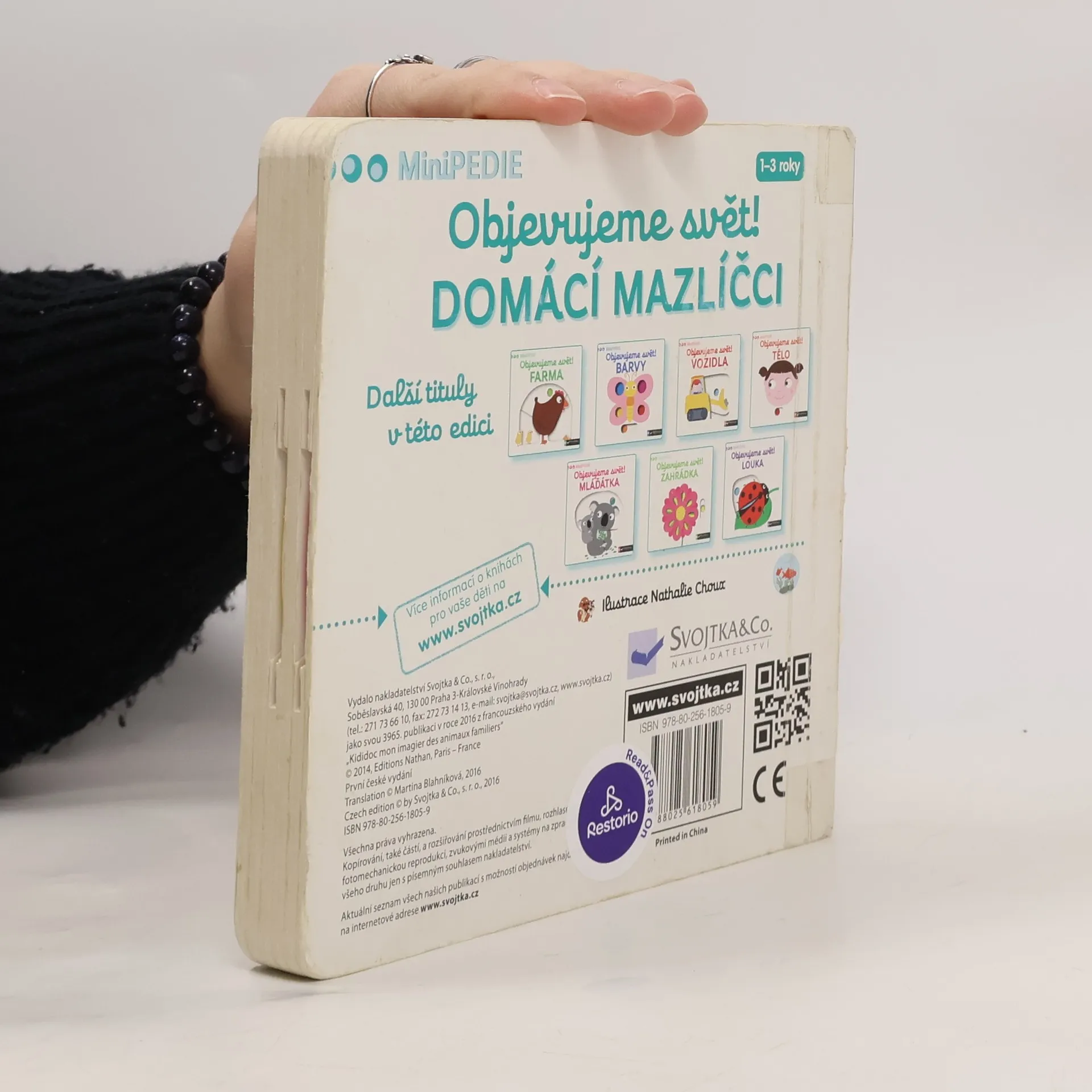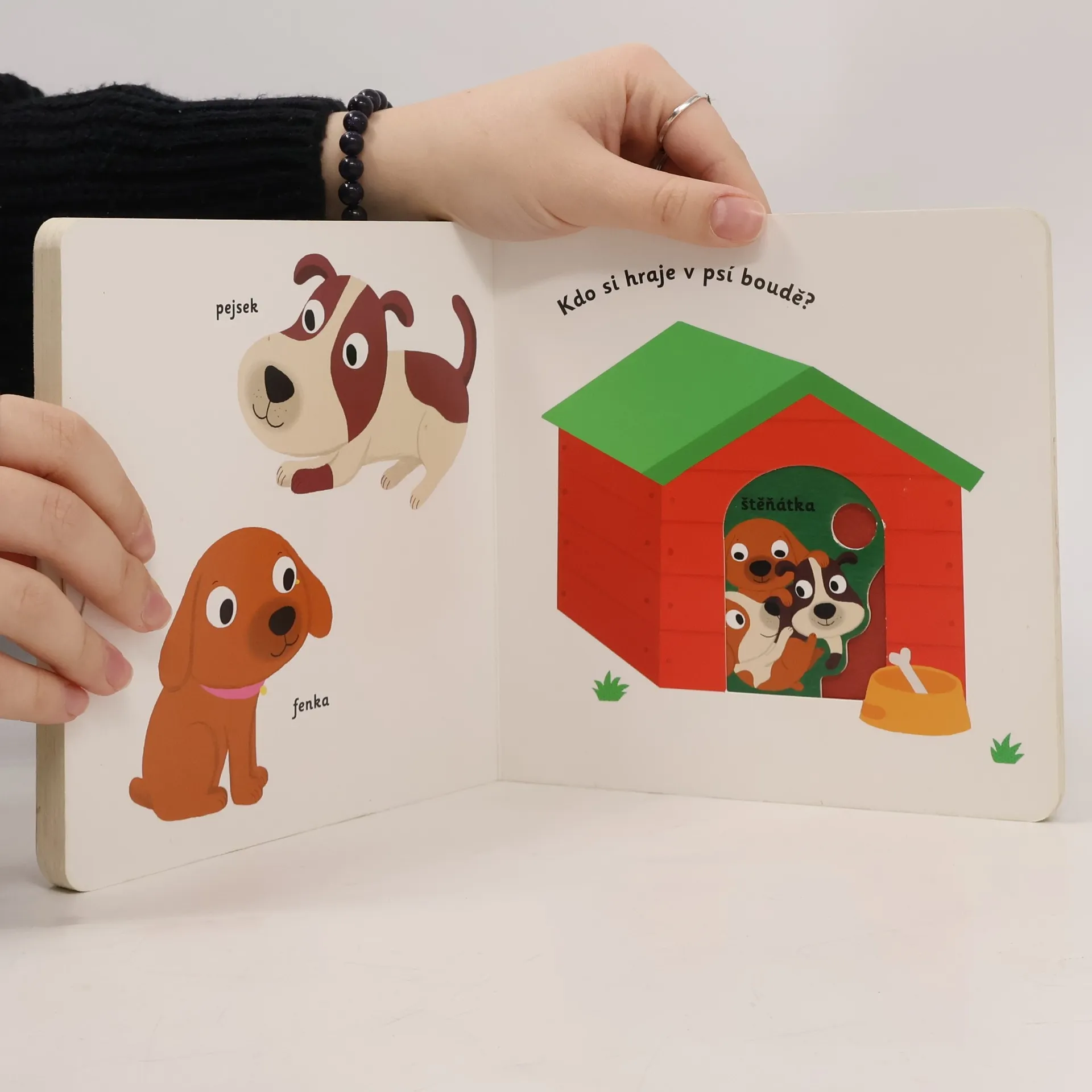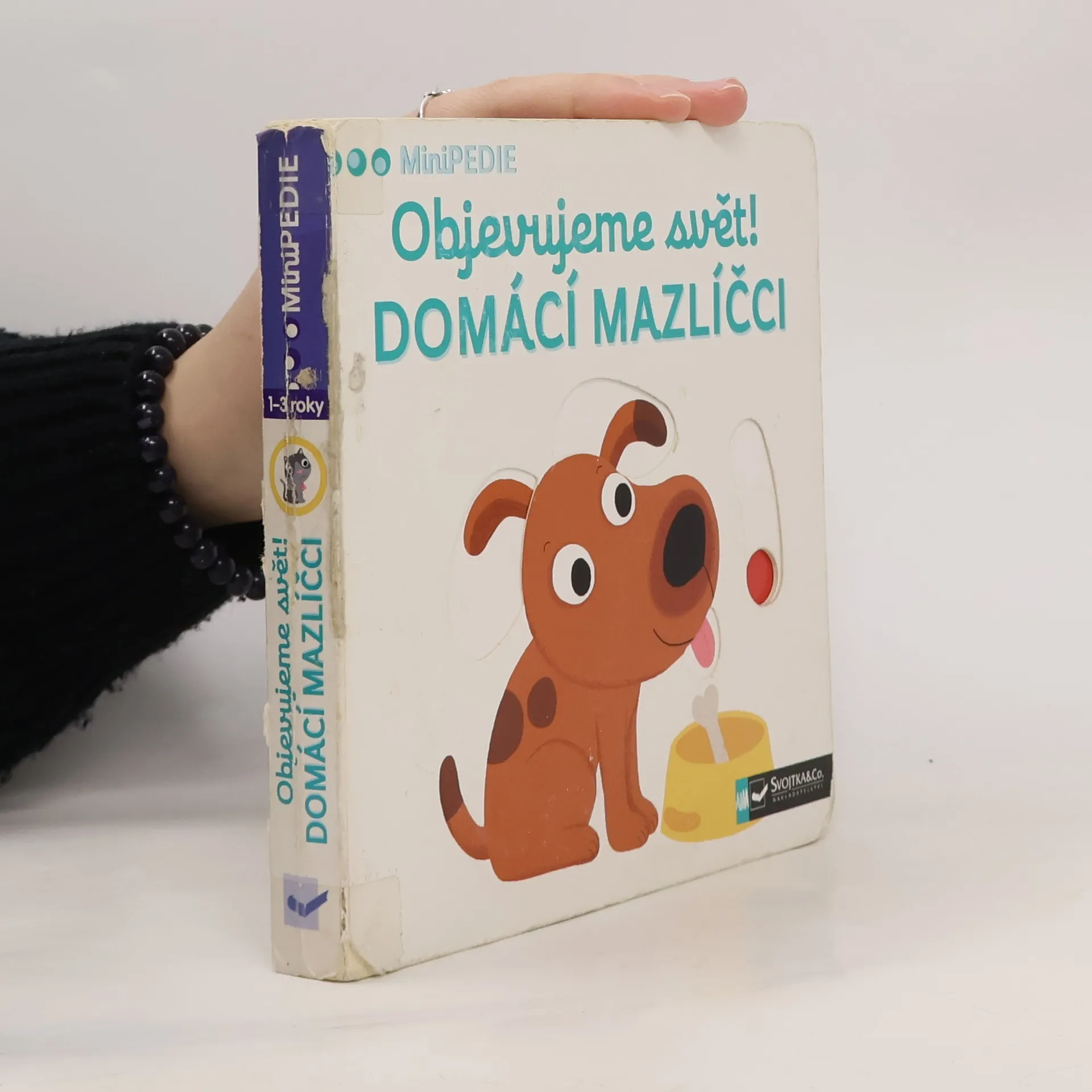 Objevovat svět zvířátek a domácích mazlíčků je s tímto leporelem tak zábavné! Kdo si hraje s klubíčkem vlny? Kdo žije v tomto akváriu? Kdo si hraje v psí boudě? Kdo běhá v kolečku? Pojmenuj zvířátka a ukaž, které máš nejraději! Stačí jen vložit prstík do správného otvoru, lehce posunout nebo otočit ve směru šipky a hned bude váš malý objevitel nebo objevitelka znát odpovědi. Leporelo je určeno pro nejmenší děti od jednoho roku a má pevné stránky s posuvnými prvky, a tak si naši nejmenší mohou při prohlížení a pojmenovávání procvičit i jemnou motoriku.