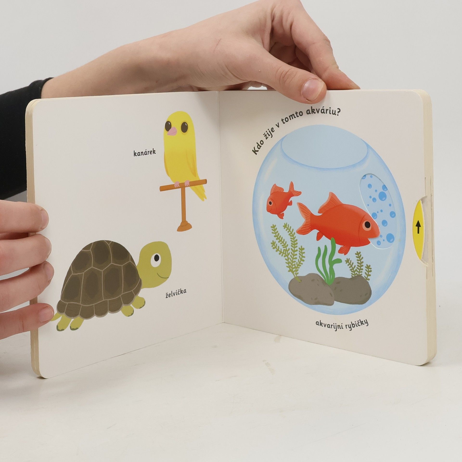 Objevovat svět zvířátek a domácích mazlíčků je s tímto leporelem tak zábavné! Kdo si hraje s klubíčkem vlny? Kdo žije v tomto akváriu? Kdo si hraje v psí boudě? Kdo běhá v kolečku? Pojmenuj zvířátka a ukaž, které máš nejraději! Stačí jen vložit prstík do správného otvoru, lehce posunout nebo otočit ve směru šipky a hned bude váš malý objevitel nebo objevitelka znát odpovědi. Leporelo je určeno pro nejmenší děti od jednoho roku a má pevné stránky s posuvnými prvky, a tak si naši nejmenší mohou při prohlížení a pojmenovávání procvičit i jemnou motoriku.