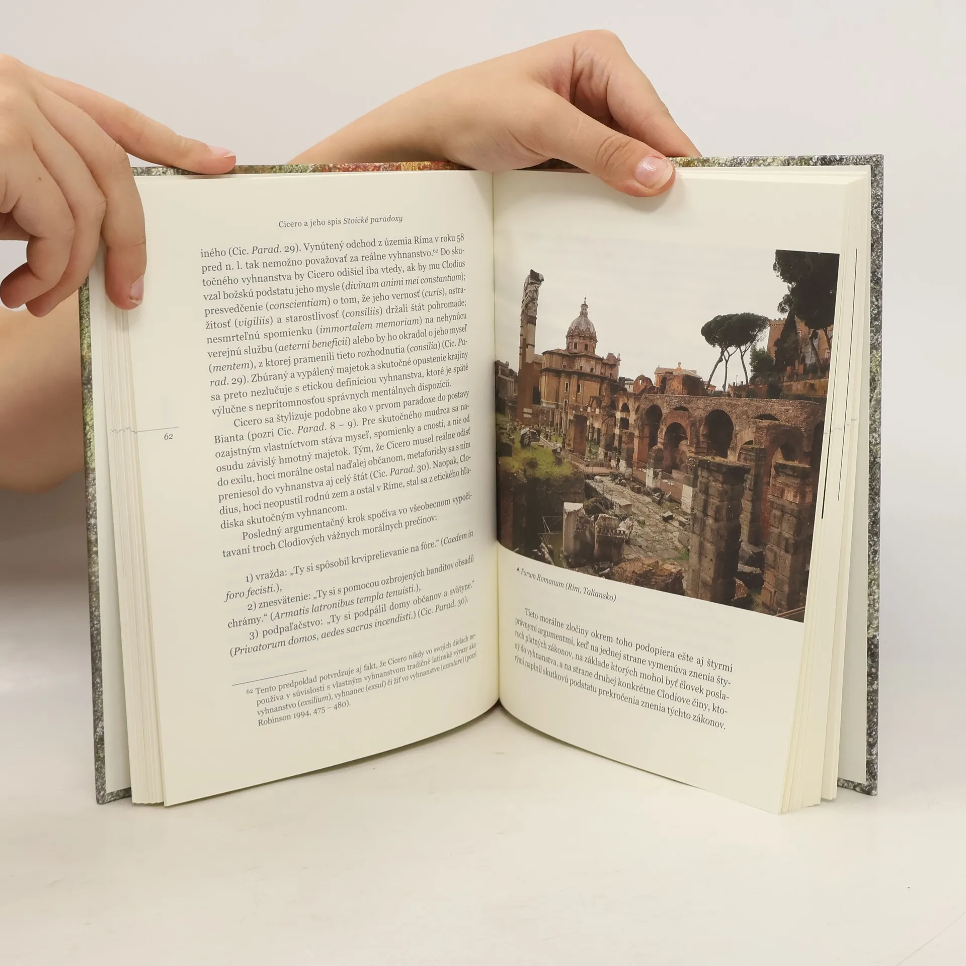 Stoické paradoxy napísal filozof Marcus Tullius Cicero pravdepodobne v prvej polovici roka 46 pred n. l. Autor tu obhajuje šesť etických tvrdení, ktoré sú na prvý pohľad v rozpore s bežným uvažovaním. Z hľadiska etického myslenia stoikov sú však pravdivé. Ukazujú spôsob, ako sa dajú filozofické nyšlienky preniesť do rečníckeho prejavu. Zároveň sa v nich Cicero púšťa do kritiky dobových spoločenských pomerov. Prostredníctvom Stoických paradoxov tak slovenskí čitatelia dostávajú možnosť poodhaliť autorov rečnícky, filozoficky aj politický spôsob myslenia.