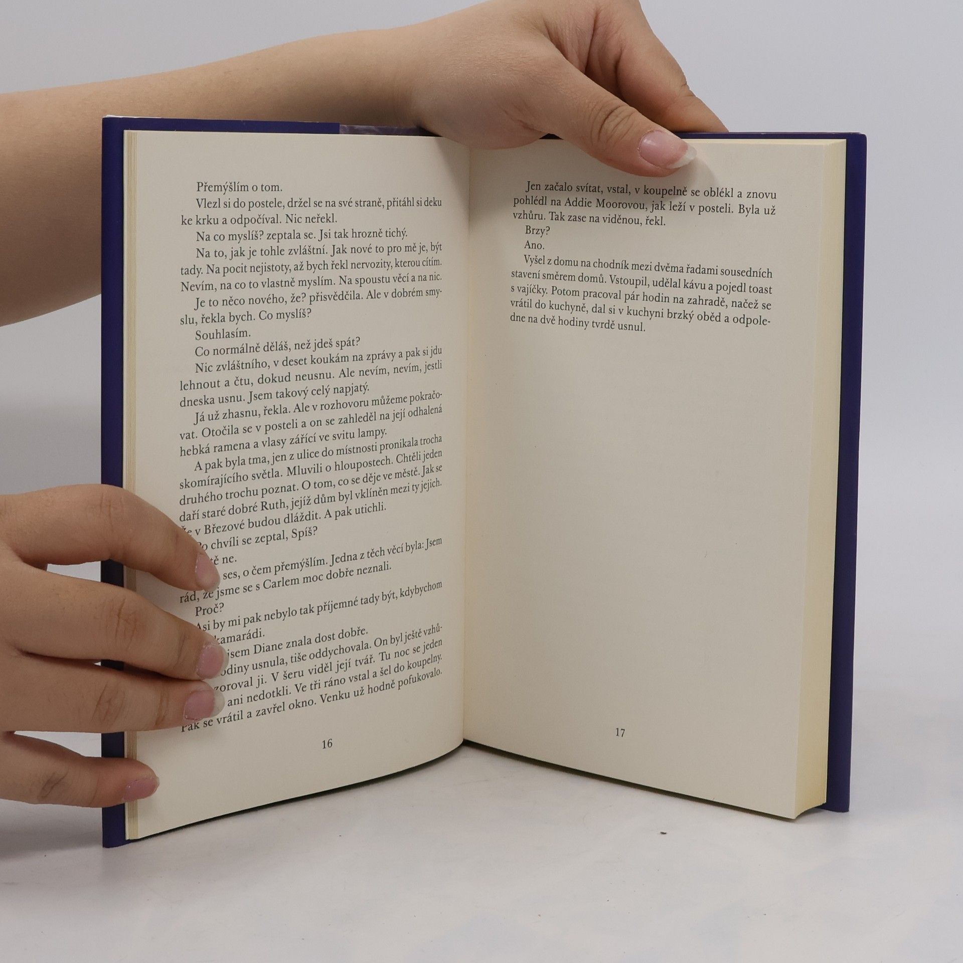 „Cítím se osaměle. Říkala jsem si, že i ty se tak možná cítíš. Tak si říkám, jestli bys ke mně nepřišel. Na noc. Na kus řeči,“ osloví jednoho večera sedmdesátiletá Addie svého souseda Louise. Oba již před lety ovdověli a jejich životy na malém městě plynou ve stereotypech, které chabě vyplňují prázdnotu. Rozhodnou se nebrat ohledy na to, co si pomyslí ostatní, a začnou se scházet. V nočních rozhovorech poodhalují jeden druhému svou minulost, bolesti, touhy a ztracené lásky. Stávají se z nich dobří přátelé, později i milenci, náhle si připadají jako lidé, kteří mají konečně štěstí. Addiin syn je však kategoricky proti jejich vztahu a dá matce ultimátum, které nelze brát na lehkou váhu. Americký spisovatel Kent Haruf psal svou křehkou novelu vážně nemocný s vědomím, že se jejího vydání již nedočká, a vložil do ní vlastní touhu po životě a lásce a smířlivou radost z krátkých momentů štěstí. Dílo zaujalo čtenáře i filmaře a stejnojmenná filmová adaptace (2017, rež. Ritesh Batra) přinesla krásné role osmdesátníkům Robertu Redfordovi a Jane Fondové.