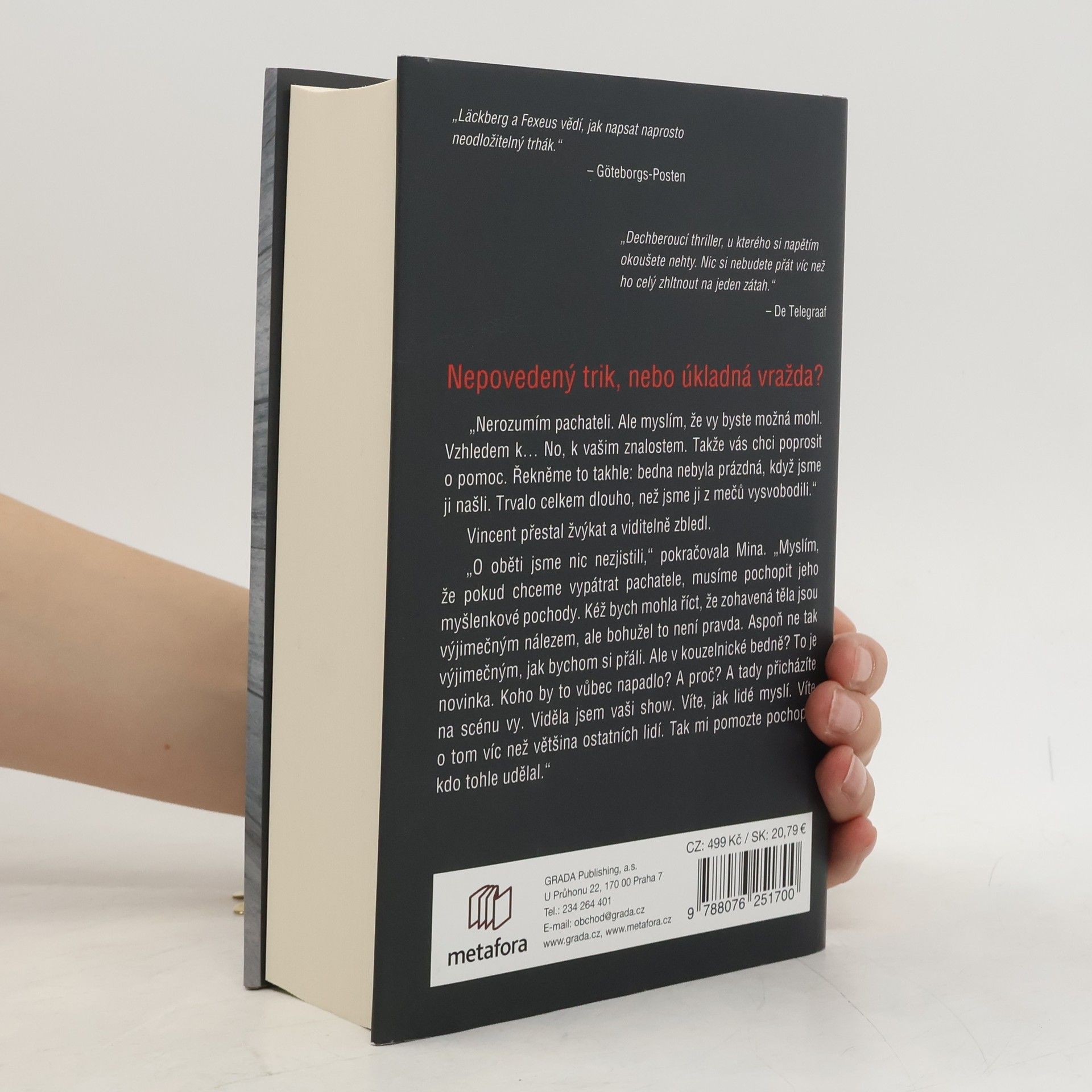Jediný způsob, jak ho dopadnout, je být o krok před ním Před zábavním parkem ve Stockholmu objeví policie tělo ženy v bedně probodané meči. I když to na první pohled připomíná nepovedený kouzelnický trik, záhy je jasné, že se jedná o mimořádně brutální vraždu. Totožnost oběti však zůstává záhadou a případ se nehýbe z místa. Policistka Mina Dabiriová nakonec nevidí jinou možnost než požádat o pomoc Vincenta Waldera, mentalistu a odborníka na lidskou psychiku i magii. Ačkoli Vincent zpočátku není spoluprací nijak nadšený, probudí se v něm hluboko zasunuté vzpomínky. Spolu s Minou, která rovněž bojuje se svými démony, si během vyšetřování uvědomí, že pronásledují nelítostného sériového vraha. A ten jako by se snažil Vincentovi něco říct. Podaří se jim ho zastavit, než bude obětí víc?