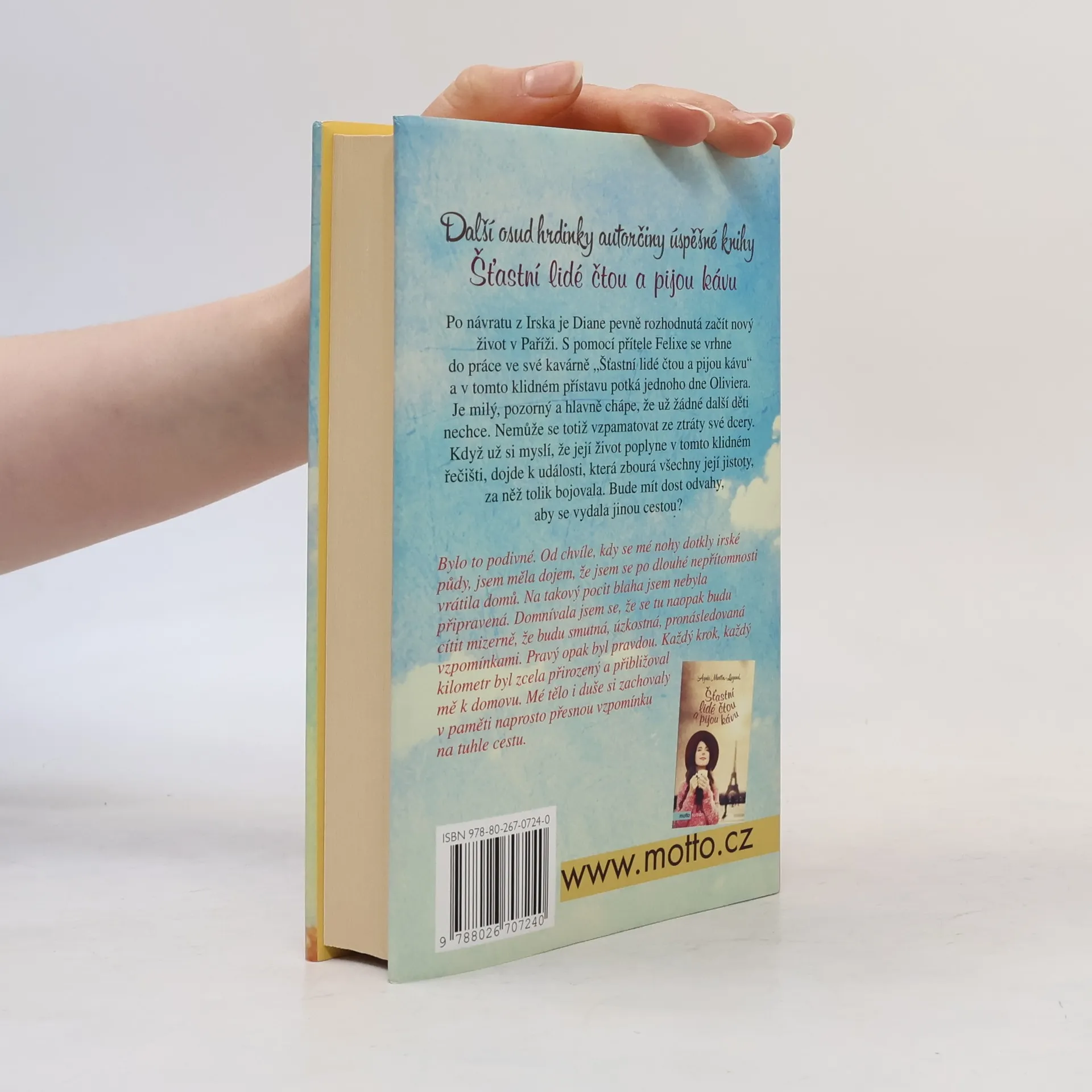 Další osud hrdinky autorčiny úspěšné knihy "Šťastní lidé čtou a pijou kávu". Po návratu z Irska je Diane pevně rozhodnutá začít nový život v Paříži. S pomocí přítele Felixe se vrhne do práce ve své kavárně „Šťastní lidé čtou a pijou kávu“ a v tomto klidném přístavu potká jednoho dne Oliviera. Je milý, pozorný a hlavně chápe, že Diane už nechce žádné děti. Nemůže se totiž vzpamatovat ze ztráty své dcery. Když už si Diane myslí, že její život poplyne v tomto klidném řečišti, dojde k události, která zbourá všechny její jistoty, za něž tolik bojovala. Bude mít dost odvahy, aby se vydala jinou cestou?