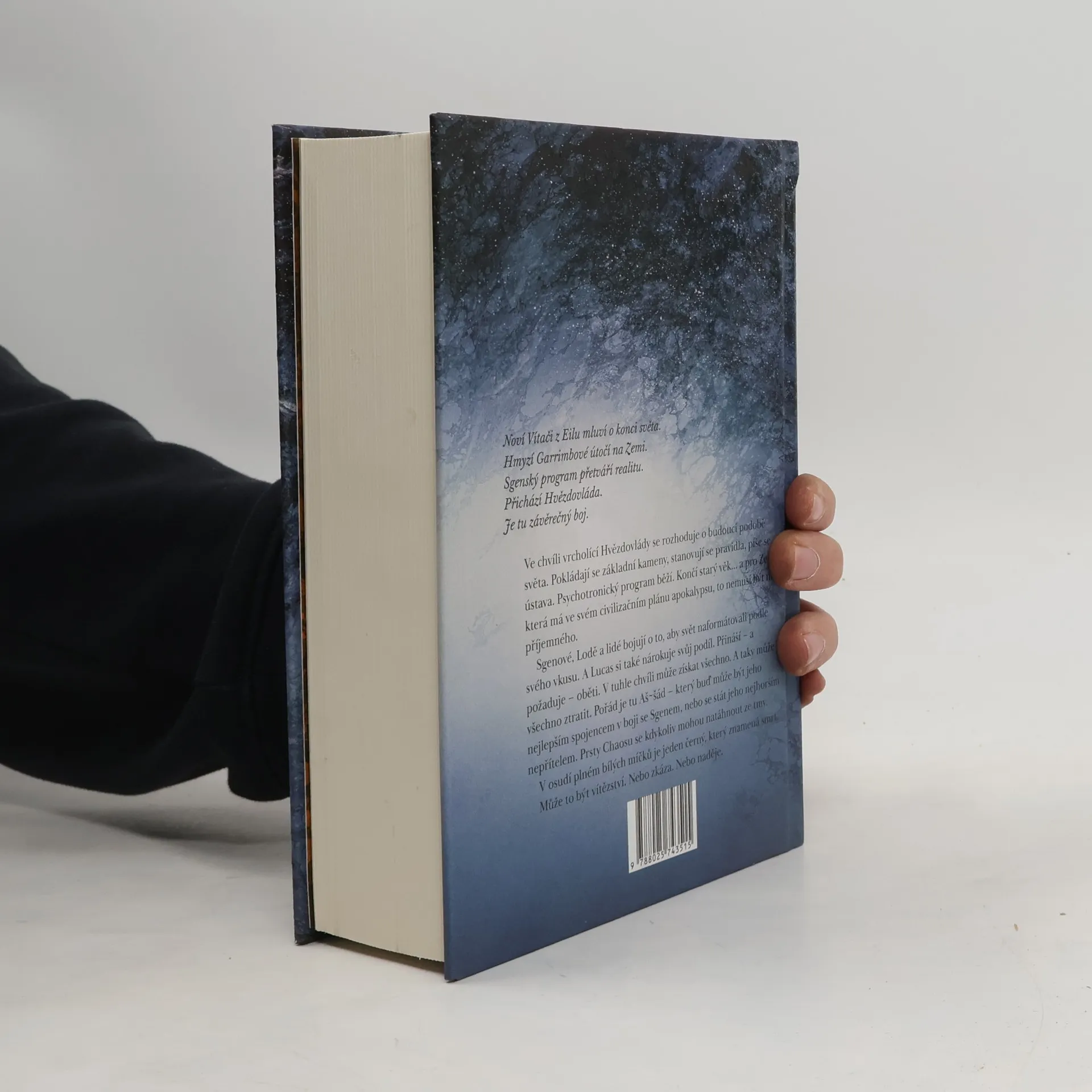 Velkolepé vyvrcholení nejobsáhlejší české sci-fi ságy Mycelium je zde. Intriky, psychotronika a krvavé oběti. Všechno míří právě sem. Tohle už je konec. Ve chvíli vrcholící Hvězdovlády se rozhoduje o budoucí podobě světa. Psychotronický program běží. Končí starý věk... a pro Zemi, která má ve svém civilizačním plánu apokalypsu, to nemusí být nic příjemného. Sgenové, Lodě a lidé bojují o to, aby svět naformátovali podle svého vkusu. A Lucas si také nárokuje svůj podíl. Přináší – a požaduje – oběti. V tuhle chvíli může získat všechno. A taky může všechno ztratit. Aš~šád může být jeho nejlepším spojencem v boji se Sgenem, nebo se stát jeho nejhorším nepřítelem. Prsty Chaosu se kdykoliv mohou natáhnout ze tmy. V osudí plném bílých míčků je jeden černý, který znamená smrt. Může to být vítězství. Nebo zkáza. Nebo naděje.