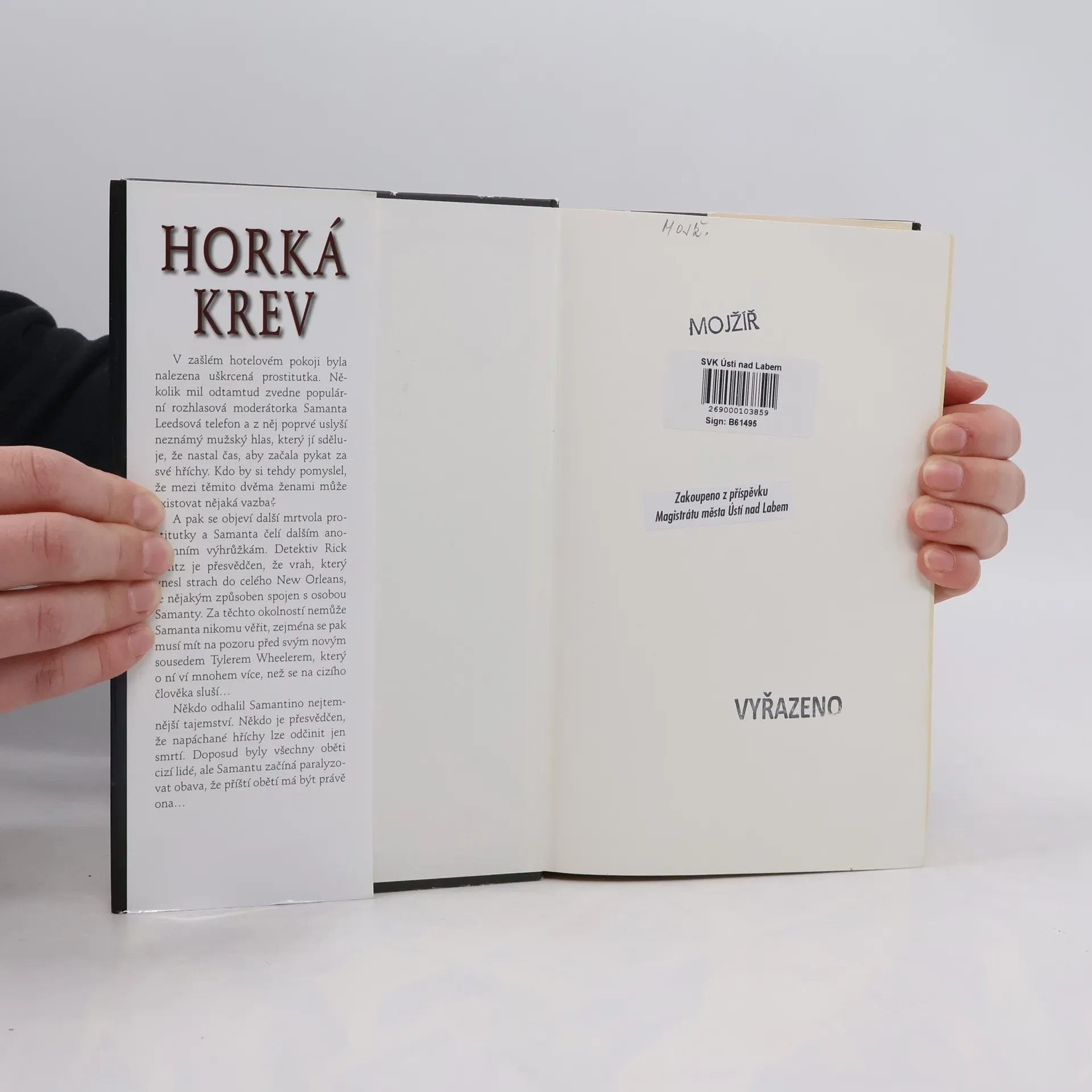 V zašlém hotelovém pokoji byla nalezena uškrcená prostitutka. Několik mil odtamtud zvedne populární rozhlasová moderátorka Samantha Leedsová telefon a z něj poprvé uslyší neznámý mužský hlas, který jí sděluje, že nastal čas, aby začala pykat za své hříchy. Kdo by si tehdy pomyslel, že mezi těmito dvěma ženami může existovat nějaká vazba? A pak se objeví další mrtvola prostitutky a Samantha čelí dalším anonymním výhrůžkám. Detektiv Rick Bentz je přesvědčen, že vrah, který vnesl strach do celého New Orleans, je nějakým způsoben spojen s osobou Samanthy. Za těchto okolností nemůže Samantha nikomu věřit, zejména se pak musí mít na pozoru před svým novým sousedem Ty Wheelerem, který o ní ví mnohem více, než se na cizího člověka sluší… Někdo odhalil Samanthino nejtemnější tajemství. Někdo je přesvědčen, že napáchané hříchy lze odčinit jen smrtí. Doposud byly všechny oběti cizí lidé, ale Samanthu začíná paralyzovat obava, že příští obětí má být právě ona…