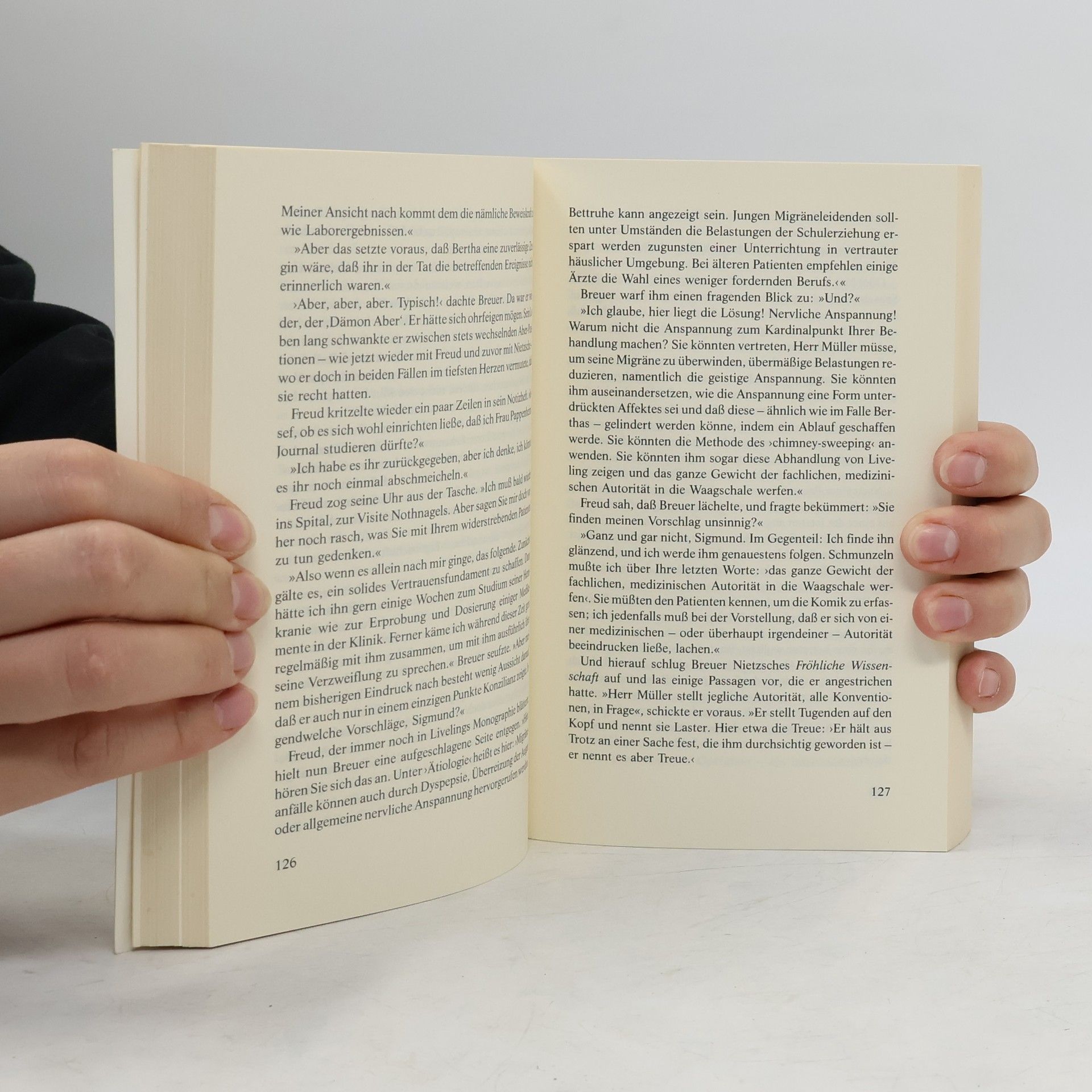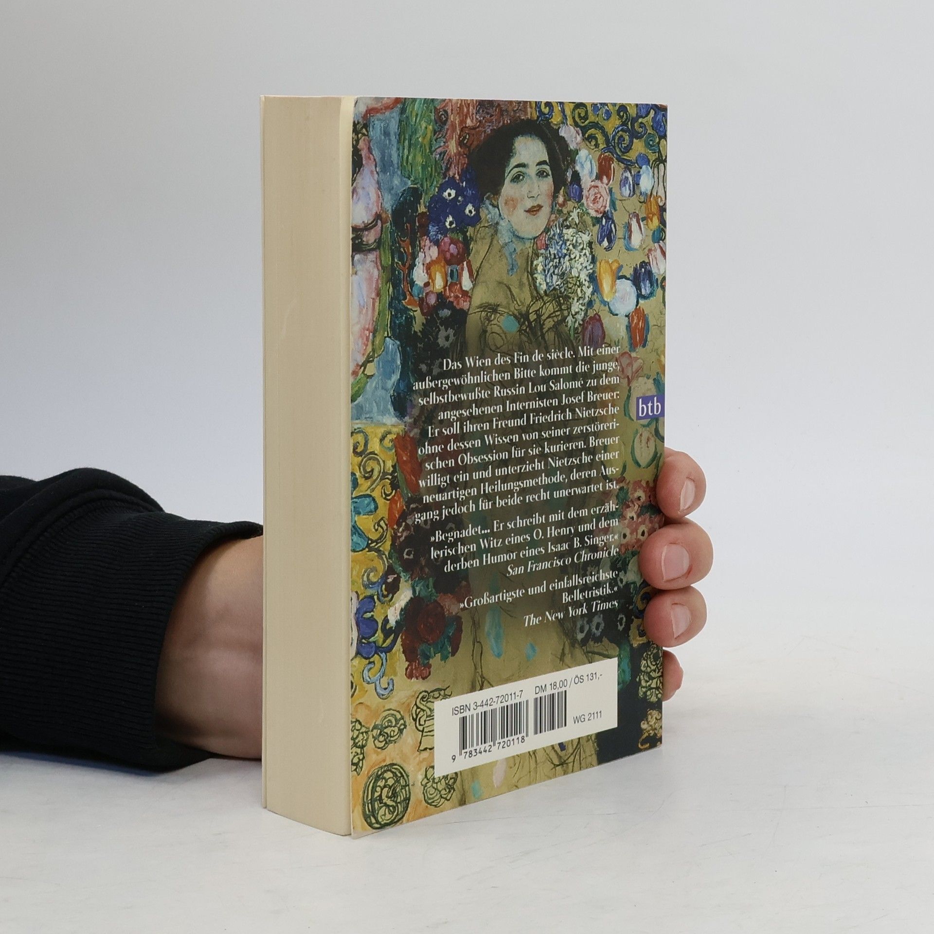 Das Wien des Fin de siècle. Die junge Russin Lou Salomé sucht Josef Breuer auf, den angesehenen Arzt und Mentor Sigmund Freuds. Sie macht sich Sorgen um ihren Freund Friedrich Nietzsche. Breuer soll den unter betäubenden Kopfschmerzen leidenden, einsamen großen Denker kurieren und von seiner Obsession für sie heilen. Doch Nietzsche darf nicht erfahren, dass Salomé Breuer gebeten hat, ihn zu behandeln. Breuer will ihn der neuartigen \"Redekur\" unterziehen, die er gerade mit seiner Patientin Anna O. entwickelt hat. Um Nietzsche zum Reden zu bewegen, beginnt er von seiner Obsession für die junge Patientin Bertha zu erzählen. So entspinnen sich zwischen dem ruhigen, einfühlsamen Breuer und dem verschlossenen, verletzlichen Nietzsche heftige Rededuelle. Und je näher sich die beiden kommen, umso deutlicher muss Breuer erkennen, dass er Nietzsche nur heilen kann, wenn er diesem erlaubt, auch ihm zu helfen. Yalom verwebt Fiktion und Wirklichkeit zu einem dichten Netz, und bald beginnen die großen Köpfe aus den Pioniertagen der Psychotherapie lebendig zu werden und zu uns zu sprechen.