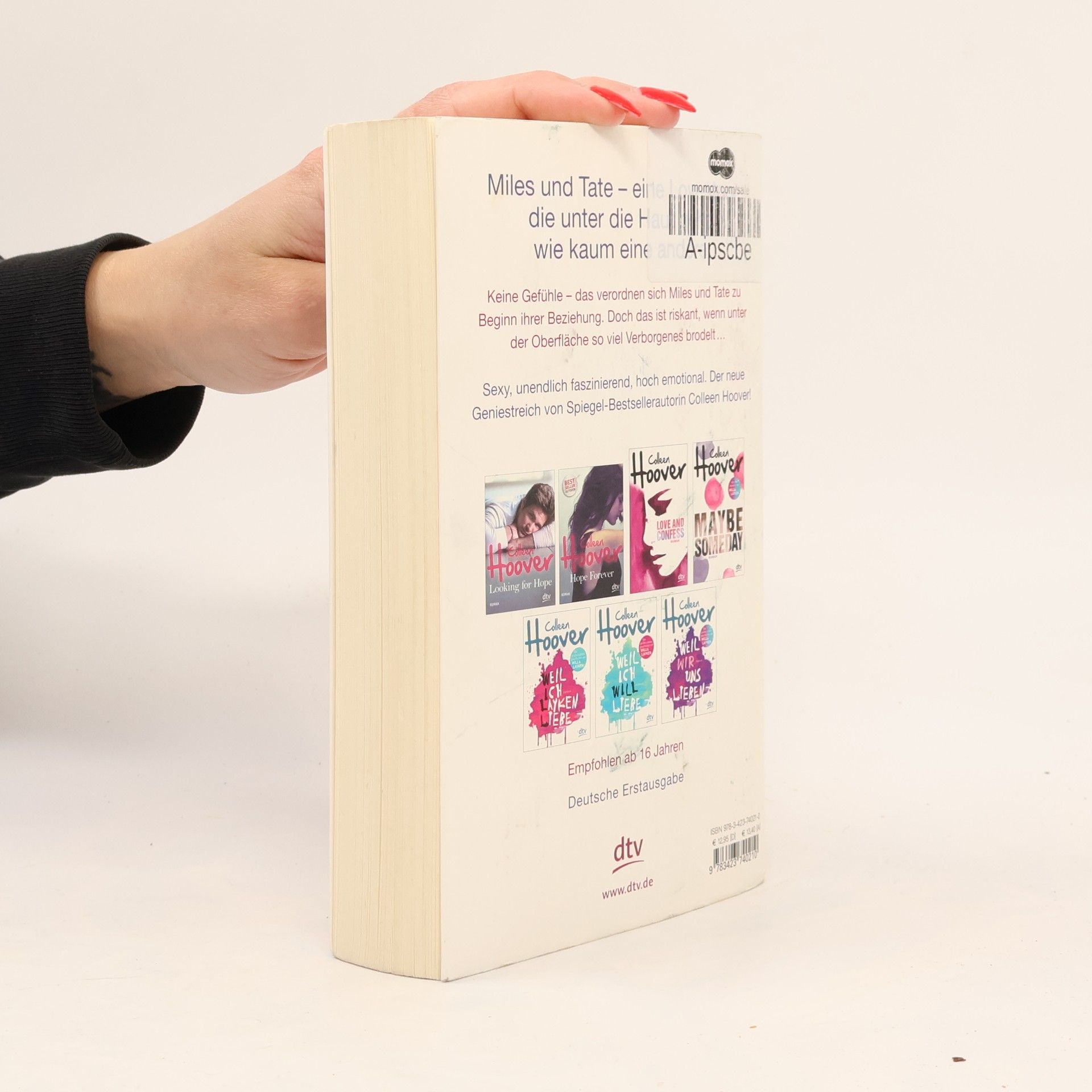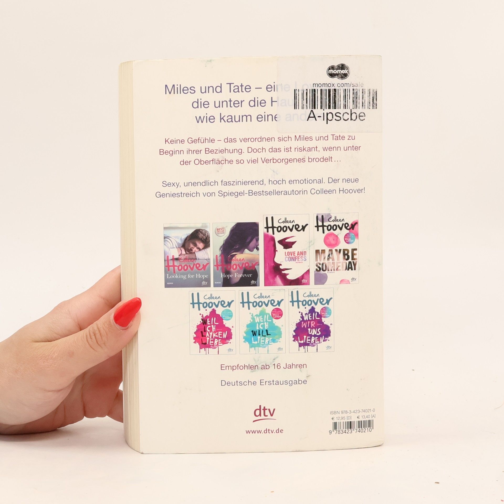 Zurück ins Leben lieben – der neue Geniestreich von Colleen Hoover  Als Tate zum Studium nach San Francisco zieht, stolpert sie dort gleich am ersten Abend über Miles Archer: Miles, der Freund ihres Bruders, der niemals lächelt, meistens schweigt und offensichtlich eine schwere Bürde mit sich herumträgt. Miles, der so attraktiv ist, dass Tate bei seinem Anblick Herzflattern und weiche Knie bekommt. Miles, der, wie er selbst zugibt, seit sechs Jahren keine Frau mehr geküsst hat. Miles, von dem Tate sich besser fernhalten sollte, wenn ihr ihr Gefühlsleben lieb ist …