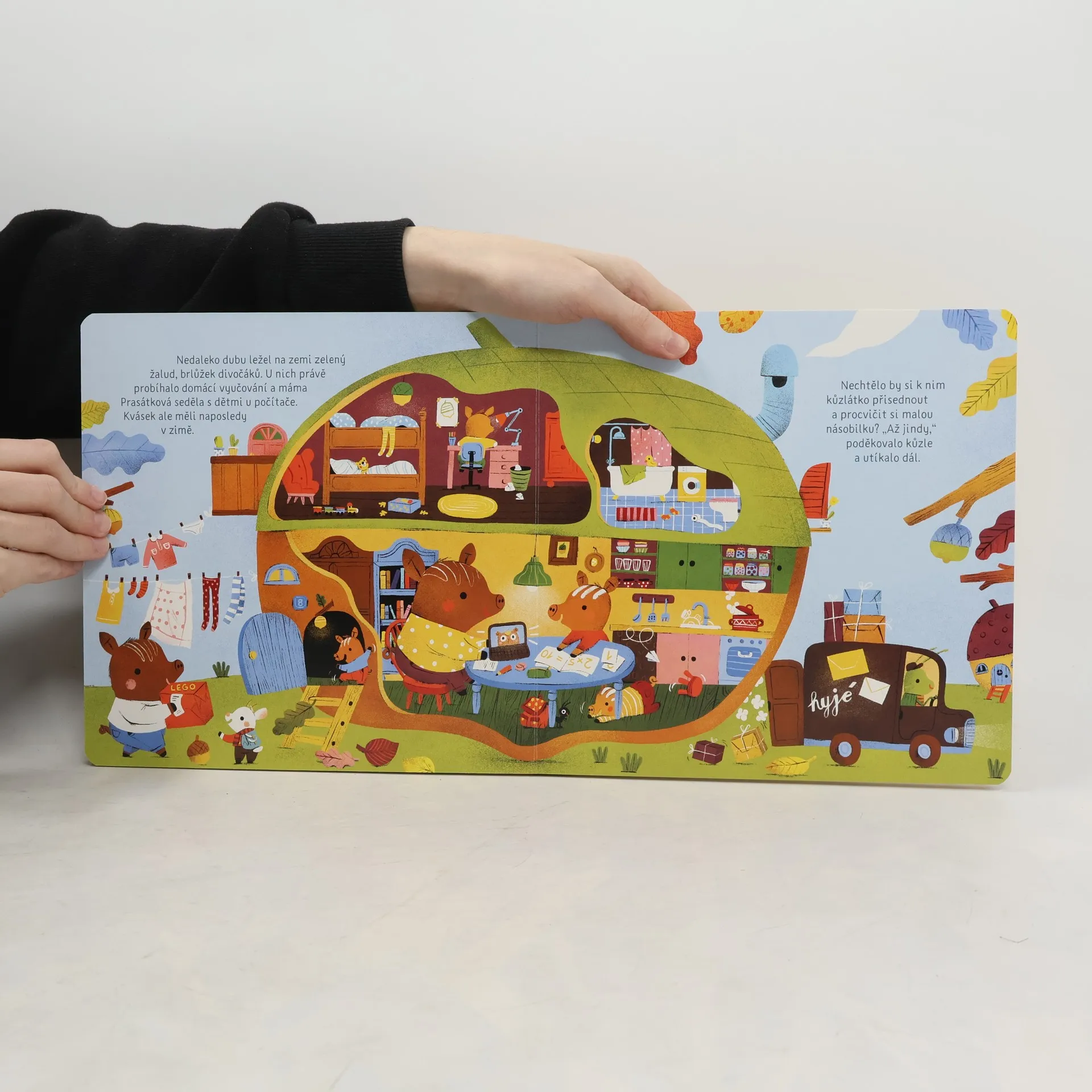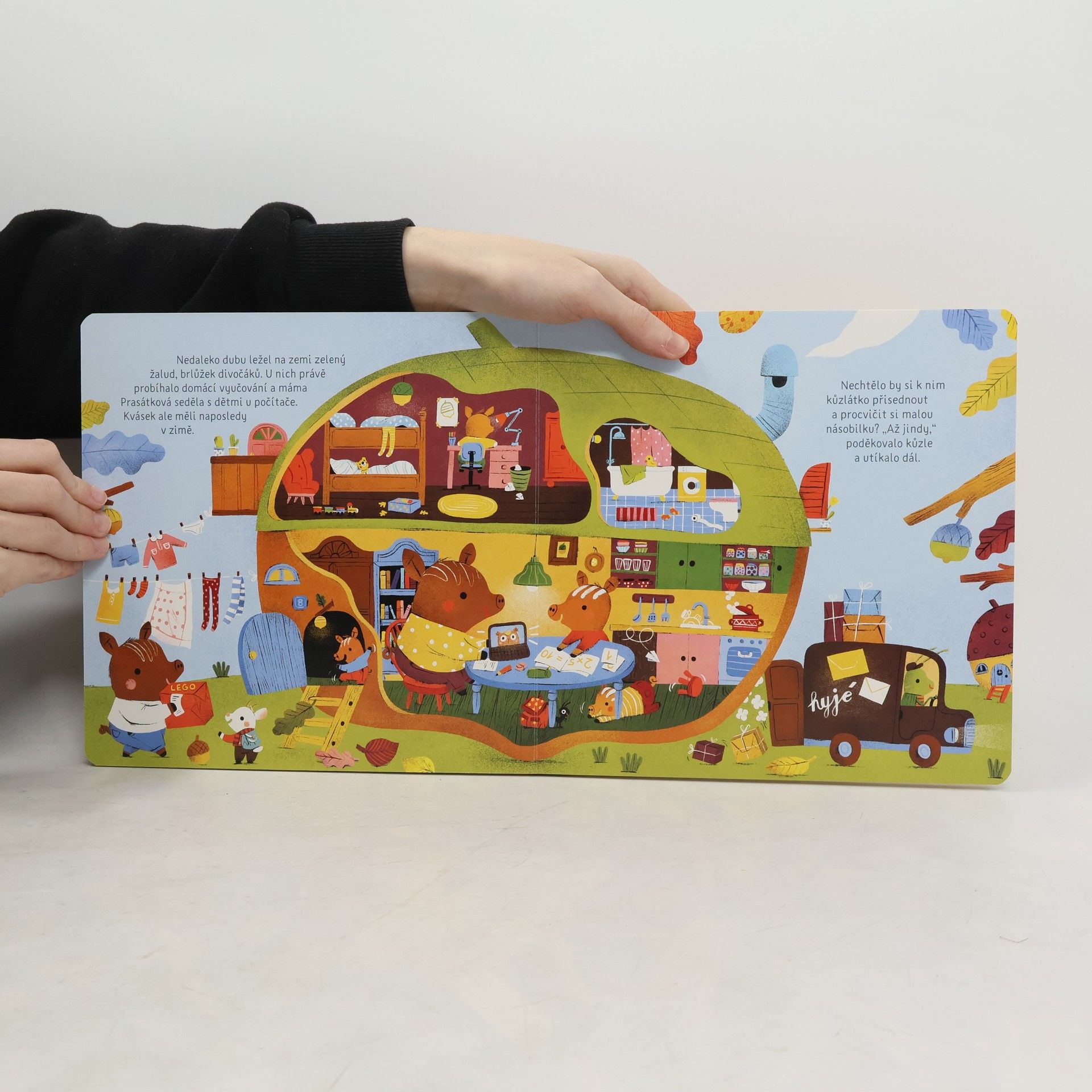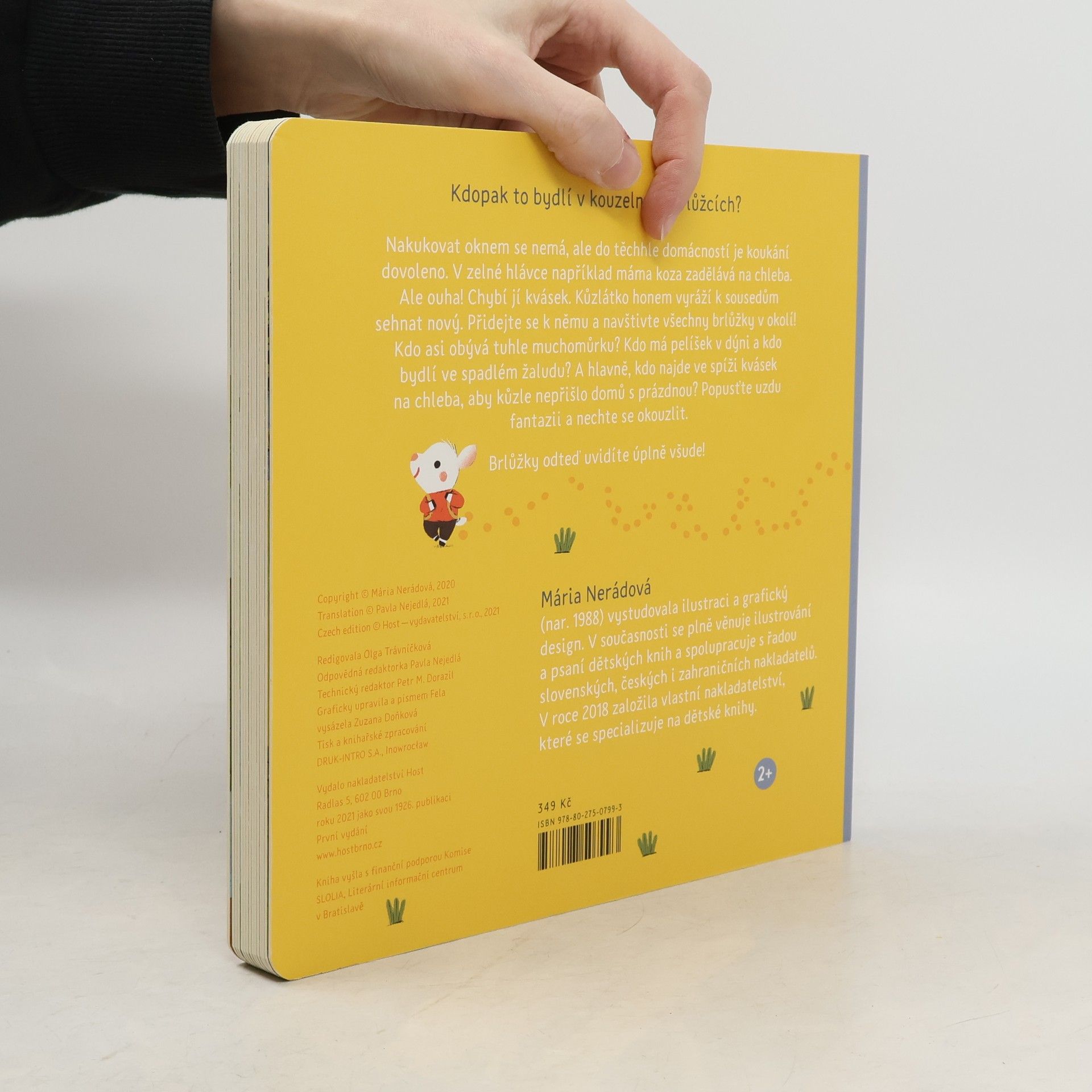 Kdopak to bydlí v kouzelných brlůžcích? Nakukovat oknem se nemá, ale do těchhle domácností je koukání dovoleno. V zelné hlávce například máma koza zadělává na chleba. Ale ouha! Chybí jí kvásek. Kůzlátko honem vyráží k sousedům sehnat nový. Přidejte se k němu a navštivte všechny brlůžky v okolí! Kdo asi obývá tuhle muchomůrku? Kdo má pelíšek v dýni a kdo bydlí ve spadlém žaludu? A hlavně, kdo najde ve spíži kvásek na chleba, aby kůzle nepřišlo domů s prázdnou? Popusťte uzdu fantazii a nechte se okouzlit. Brlůžky odteď uvidíte úplně všude!