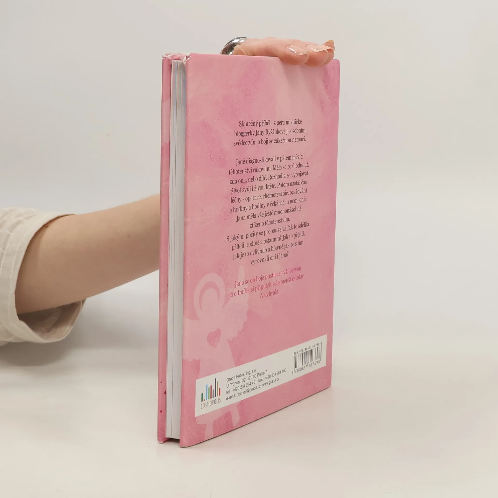 Skutečný příběh z pera mladičké bloggerky Jany Ryšánkové je osobním svědectvím o boji se zákeřnou nemocí. Janě diagnostikovali v pátém měsíci těhotenství rakovinu. Měla se rozhodnout, zda ona, nebo dítě. Rozhodla se vybojovat život svůj i život dítěte. Potom nastal čas léčby - operace, chemoterapie, ozařování a hodiny a hodiny v čekárnách nemocnic. Jana měla vše ještě mnohonásobně ztíženo těhotenstvím. S jakými pocity se probouzela? Jak to sdělila příteli, rodině a ostatním? Jak to přijali, jak je to ovlivnilo a hlavně jak se s tím vyrovnali oni i Jana? Jana se do boje pustila se vší vervou a odmítla si připustit sebemenší nezdar. A vyhrála.