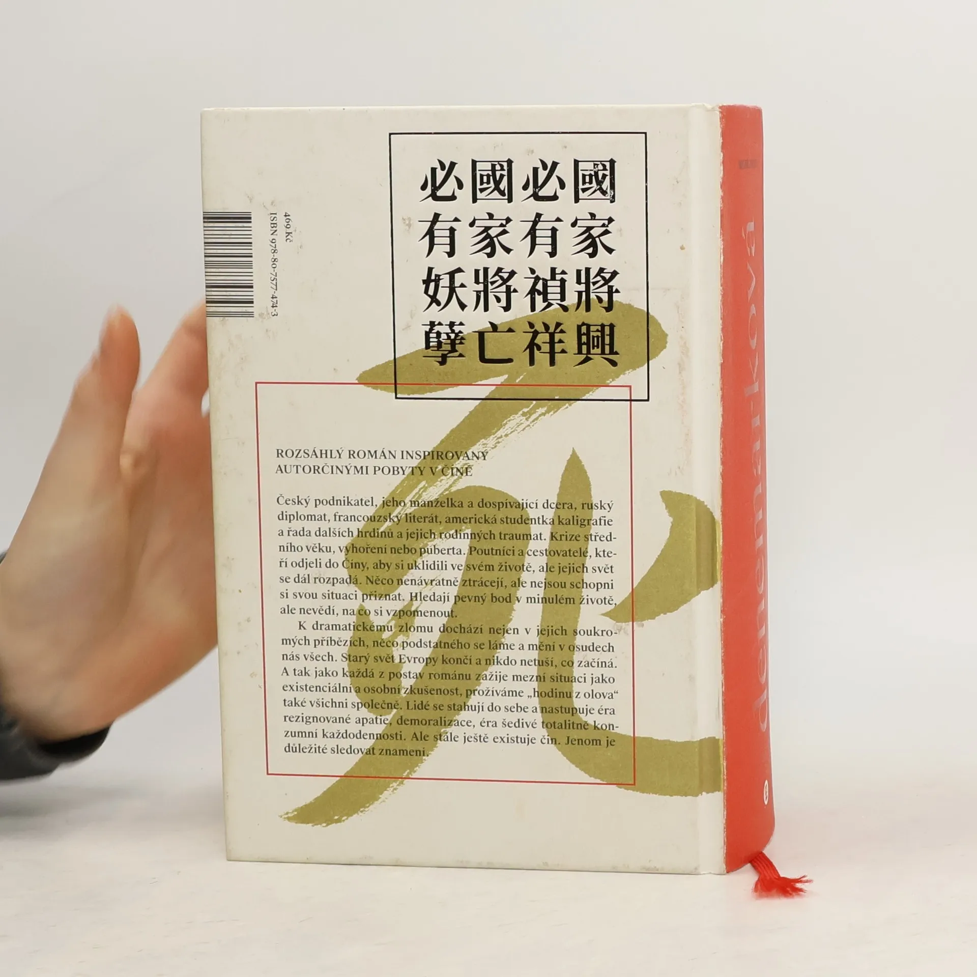 Rozsáhlý román inspirovaný autorčinými pobyty v Číně. Do osudu několika rodin odlišných generací z evropských zemí i sociálních vrstev zasáhne tatáž rozhodující věta. Český podnikatel, jeho manželka a dospívající dcera, ruský diplomat, francouzský literát, studentka kaligrafie, kuchař a řada dalších hrdinů. A jejich rodinná traumata, krize středního věku, vyhoření nebo puberta. Poutníci a cestovatelé, kteří odjeli do Číny, aby si uklidili ve svém životě, ale jejich svět se dál rozpadá. Něco nenávratně ztrácejí a sami nejsou s to to pochopit. Hledají pevný bod v minulém životě, ale nevědí, na co si vzpomenout. A tak jako v jejich soukromých příbězích dochází k dramatickému zlomu, něco podstatného se láme a mění v osudech nás všech. Starý svět Evropy končí a nikdo netuší, co začíná. A tak jako každá z postav románu zažije mezní situaci jako existenciální a osobní zkušenost, prožíváme „hodinu z olova“ také všichni společně. Lidé se stahují do sebe a začíná éra rezignované apatie, demoralizace, éra šedivé totalitně konzumní každodennosti. Ale stále ještě existuje čin. Jenom je důležité sledovat znamení. Dotisk v r. 2019