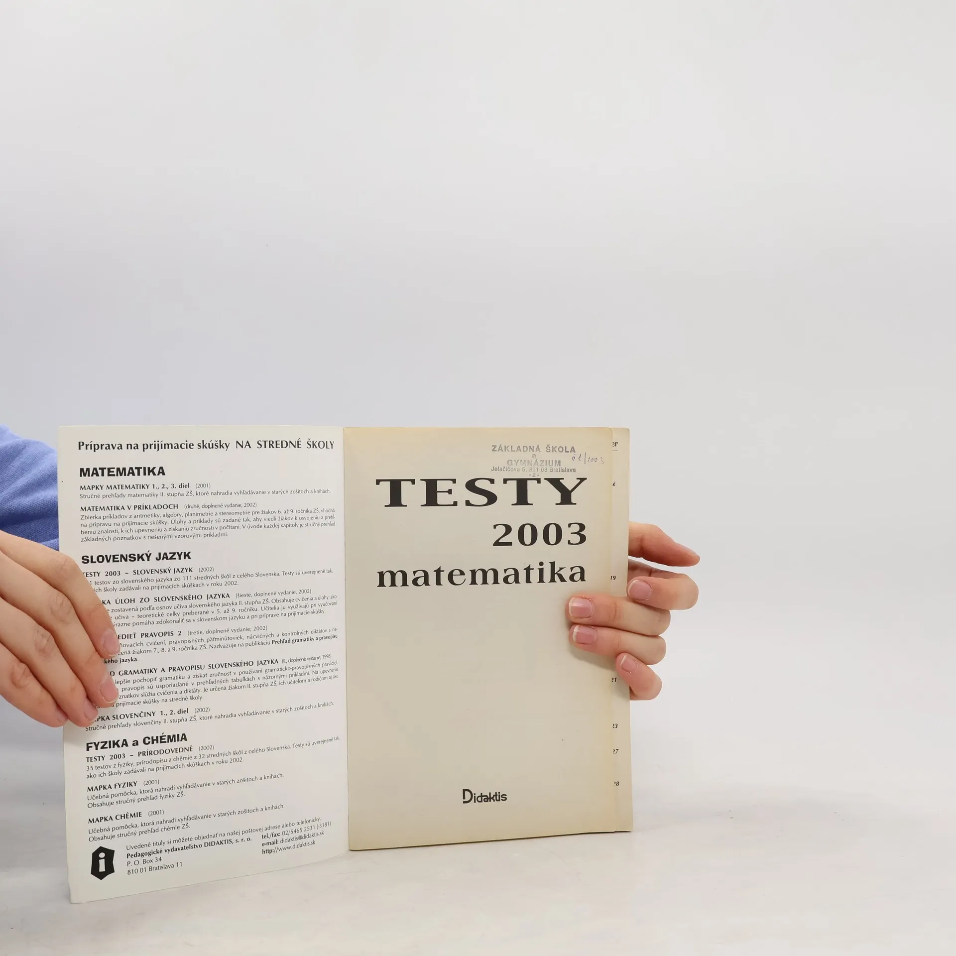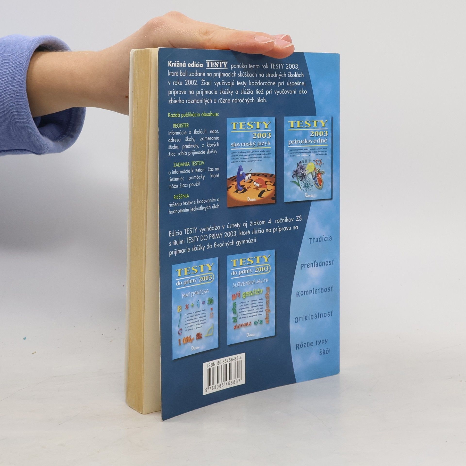 Titul ponúka konkrétne testy z roku 2002 na jednotlivých stredných školách a gymnáziách. - príprava na prijímacie skúšky - originálne testy z prijímacích skúšok - 149 testov s výsledkami zo 146 stredných škôl, 1669 príkladov