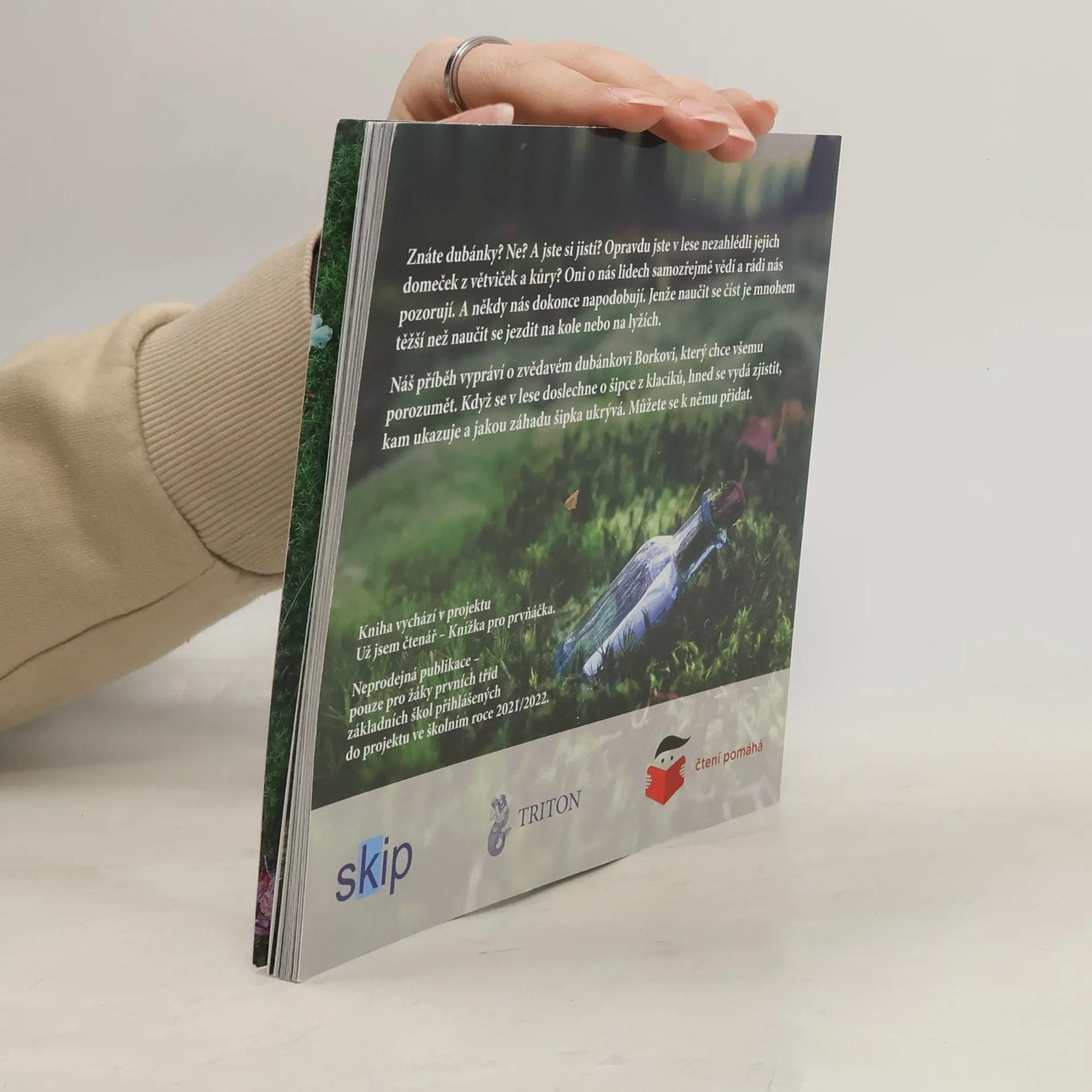 Znáte dubánky? Ne? A jste si jistí? Opravdu jste v lese nezahlédli jejich domeček z větviček a kůry? Oni o nás lidech samozřejmě vědí a rádi nás pozorují. A někdy nás dokonce napodobují. Jenže naučit se číst je mnohem těžší než se naučit jezdit na kole nebo na lyžích. Náš příběh vypráví o zvědavém dubánkovi Borkovi, který chce všemu porozumět. Když se v lese doslechne o šipce z klacíků, hned se vydá zjistit, kam ukazuje a jakou záhadu šipka ukrývá. Můžete se k němu přidat. Příběh z dubánčího světa doprovázejí úžasné fotky Petra Václavka. Vydáno exkluzivně v projektu "Knížka pro prvňáčka", tak zatím neprodejné.