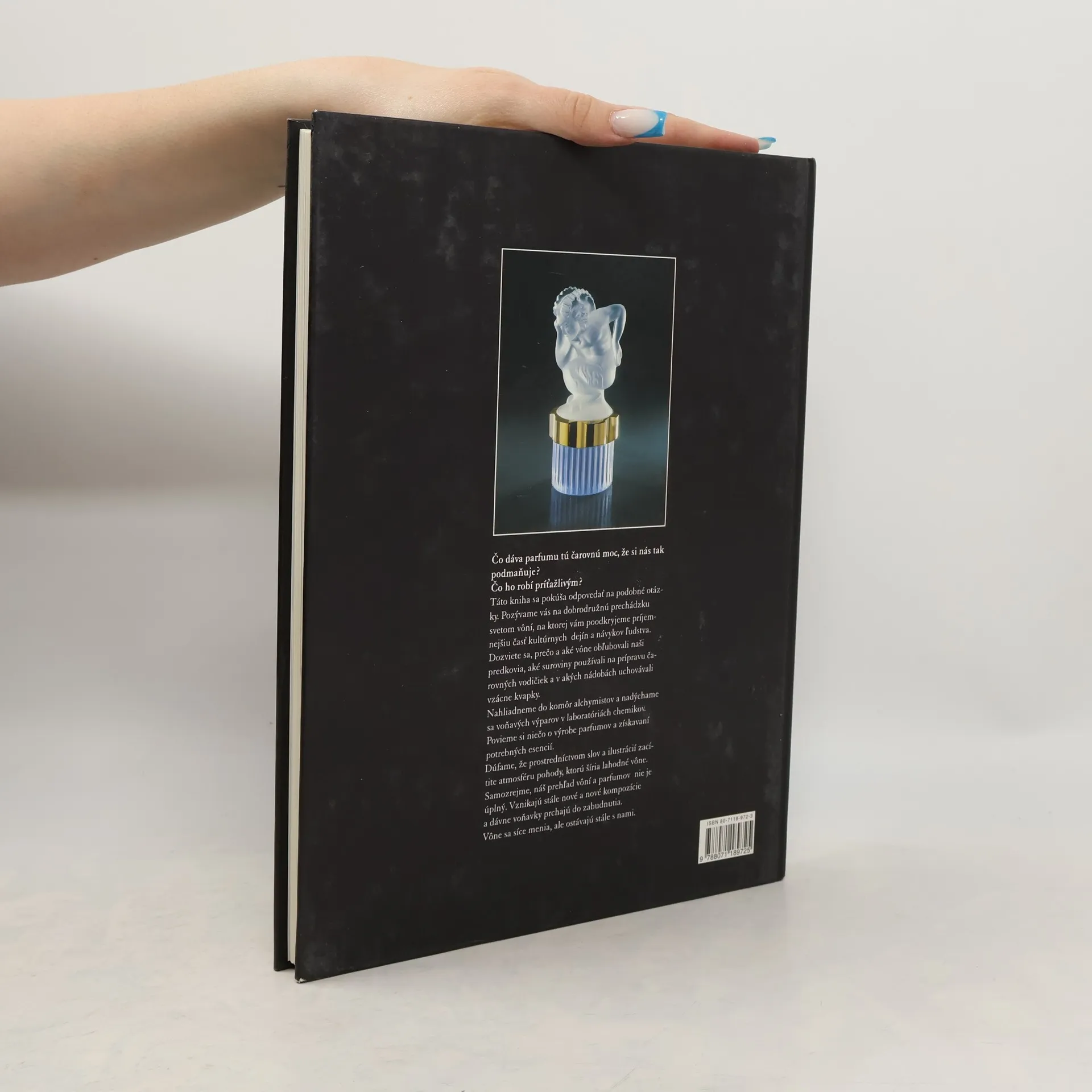 Čo dáva parfumu tú čarovnú moc, že si nás tak podmaňuje? Čo ho robí príťažlivým? Táto kniha sa pokúša odpovedať na podobné otázky. Pozývame vás na dobrodružnú prechádzku svetom vôní, na ktorej vám poodkryjeme príjemnejšiu časť kultúrnych dejín a návykov ľudstva. Dozviete sa, prečo a aké vône obľubovali naši predkovia, aké suroviny používali na prípravu čarovných vodičiek a v akých nádobách uchovávali vzácne kvapky. Nahliadneme do komôr alchmistov a nadýchame sa voňavých výparov v laboratóriách chemikov. Povieme si niečo o výrobe parfumov a získavaní potrebných esencií. Dúfame, že prostredníctvom slov a ilustrácií zacítite atmosféru pohody, ktorú šíria lahodné vône. Samozrejme, náš prehľad vôní a parfumov nie je úplný. Vznikajú stále nové a nové kompozície a dávne voňavky prchajú do zabudnutia.