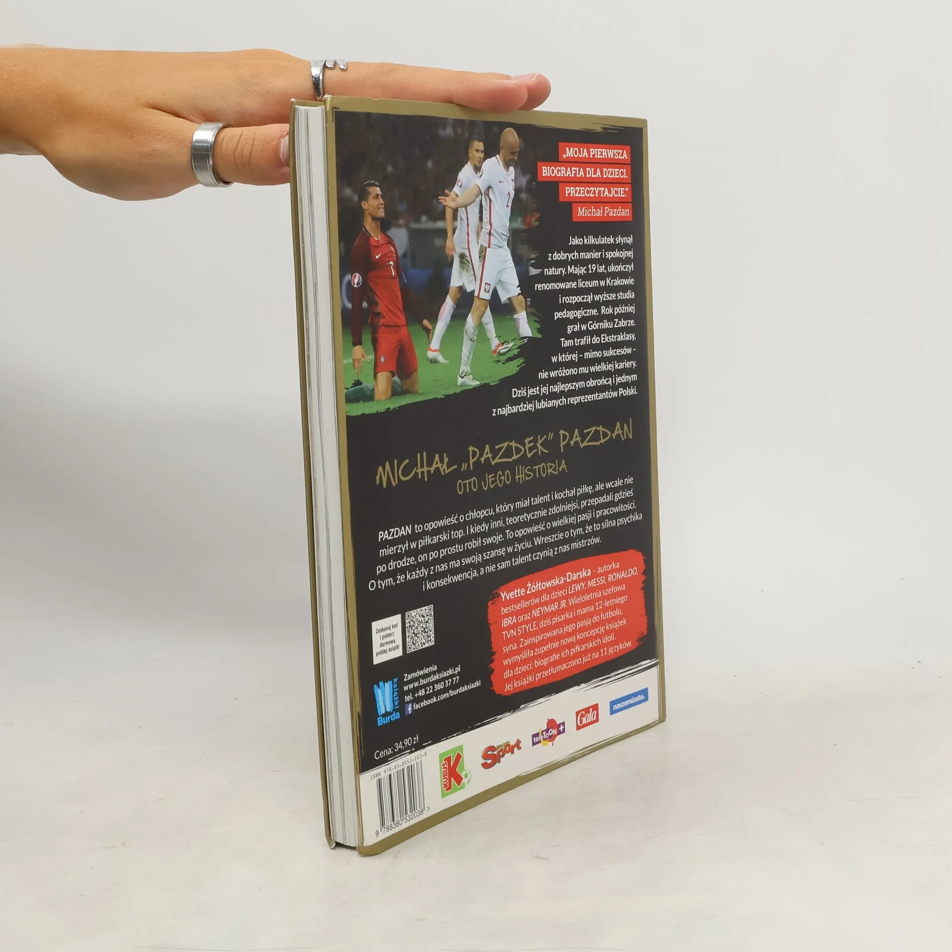 PIERWSZA BIOGRAFIA MICHAŁA PAZDANA DLA DZIECI Będąc kilkulatkiem, słynął z dobrych manier i spokojnej natury. Mając 19 lat ukończył renomowane liceum w Krakowie i rozpoczął wyższe studia pedagogiczne. Rok p�źniej grał w G�rniku Zabrze. Dopiero co trafił do Ekstraklasy, w kt�rej ? mimo sukces�w ? nie wr�żono mu wielkiej kariery. Dziś jest jej najlepszym obrońcą i jednym z najbardziej lubianych reprezentant�w Polski. MICHAŁ PAZDAN. Chłopak, kt�ry zawsze gra całym sercem. Oto JEGO HISTORIA. PAZDEK to opowieść o chłopcu, kt�ry miał talent i kochał piłkę, ale wcale nie mierzył w piłkarski top. I kiedy inni, teoretycznie zdolniejsi, przepadali gdzieś po drodze, on po prostu robił swoje. To opowieść o wielkiej pasji i pracowitości. O tym, że każdy z nas ma swoją szansę w życiu. Wreszcie o tym, że to silna psychika i konsekwencja, a nie sam talent czynią z nas mistrz�w. Yvette Ż�łtowska-Darska ? autorka bestseller�w dla dzieci LEWY, MESSI, RONALDO, IBRA oraz NEYMAR JR. Wieloletnia szefowa TVN STYLE, dziś pisarka i mama 12-letniego syna. Zainspirowana jego pasją do futbolu, wymyśliła zupełnie nową koncepcję książek dla dzieci: biografie ich piłkarskich idoli. Jej książki przetłumaczono już na 11 język�w.