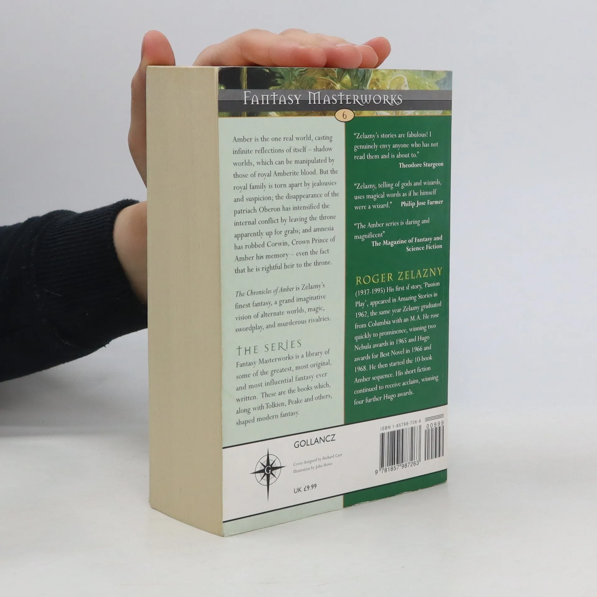 Amber is the one real world, casting infinite reflections of itself - Shadow worlds, that can be manipulated by those of royal Amberite blood. But the royal family is torn apart by jealousies and suspicion; the disappearance of the Patriach Oberon has intensified the internal conflict by leaving the throne apparently up for grabs. In a hospital on the Shadow Earth, a young man is recovering from a freak car accident; amnesia has robbed him of all his memory, even the fact that he is Corwin, Crown Prince of Amber, rightful heir to the throne - and he is in deadly peril ... The five books, Nine Princes in Amber, The Guns of Avalon, Sign of the Unicorn, The Hand of Oberon and The Courts of Chaos, together make up The Chronicles of Amber, Roger Zelazny's finest work of fantasy and an undisputed classic of the genre.