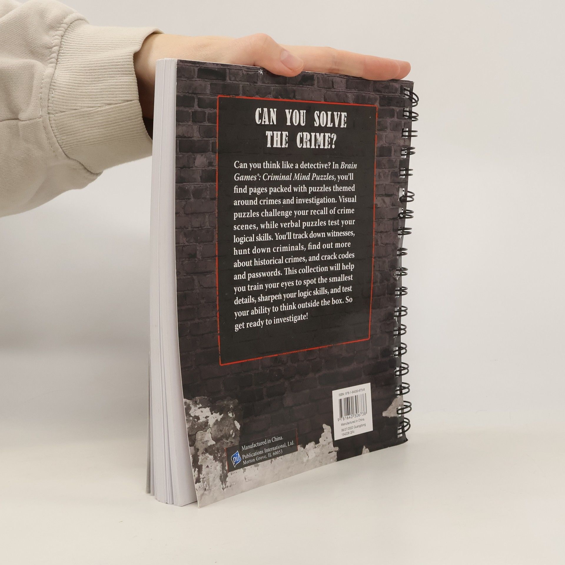 Use your verbal, visual, and logic skills to investigate an array of puzzles! This puzzle collection contains a mix of verbal and visual puzzles themed around crimes and investigation. Read about true crimes and see how you much you can remember Play detective as you find witnesses, use logic to track down criminals, and see what details you can decipher in crime scenes Spiral bound 192 pages