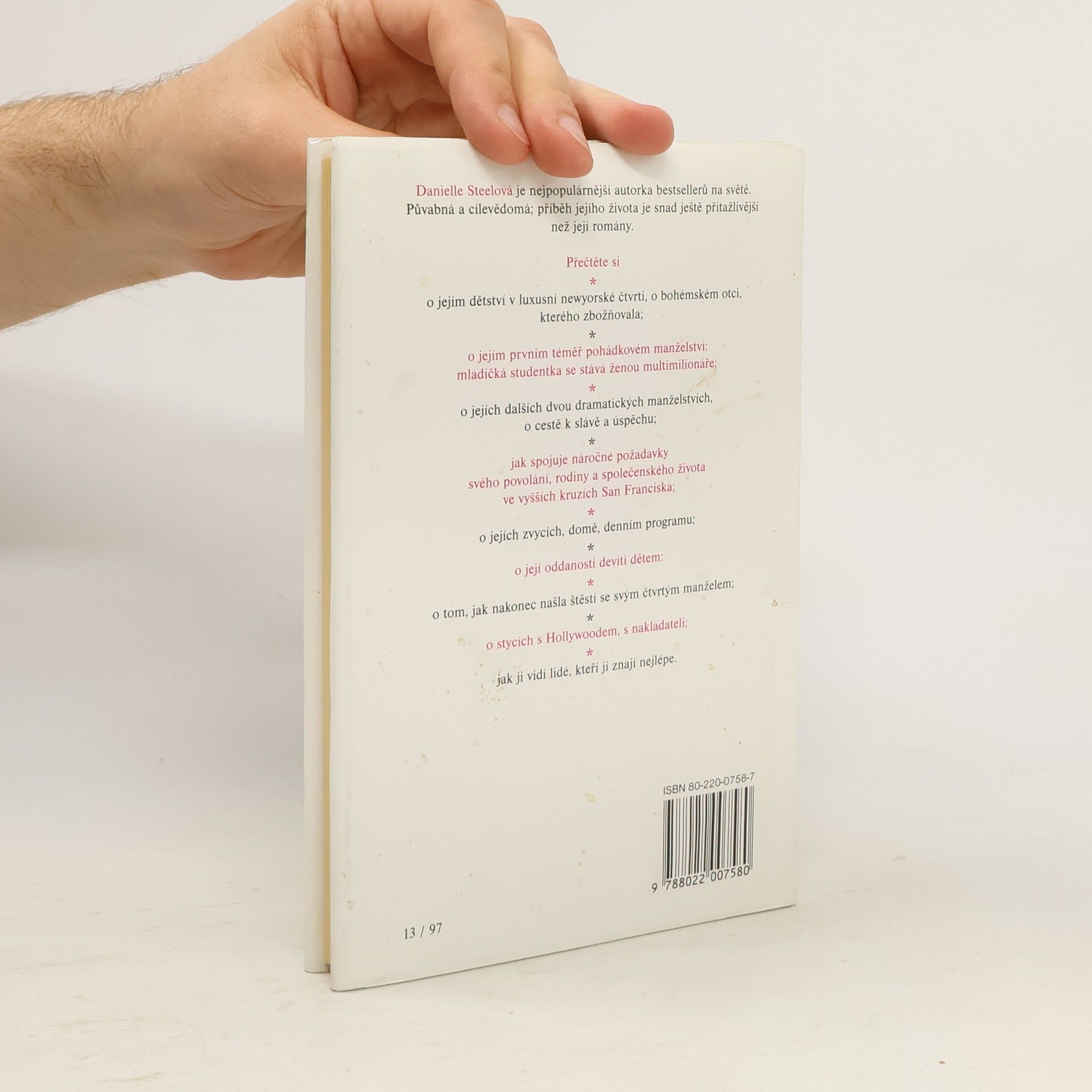 S jemným smyslem pro fakta, tradici i příznačné detaily vykresluje dětství a dospívání Danielly Steelové a dává nahlédnout do zákrutů jejích citových vztahů k mužům, kteří ji přitahovali zpravidla svým protikladným charakterem i společenským zařazením.