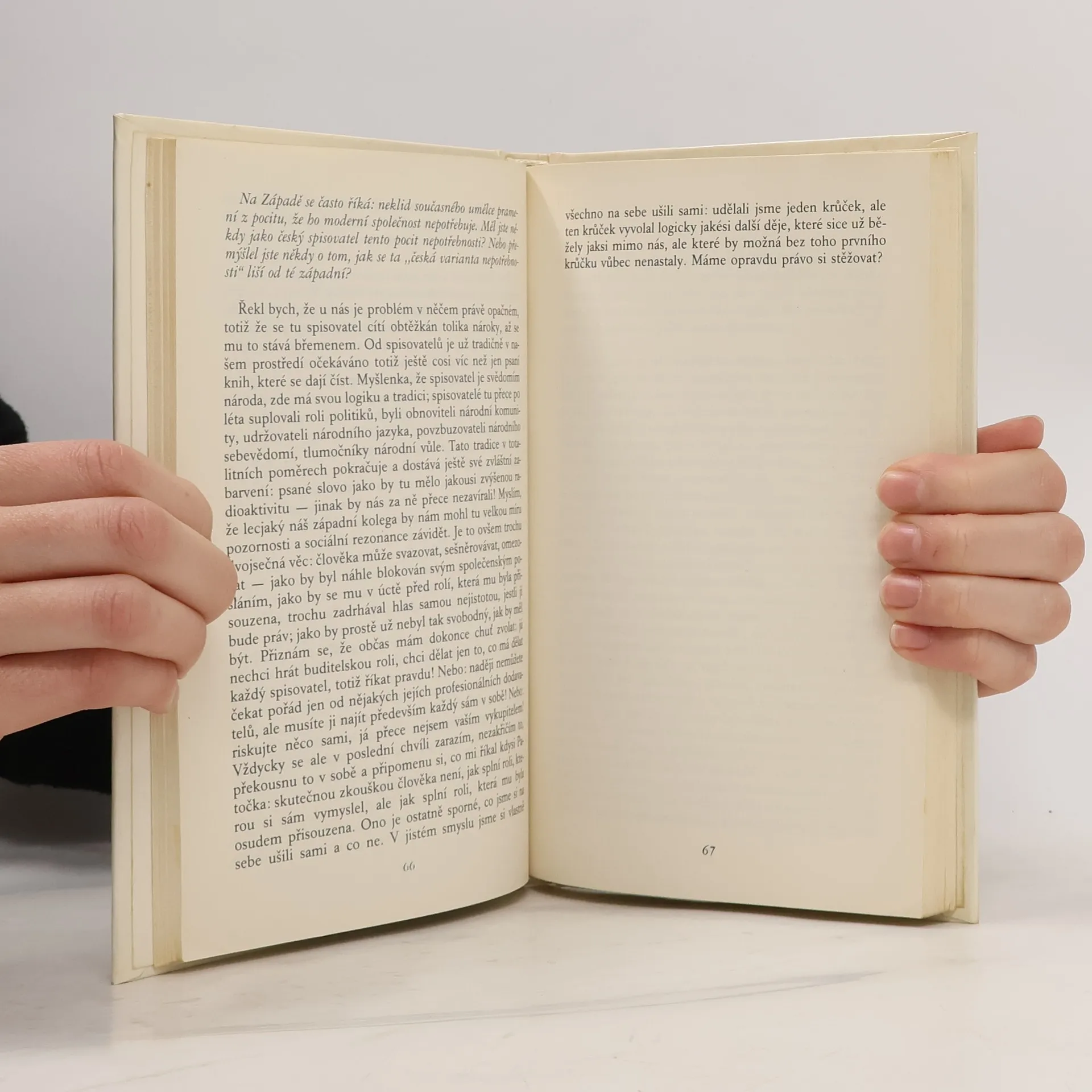 Rozhovor Václava Havla s Karlem Hvížďalou. Kniha, která měla české veřejnosti představit Václava Havla, člověka, o kterém do listopadu 1989 lidé mohli slýchat jen z rádia Svobodná Evropa či Hlasu Ameriky případně o něm číst v Rudém právu články typu Samozvanci a ztroskotanci. Rozhovor vznikal v letech 1985-86 na dálku. Hvížďala žil v Bonnu, Havel v Praze. Havlovsky nekonečné komplikované, ale přesto milé věty... 2. vydání v Melantrichu.