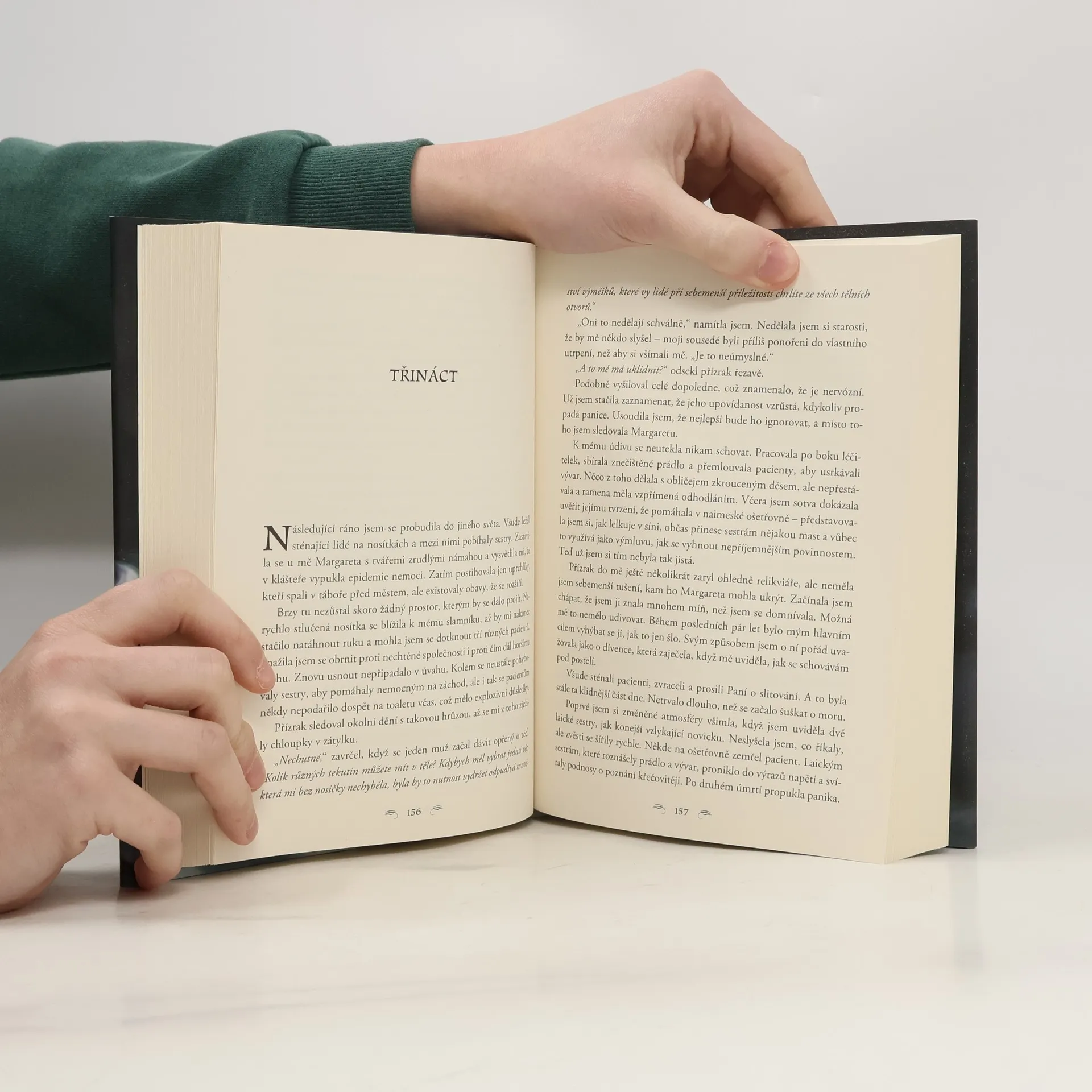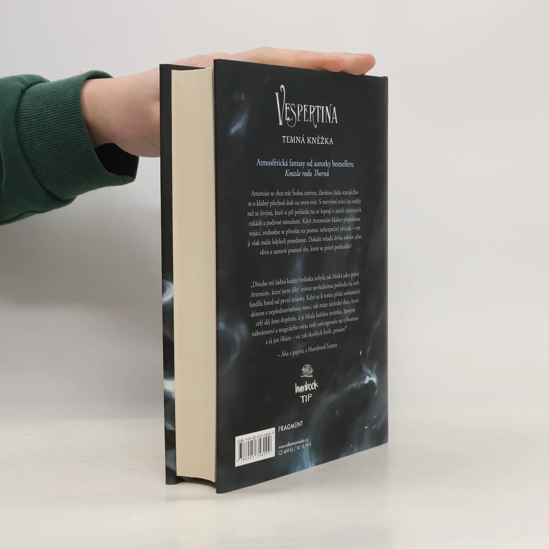 Atmosférická fantasy od autorky bestselleru Kouzla rodu Thornů Artemisia se chce stát Šedou sestrou, členkou řádu, který se stará o klidný přechod duší zemřelých na onen svět. S mrtvými tráví čas raději než s živými, kteří si za jejími zády šuškají o jejích zjizvených rukou a pohnuté minulosti. Když klášter přepadnou vojáci, rozhodne se Artemisia vyvolat na jeho ochranu prastarého ducha spjatého se svatou relikvií, která je zde uložena. Je to však přízrak, nevyzpytatelná bytost, která ji může posednout, jakmile přestane být ostražitá. Na pokraji svých sil se brzy ocitá na prahu smrti. Pokud chce zůstat mezi živými, potřebuje pomoc vespertiny – kněžky znalé v umění ovládat relikvie. Kde ji však najít, netuší. Proto se obrátí s prosbou o pomoc na toho nejpovolanějšího – přízrak samotný. Pouto mezi nimi roste a prastaré zlo začne vyplouvat na povrch. Dokáže mu Artemisia čelit? Zradí všechno, čemu dosud věřila, nebo to bude přízrak, kdo zradí ji? Temná fantasy od autorky bestselleru Kouzla rodu Thornů.