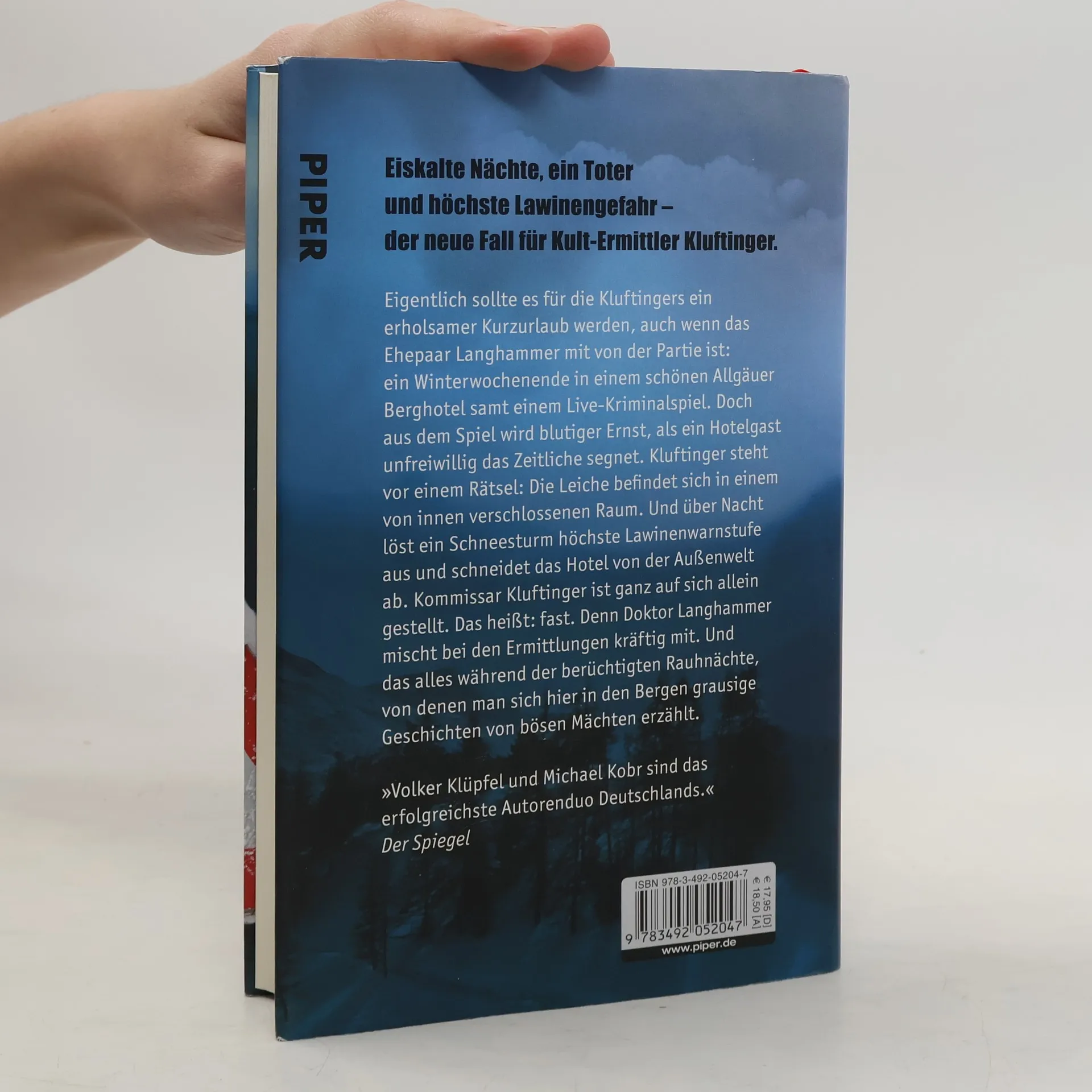 Eigentlich sollte es für die Kluftingers ein erholsamer Kurzurlaub werden, auch wenn das Ehepaar Langhammer mit von der Partie ist: ein Winterwochenende in einem schönen Allgäuer Berghotel samt einem Live-Kriminalspiel. Doch aus dem Spiel wird blutiger Ernst, als ein Hotelgast unfreiwillig das Zeitliche segnet. Kluftinger steht vor einem Rätsel: Die Leiche befindet sich in einem von innen verschlossenen Raum. Und über Nacht löst ein Schneesturm höchste Lawinenwarnstufe aus und schneidet das Hotel von der Außenwelt ab. Kommissar Kluftinger ist ganz auf sich allein gestellt. Das heißt: fast. Denn Doktor Langhammer mischt bei den Ermittlungen kräftig mit. Und das alles während der berüchtigten Rauhnächte, über die man sich hier in den Bergen grausige Geschichten von bösen Mächten erzählt.