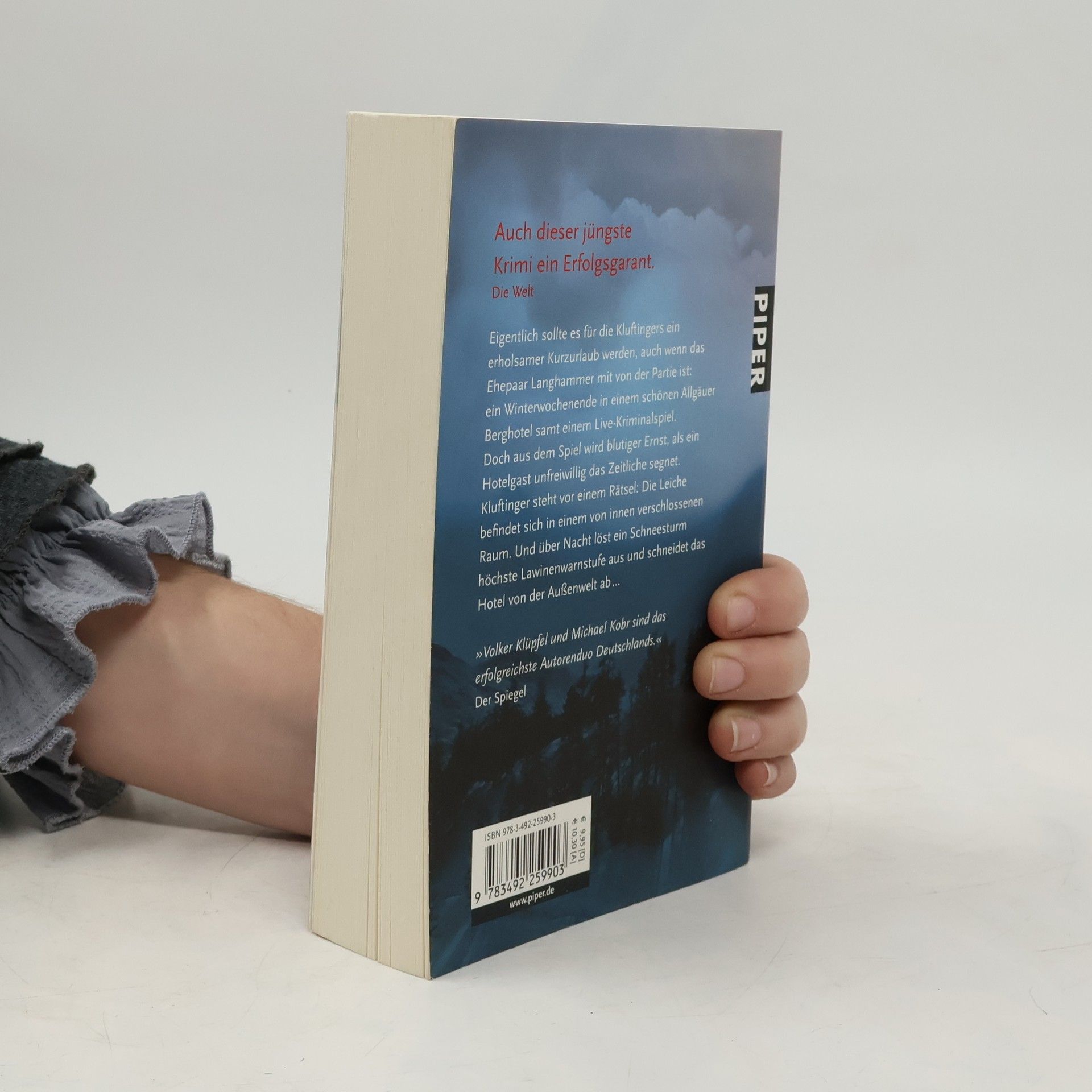 Eigentlich sollte es für die Kluftingers ein erholsamer Kurzurlaub werden, auch wenn das Ehepaar Langhammer mit von der Partie ist: ein Winterwochenende in einem schönen Allgäuer Berghotel samt einem Live-Kriminalspiel. Doch aus dem Spiel wird blutiger Ernst, als ein Hotelgast unfreiwillig das Zeitliche segnet. Kluftinger steht vor einem Rätsel: Die Leiche befindet sich in einem von innen verschlossenen Raum. Und über Nacht löst ein Schneesturm höchste Lawinenwarnstufe aus und schneidet das Hotel von der Außenwelt ab …