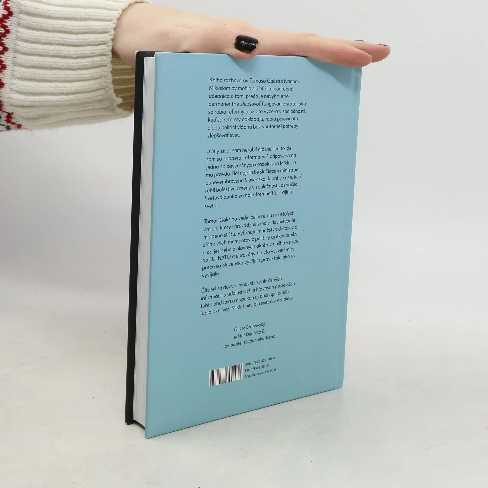 Ivan Mikloš, bývalý podpredseda vlády, minister privatizácie aj financií sa celý život zaoberá reformami. Bol najdlhšie slúžiacim ministrom ponovembrového Slovenska, ktoré v čase, keď robil bolestivé zmeny v spoločnosti, označila Svetová banka za najreformnejšiu krajinu sveta. V rozhovoroch s editorom Denníka N Tomášom Gálisom však vysvetľuje nielen to, čím sme na Slovensku prešli za vyše 30 rokov, ale aj na akých princípoch fungovala socialistická ekonomika a akými zmenami prechádza Ukrajina. Nemá problém otvorene povedať, čo je podľa neho správne a kde urobili chyby nielen oni s Mikulášom Dzurindom, ale aj ostatné politické garnitúry v ponovembrovom Česko-Slovensku, na Slovensku a aj na Ukrajine, kde Mikloš pôsobil. Vďaka Miklošovej hlbokej znalosti problematiky, schopnosti zrozumiteľne vysvetliť zložité ekonomické procesy a aj vďaka encyklopedickým znalostiam Tomáša Gálisa je kniha vyčerpávajúcim sprievodcom našou ekonomikou. Kniha je doplnená fotografiami fotografa agentúry AFP a Denníka N Vladimíra Šimíčka, ktoré urobil počas pôsobenia Ivana Mikloša na Ukrajine.