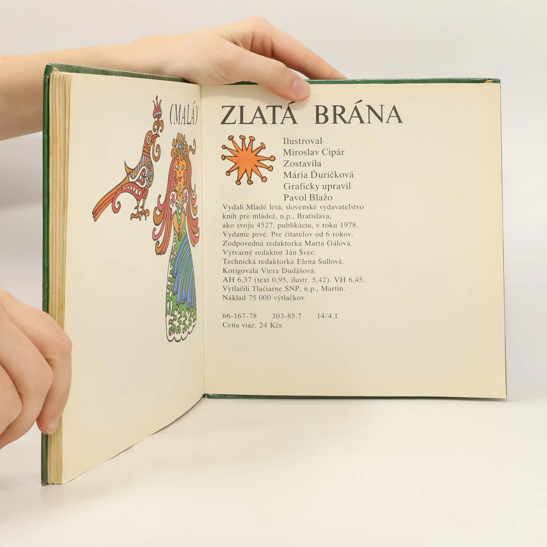 Zlatou bránou - touto jedinečnou antológiou pokladov ľudovej slovesnosti vchádzajú deti do zlatej brány materinskej reči. Zozbierala ju a po celý život brúsila a cizelovala spisovateľka Mária Ďuríčková. Sú tu ľudové rozprávky, pesničky, povedačky, hádanky a rečňovanky. S rovnakou láskou a majstrovstvom vytvoril bohatý obrázkový pandant Zlatej brány výnimočný umelec, maliar a ilustrátor Miroslav Cipár.