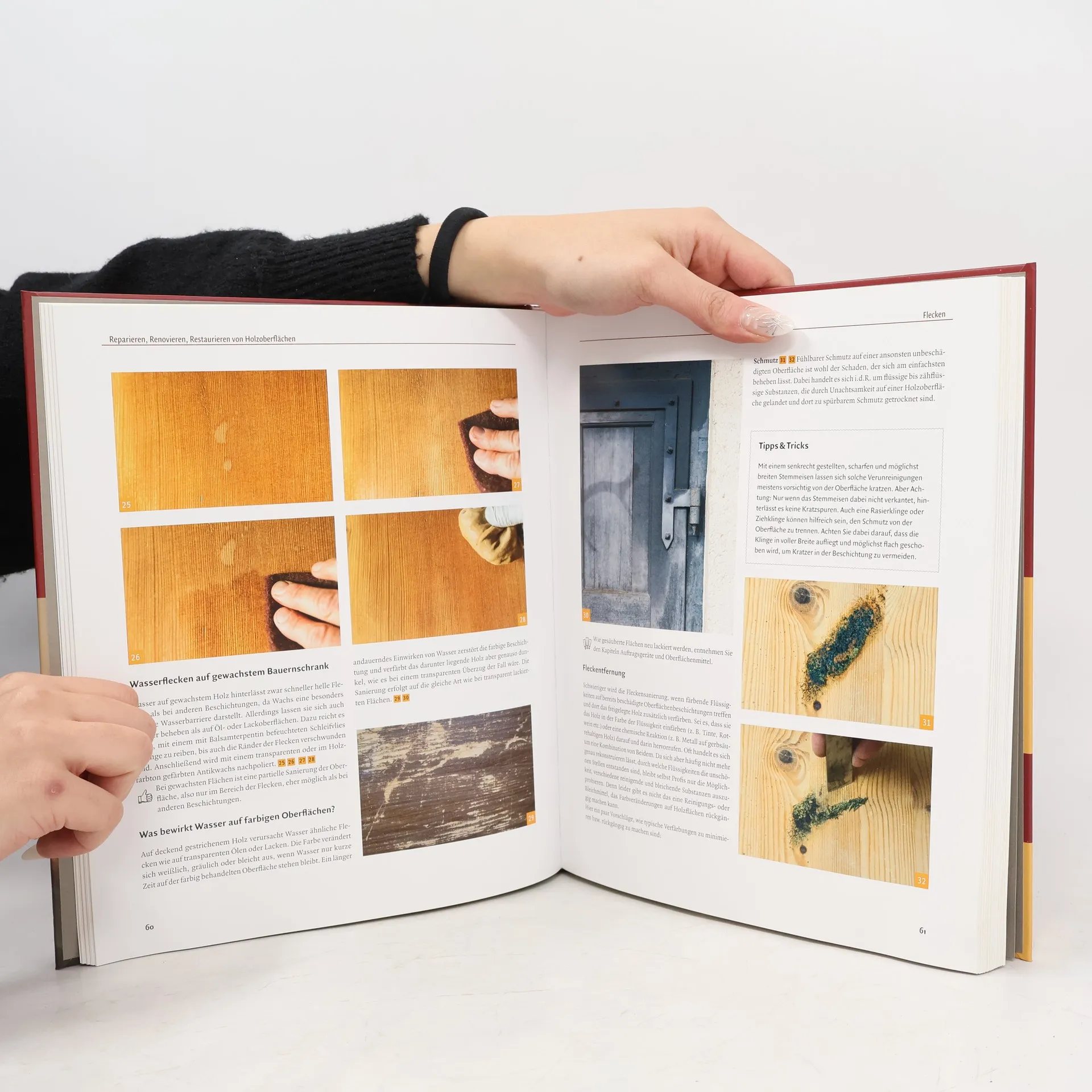 Jeder kennt das: Möbelstücke, ob geerbt, erstöbert oder selbstgebaut, verlieren im Laufe der Jahre meist an Schönheit und Funktion. Was tun, wenn die einst unversehrte Oberfläche beschädigt ist? Wenn der schmückende Überzug durch altersbedingte Abnutzung, fehlerhafte Behandlung oder Feuchtigkeitseinfluss Schaden genommen hat? Dieses Buch möchte Ihnen helfen, Schönheitsfehler an Holzoberflächen selbst zu beheben, aber auch die Funktionstüchtigkeit und Schutzfunktion einer Oberflächenbeschichtung wiederherzustellen. Das bedeutet, dass auf viele Arten von Schäden an der Oberfläche wie Verfärbungen, Flecken, Dellen, Kratzer und Löcher eingegangen wird. Aber auch konstruktive Mängel, die sich an der Holzoberfläche bemerkbar machen, Risse im Holz, fehlende Teile, abgehobenes und -geplatztes Furnier, können Sie mit Hilfe dieses Buches eigenständig beheben. Melanie Kirchlechner, Restauratorin, regelmäßige Autorin von HolzWerken und erfahrene Kursleiterin, hat mit diesem Buch ein umfassendes Praxisbuch geschaffen. Mit über 800 Bildern und leicht nachvollziehbaren Schrittfür- Schritt-Anleitungen, bringt sie Ihnen die handwerklich pragmatische Methode des Restaurierens, Renovierens und Reparierens näher. Ohne selber Profi sein zu müssen, können Sie als Holzenthusiast/in Ihren Lieblingsstücke zu dem ursprünglichen oder auch ganz neuem Glanz verhelfen!