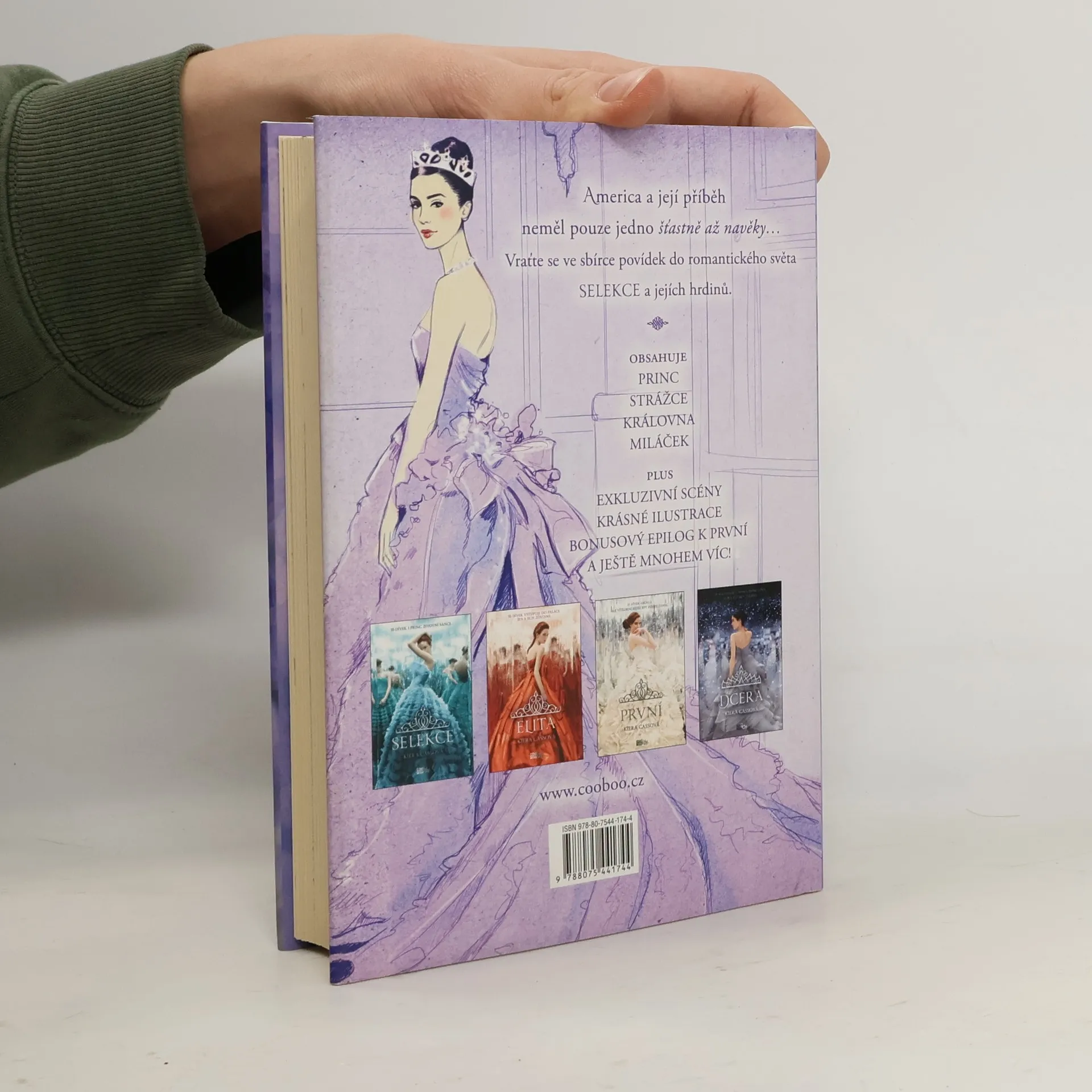 Kniha povídek ze světa Selekce. Než se America přihlásila do Selekce, jiná žena musela projít touto soutěží, aby se stala královnou. Aspen nikdy nevěřil, že se vymaní z chudoby, která provázela všechny příslušníky jeho kasty. Avšak poté, co se stane strážcem, dokáže, že kasty nemusí určovat lidskou budoucnost. Marlee Tamesová se přihlásila do Selekce a prince Maxona zbožňovala, ale nikdy by si nepřipustila, že se může zamilovat i do někoho jiného. Princ si nikdy nemohl vybrat, co bude dělat – o všem rozhodoval jeho otec, ale nyní nastal okamžik, kdy vše musí vzít pevně do svých rukou. Bonusové scény, epilog, mapy a ilustrace navíc!