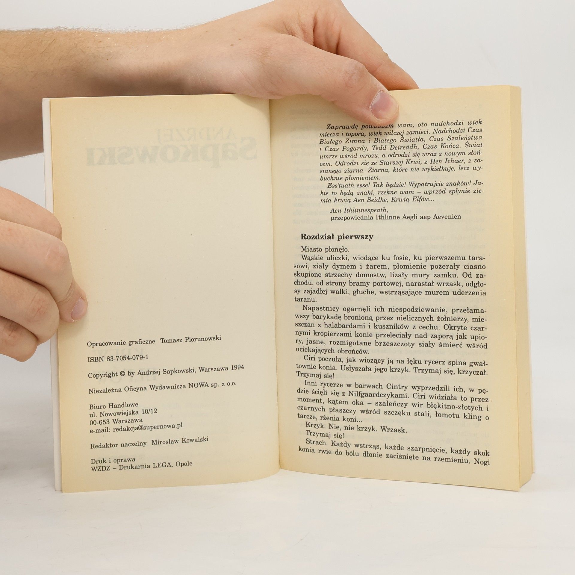 Konstruując przewrotne i wzruszające opowieści, zebrane w dwóch tomach - "Ostatnie życzenie" i "Miecz przeznaczenia", Sapkowski gromadził plejadę niezwykłych bohaterów, rysował mapę zwaśnionych królestw, krzyżujących się namiętności i interesów. Prawdziwa walka o kształt i losy tego świata zaczyna się dopiero teraz - w pierwszym tomie sagi o wiedźminie.