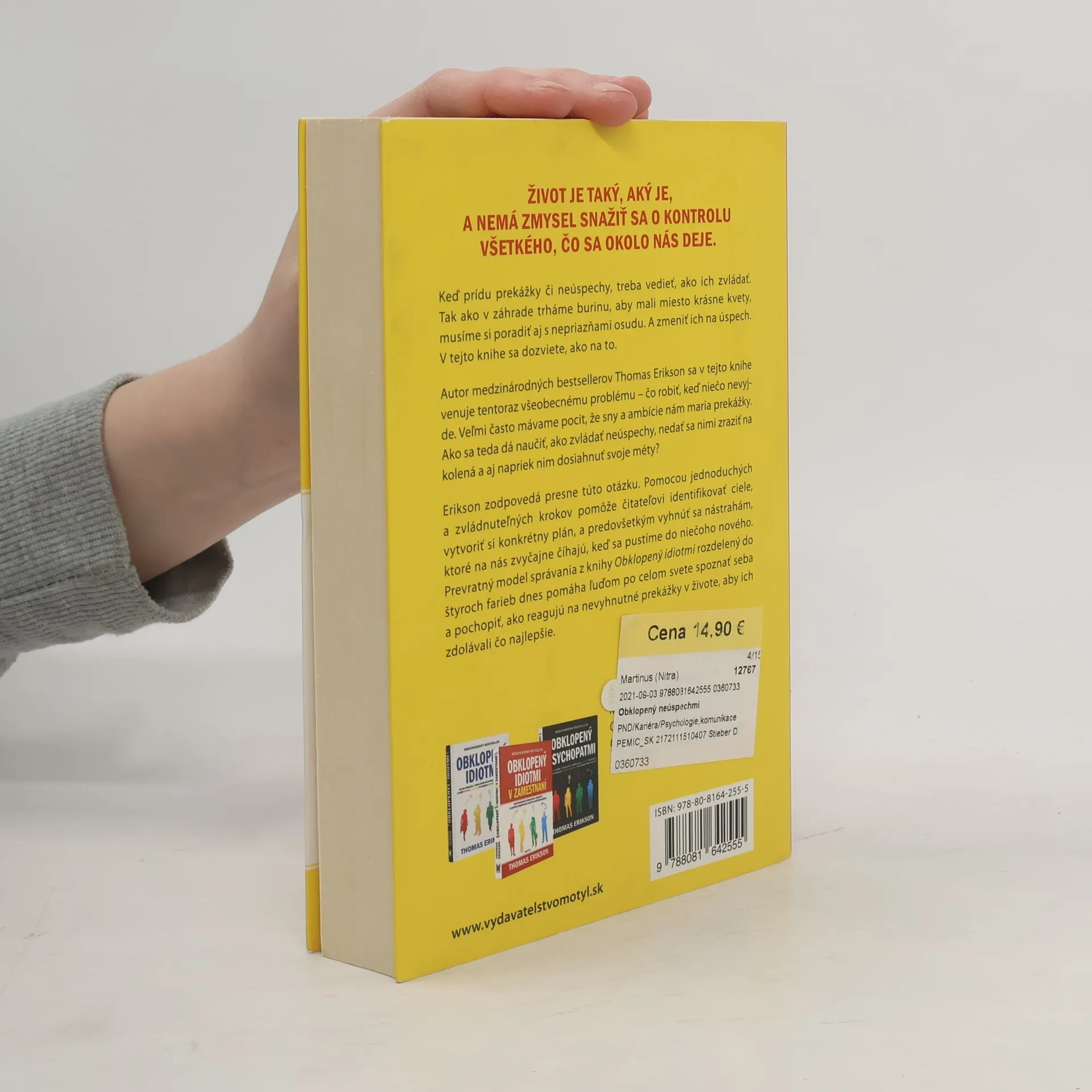 Život je taký, aký je, a nemá zmysel snažiť sa o kontrolu všetkého, čo sa okolo nás deje. Keď prídu prekážky či neúspechy, treba vedieť, ako ich zvládať. Tak ako v záhrade trháme burinu, aby mali miesto krásne kvety, musíme si poradiť aj s nepriazňami osudu. A zmeniť ich na úspech. V tejto knihe sa dozviete, ako na to. Autor medzinárodných bestsellerov Thomas Erikson sa v tejto knihe venuje tentoraz všeobecnému problému - čo robiť, keď niečo nevyjde. Veľmi často mávame pocit, že sny a ambície nám maria prekážky. Ako sa teda dá naučiť, ako zvládať neúspechy, nedať sa nimi zraziť na kolená a aj napriek nim dosiahnuť svoje méty? Erikson zodpovedá presne túto otázku. Pomocou jednoduchých a zvládnuteľných krokov pomôže čitateľovi identifikovať ciele, vytvoriť si konkrétny plán, a predovšetkým vyhnúť sa nástrahám, ktoré na nás zvyčajne číhajú, keď sa pustíme do niečoho nového. Prevratný model správania z knihy Obklopený idiotmi rozdelený do štyroch farieb dnes pomáha ľuďom po celom svete spoznať seba a pochopiť, ako reagujú na nevyhnutné prekážky v živote, aby ich zdolávali čo najlepšie.
