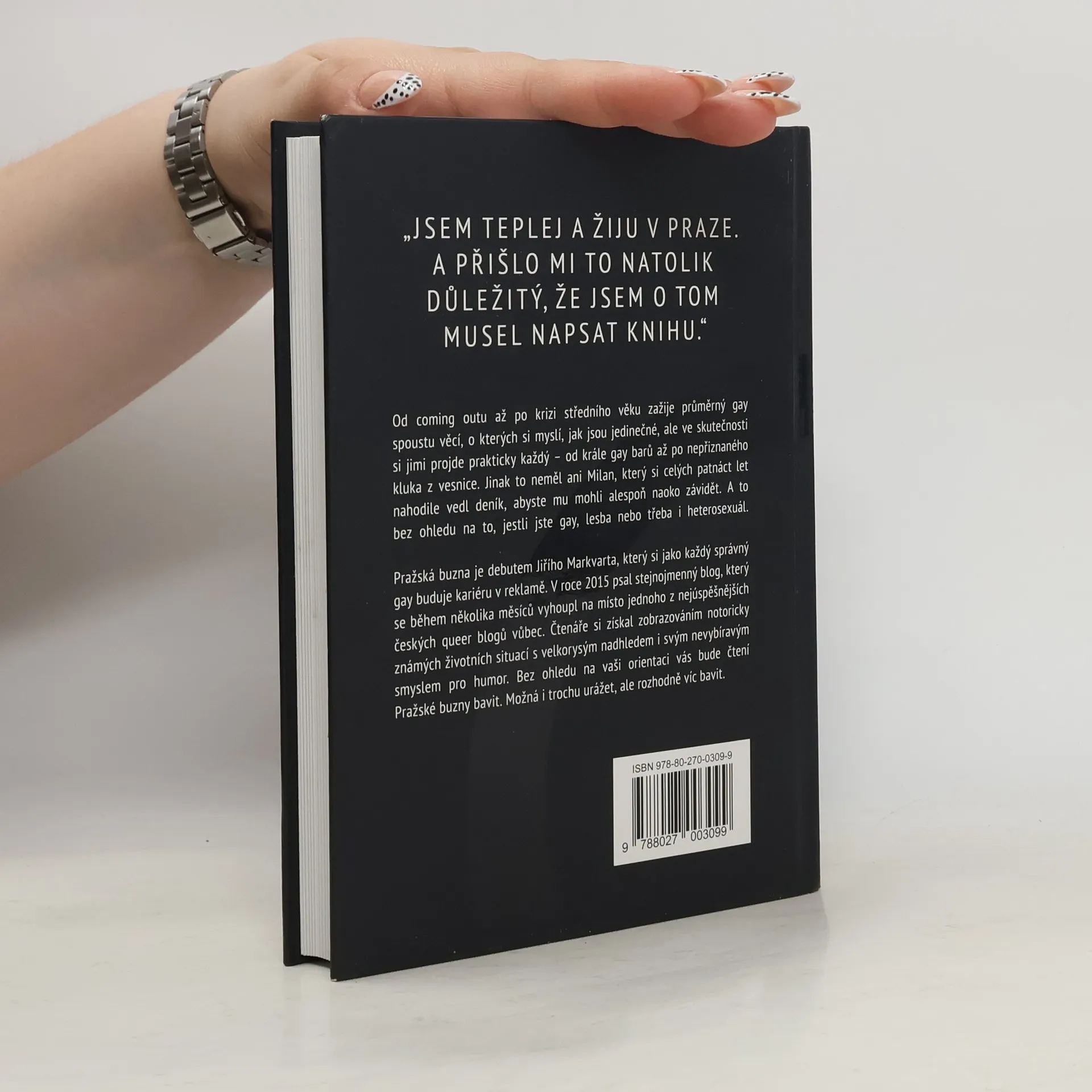 Od coming outu až po krizi středního věku zažije průměrný gay spoustu věcí, o kterých si myslí, jak jsou jedinečné, ale ve skutečnosti si jimi projde prakticky každý – od krále gay barů až po nepřiznaného kluka z vesnice. Jinak to neměl ani Milan, který si celých patnáct let nahodile vedl deník, abyste mu mohli alespoň naoko závidět. A to bez ohledu na to, jestli jste gay, lesba nebo třeba i heterosexuál. V takovém případě je pro vás v knize přichystán i přehled toho, co byste jako začínající buzna měli vědět, pro případ, že by vás konvenční heterosexuální život začal nudit. Pražská buzna je debutem Jiřího Markvarta, který si jako každý správný gay buduje kariéru v reklamě. V roce 2015 psal stejnojmenný blog, který se během několika měsíců vyhoupl na místo jednoho z nejúspěšnějších českých queer blogů vůbec. Čtenáře si získal zobrazováním notoricky známých životních situací s velkorysým nadhledem i svým nevybíravým smyslem pro humor. Bez ohledu na vaši orientaci vás bude čtení Pražské buzny bavit. Možná i trochu urážet, ale rozhodně víc bavit.