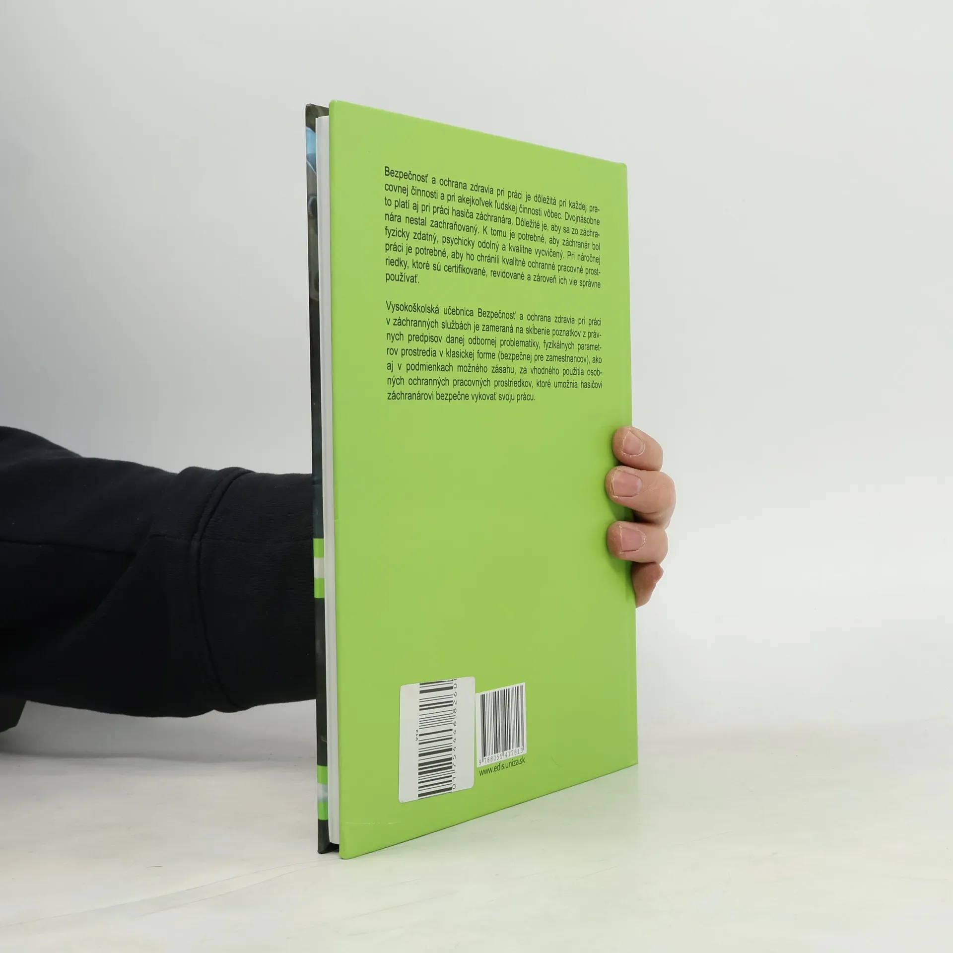Bezpečnosť a ochrana zdravia pri práci je dôležitá pri každej pracovnej činnosti a pri akejkoľvek ľudskej činnosti vôbec. Dvojnásobne to platí aj pri práci hasiča záchranára. Dôležité je, aby sa zo záchranára nestal zachraňovaný. K tomu je potrebné, aby záchranár bol fyzicky zdatný, psychicky odolný a kvalitne vycvičený. Pri náročnej práci je potrebné, aby ho chránili kvalitné ochranné pracovné prostriedky, ktoré sú certifikované, revidované a zároveň ich vie správne používať. Vysokoškolská učebnica je zameraná na skĺbenie poznatkov z právnych predpisov danej odbornej problematiky, fyzikálnych parametrov prostredia v klasickej forme (bezpečnej pre zamestnancov), ako aj v podmienkach možného zásahu, za vhodného použitia osobných ochranných pracovných prostriedkov, ktoré umožnia hasičovi záchranárovi bezpečne vykovať svoju prácu.