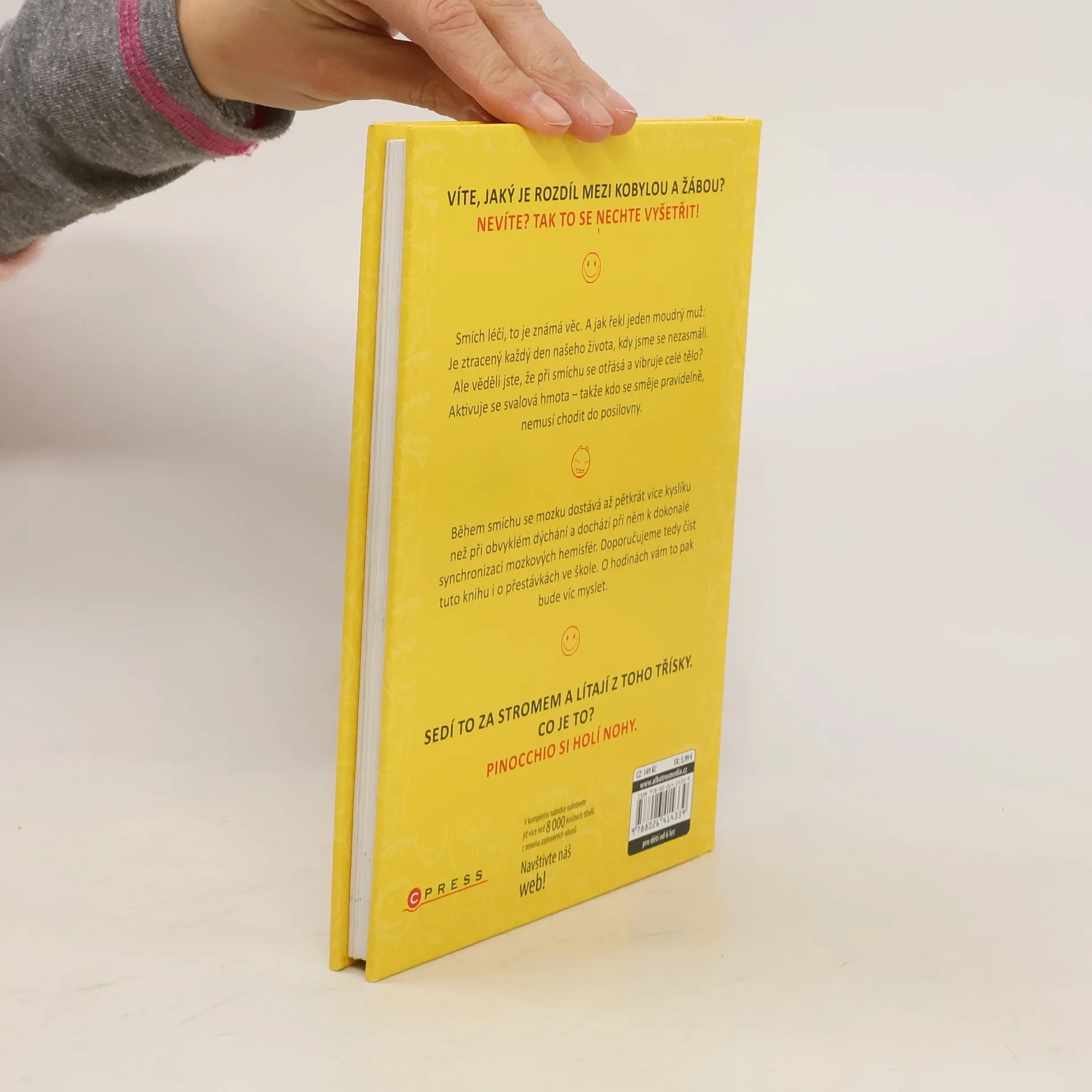 Víte, jaký je rozdíl mezi kobylou a žábou? Nevíte? Tak to se nechte vyšetřit! Smích léčí, to je známá věc. A jak řekl jeden moudrý muž: Je ztracený každý den našeho života, kdy jsme se nezasmáli. Ale věděli jste, že při smíchu se otřásá a vibruje celé tělo? Aktivuje se svalová hmota – takže kdo se směje pravidelně, nemusí chodit do posilovny. Během smíchu se mozku dostává až 5 x více kyslíku než při obvyklém dýchání a dochází při něm k dokonalé synchronizaci mozkových hemisfér. Doporučujeme tedy číst tuto knihu i o přestávkách ve škole. O hodinách vám to pak bude víc myslet.