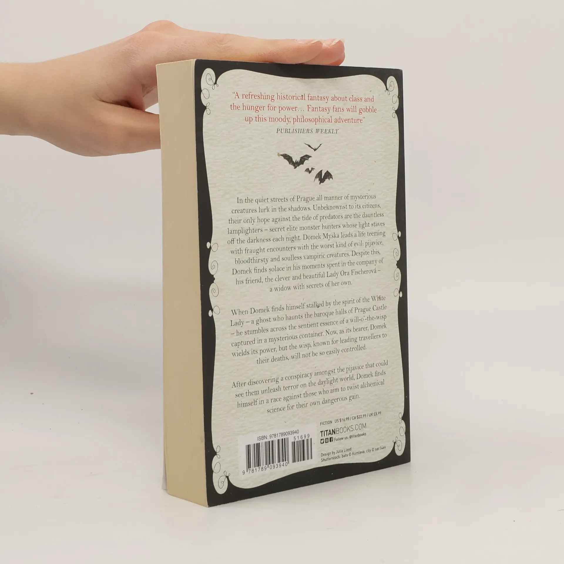 For readers of VE Schwab and The Witcher, science and magic clash in atmospheric gaslight-era Prague. In the quiet streets of Prague all manner of mysterious creatures lurk in the shadows. Unbeknownst to its citizens, their only hope against the tide of predators are the dauntless lamplighters – secret elite of monster hunters whose light staves off the darkness each night. Domek Myska leads a life teeming with fraught encounters with the worst kind of evil: pijavice, bloodthirsty and soulless vampiric creatures. Despite this, Domek finds solace in his moments spent in the company of his friend, the clever and beautiful Lady Ora Fischerová - a widow with secrets of her own. When Domek finds himself stalked by the spirit of the White Lady - a ghost who haunts the baroque halls of Prague castle – he stumbles across the sentient essence of a will-o’-the-wisp captured in a mysterious container. Now, as its bearer, Domek wields its power, but the wisp, known for leading travellers to their deaths, will not be so easily controlled. After discovering a conspiracy amongst the pijavice that could see them unleash terror on the daylight world, Domek finds himself in a race against those who aim to twist alchemical science for their own dangerous gain.