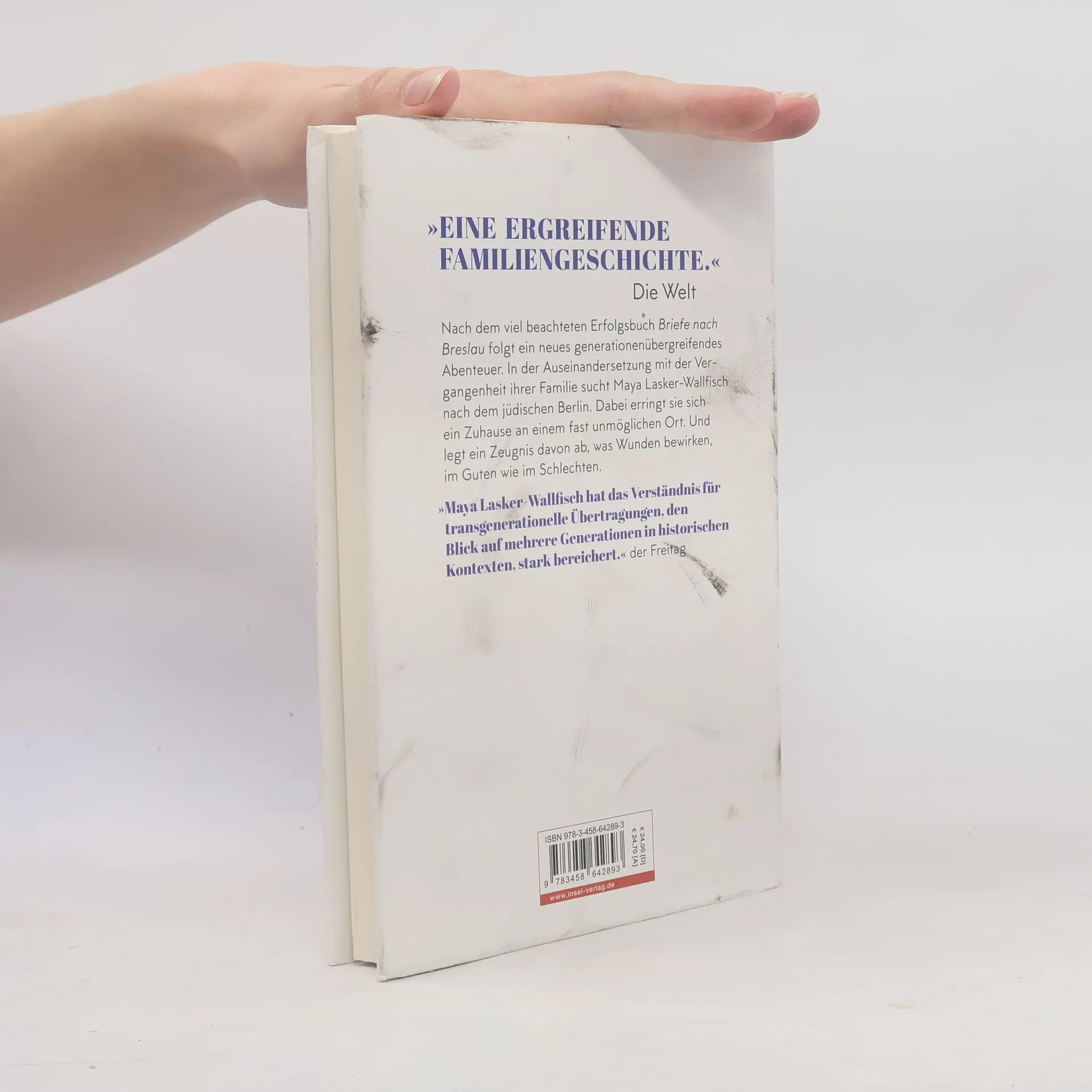 Die Briefe erweckten sie zum Leben. Indem Maya an die von den Nazis ermordeten Großeltern schrieb, entstand eine Beziehung über die Katastrophe des 20. Jahrhunderts hinweg. Für Maya begann danach ein neues Leben, in einer neuen Stadt, eine neue Mission: den Ort, von dem das Verhängnis seinen Ausgang nahm, zu verwandeln, in ein Zuhause, eine befriedete Heimat. Dazu geht Maya auf die Suche nach der jüdischen Vergangenheit und Gegenwart Berlins: Friedhof Weißensee, Pestalozzistraße, Gleis 17 im Grunewald … Im Spiegel dieser Orte und im Zwiegespräch mit den Großeltern rettet sie sich, ihre Familie, ihre jüdische Herkunft. Nach dem viel beachteten Erfolgsbuch Briefe nach Breslau folgt mit Ich schreib euch aus Berlin ein neues transgenerationales Abenteuer. Maya Lasker-Wallfisch erringt sich ein Zuhause an einem fast unmöglichen Ort. Sie legt ein Zeugnis davon ab, was Wunden bewirken, im Guten wie im Schlechten.