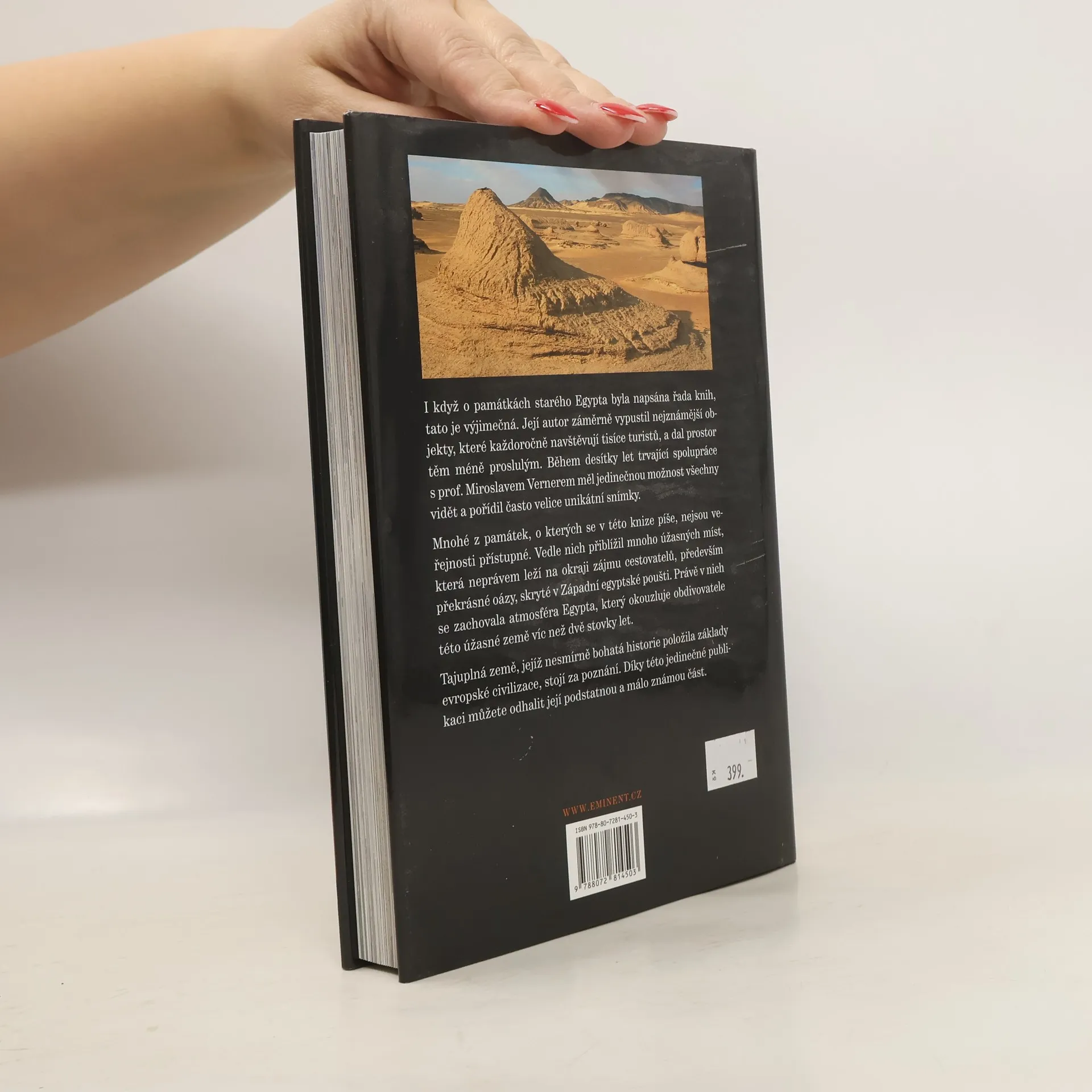 I když o památkách starého Egypta byla napsána řada knih, tato je výjimečná. Její autor záměrně vypustil nejznámější objekty, které každoročně navštěvují tisíce turistů, a dal prostor těm méně proslulým. Během svojí desítky let trvající spolupráce s prof. Miroslavem Vernerem měl jedinečnou možnost všechny vidět a pořídil často velice unikátní snímky. Mnohé z památek, o kterých se v této knize píše, nejsou veřejnosti přístupné. Vedle nich přiblížil mnoho úžasných míst, která neprávem leží na okraji zájmu cestovatelů, především překrásné oázy, skryté v Západní egyptské poušti. Právě v nich se zachovala atmosféra Egypta, který okouzluje obdivovatele této úžasné země víc než dvě stovky let. Tajuplná země, jejíž nesmírně bohatá historie položila základy evropské civilizace, stojí za poznání. Díky této jedinečné publikaci můžete odhalit její podstatnou a málo známou část.