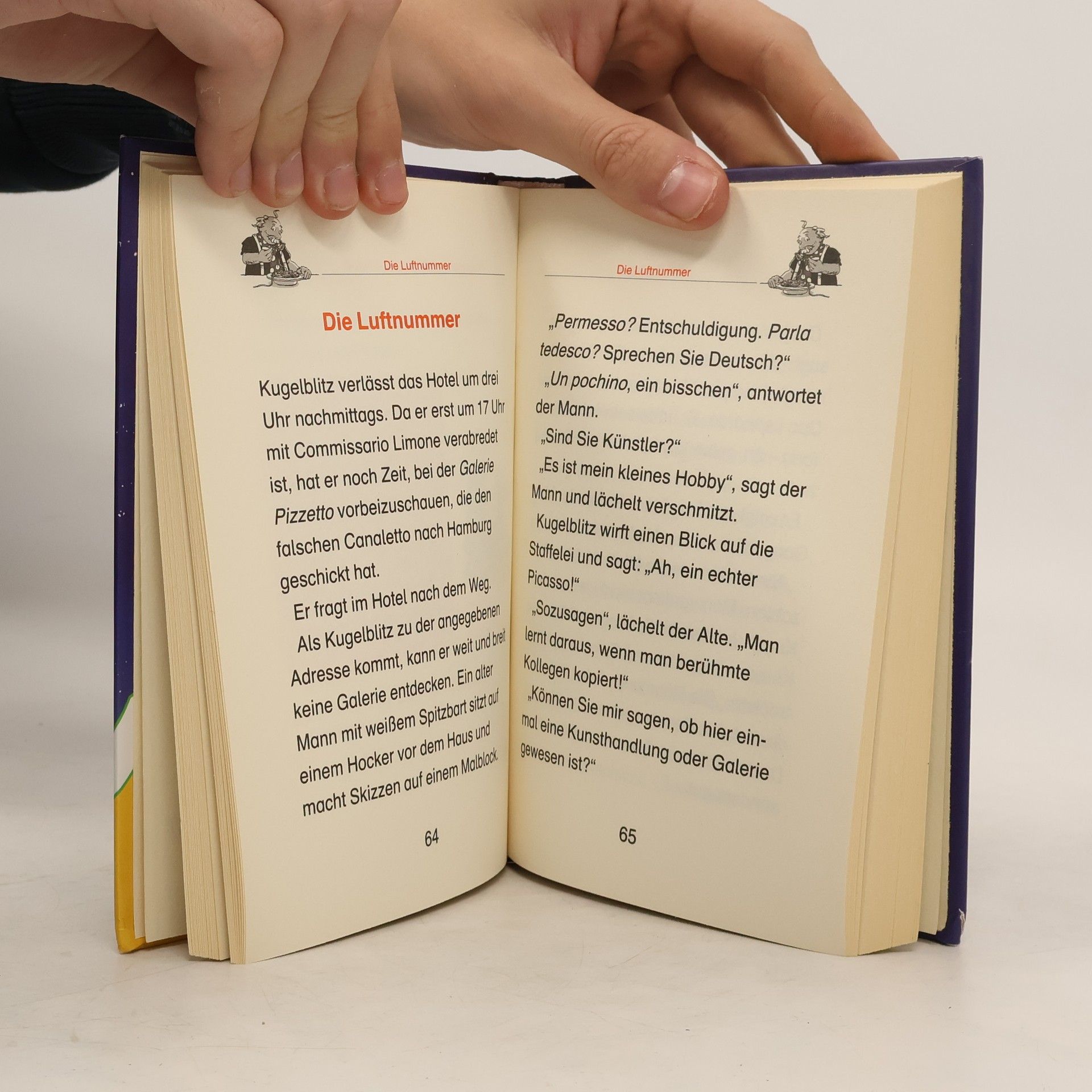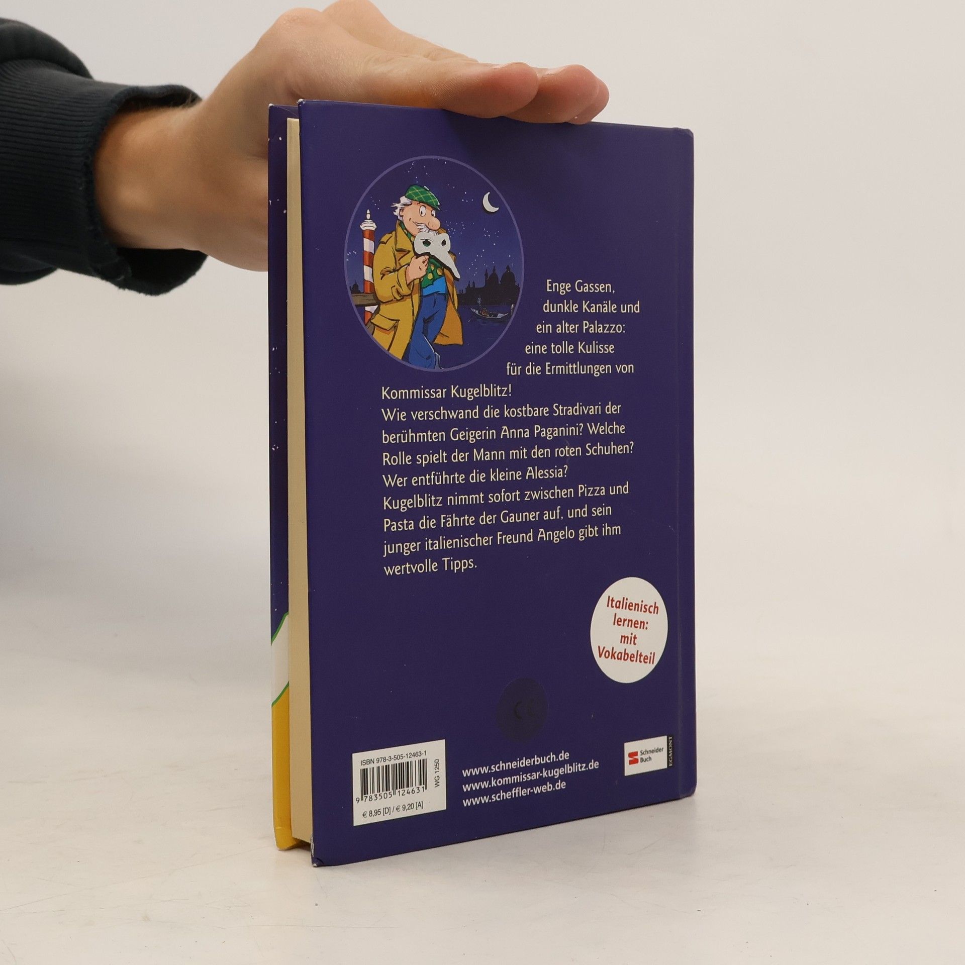 Enge Gassen, dunkle Kanäle und ein alter, baufälliger Palazzo sind die perfekte Kulisse für diesen spannenden venezianischen Kugelblitz-Krimi. Wie verschwand die kostbare Stradivari der berühmten Geigerin Anna Paganini? Welche Rolle spielt der Mann mit den roten Schuhen? Wer entführte die kleine Alessia? Kugelblitz nimmt sofort zwischen Gelati, Pizza und Pasta die Fährte der Gauner auf, und sein junger italienischer Freund Antonio gibt ihm wertvolle Tipps.
