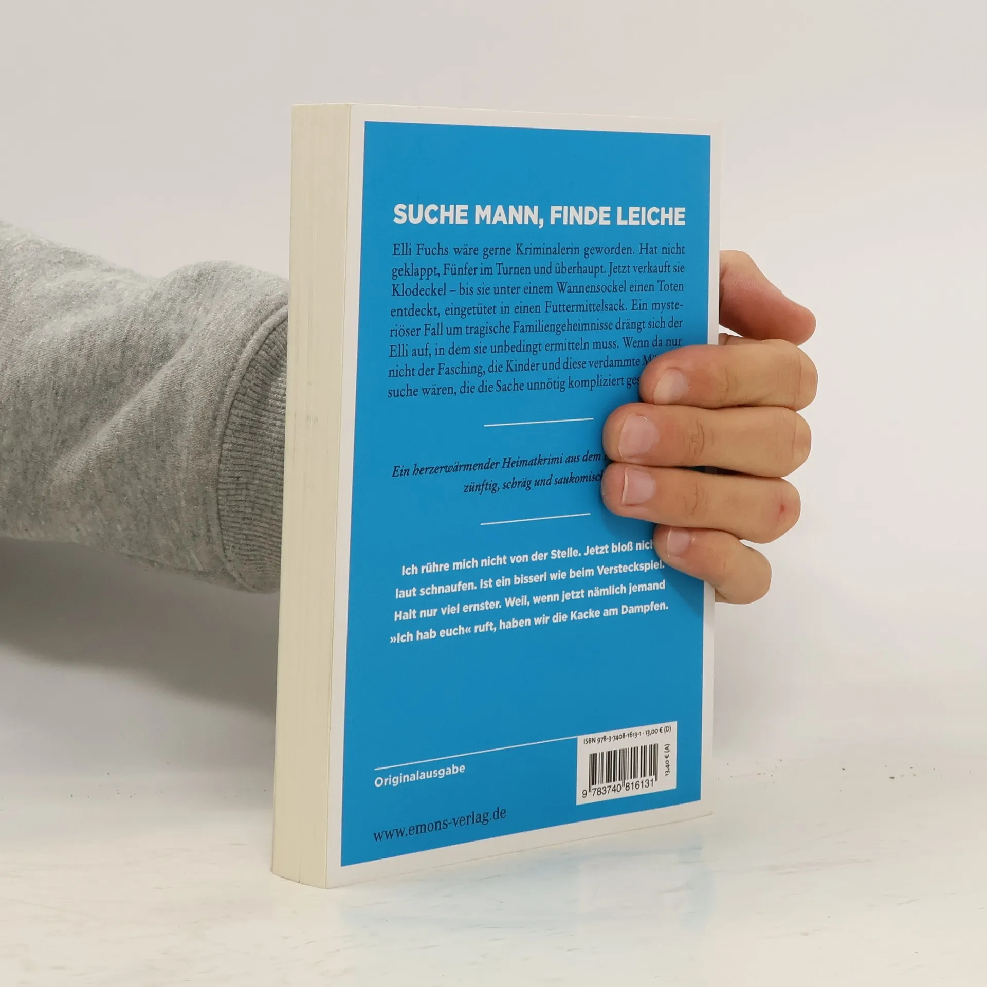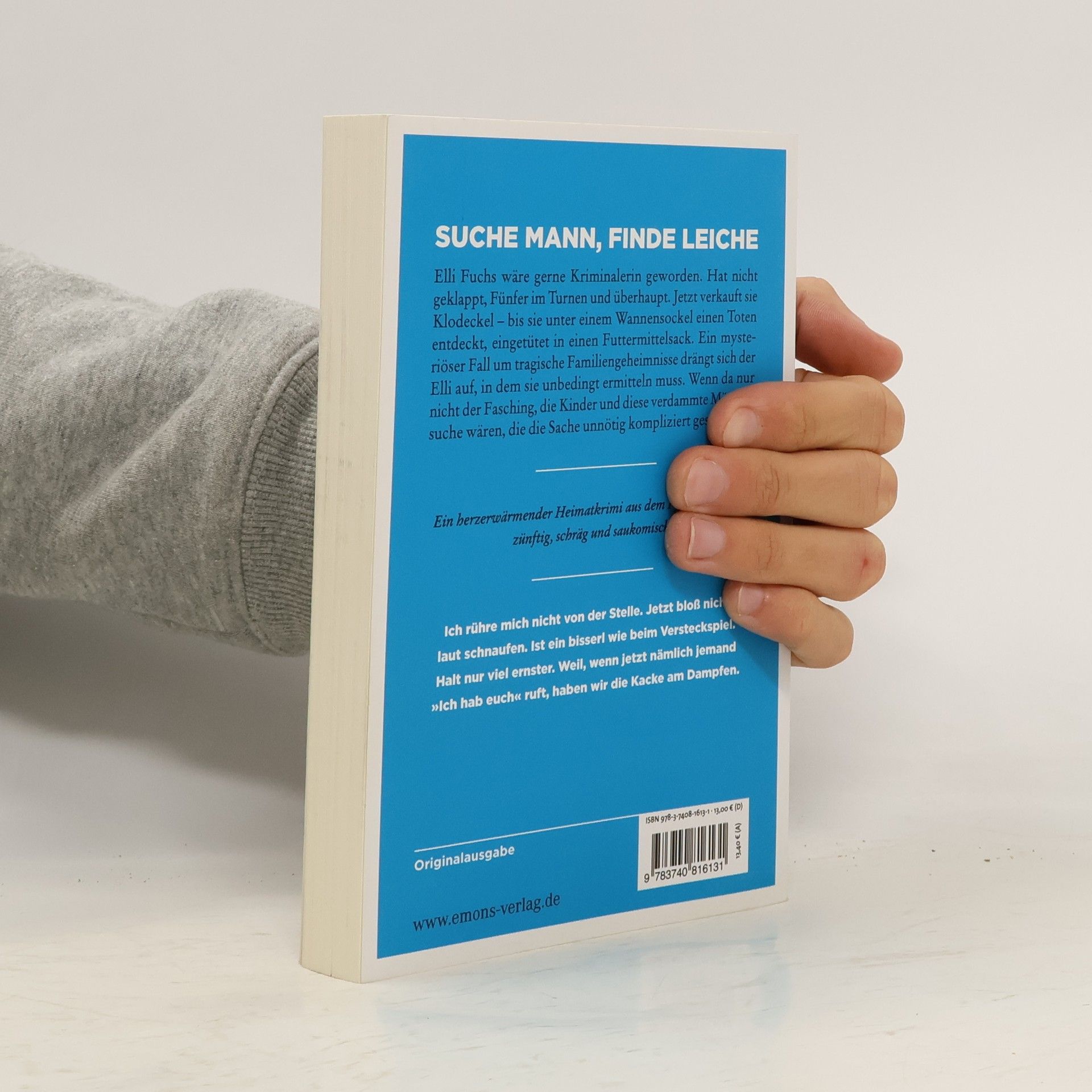 Zünftig, schräg und saukomisch.Elli Fuchs wäre gerne Kriminalerin geworden. Hat nicht geklappt, Fünfer im Turnen und überhaupt. Jetzt verkauft sie Klodeckel – bis sie unter einem Wannensockel einen Toten entdeckt, eingetütet in einen Futtermittelsack. Ein mysteriöser Fall um tragische Familiengeheimnisse drängt sich der Elli auf, in dem sie unbedingt ermitteln muss. Wenn da nur nicht der Fasching, die Kinder und diese verdammte Männersuchewären, die die Sache unnötig kompliziert gestalten …