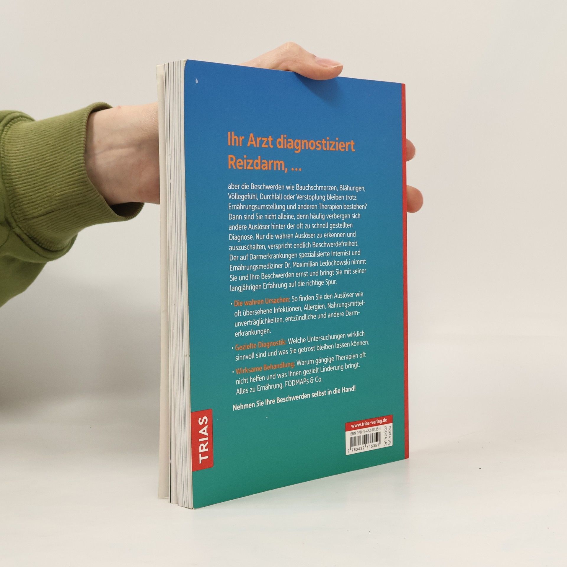 Ihr Arzt diagnostiziert Reizdarm, aber die Beschwerden wie Bauchschmerzen, Blähungen, Völlegefühl, Durchfall oder Verstopfung bleiben trotz Ernährungsumstellung und anderen Therapien bestehen? Dann sind Sie nicht alleine, denn häufig verbergen sich andere Auslöser hinter der oft zu schnell gestellten Diagnose. Nur die wahren Auslöser zu erkennen und auszuschalten, verspricht endlich Beschwerdefreiheit. Der auf Darmerkrankungen spezialisierte Internist und Ernährungsmediziner Dr. Maximilian Ledochowski nimmt Sie und Ihre Beschwerden ernst und bringt Sie mit seiner langjährigen Erfahrung auf die richtige Spur. Die wahren Ursachen: So finden Sie den Auslöser wie oft übersehene Infektionen, Allergien, Nahrungsmittel-Unverträglichkeiten, entzündliche und andere Darmerkrankungen. Gezielte Diagnostik: Welche Untersuchungen wirklich sinnvoll sind und was Sie getrost bleiben lassen können. Wirksame Behandlung: Warum gängige Therapien oft nicht helfen und was Ihnen gezielt Linderung bringt. Alles zu Ernährung, FODMAPs & Co. Nehmen Sie Ihre Beschwerden selbst in die Hand!