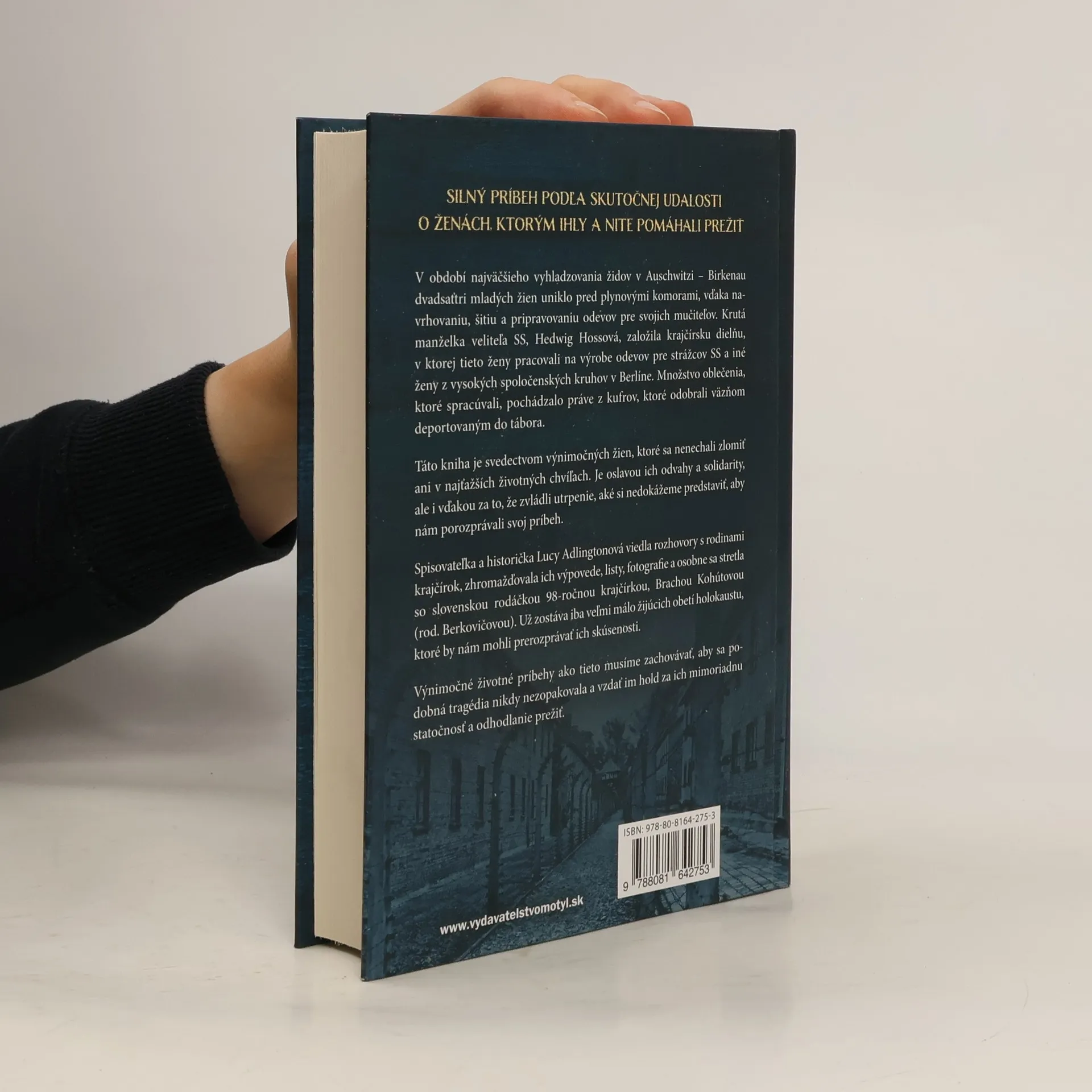Silný príbeh podľa skutočnej udalosti o ženách, ktorým ihly a nite pomáhali prežiť. V období najväčšieho vyhladzovania židov v Auschwitzi - Birkenau dvadsaťtri mladých žien uniklo pred plynovými komorami, vďaka navrhovaniu, šitiu a pripravovaniu odevov pre svojich mučiteľov. Krutá manželka veliteľa SS, Hedwig Hossová, založila krajčírsku dielňu, v ktorej tieto ženy pracovali na výrobe odevov pre strážcov SS a iné ženy z vysokých spoločenských kruhov v Berlíne. Množstvo oblečenia, ktoré spracúvali, pochádzalo práve z kufrov, ktoré odobrali väzňom deportovaným do tábora. Táto kniha je svedectvom výnimočných žien, ktoré sa nenechali zlomiť ani v najťažších životných chvíľach. Je oslavou ich odvahy a solidarity, ale i vďakou za to, že zvládli utrpenie, aké si nedokážeme predstaviť, aby nám porozprávali svoj príbeh. Spisovateľka a historička Lucy Adlingtonová viedla rozhovory s rodinami krajčírok, zhromažďovala ich výpovede, listy, fotografie a osobne sa stretla s 98-ročnou krajčírkou, Brachou Kohútovou (rod. Berkovičovou), ktorá ako jediná prežila. Už zostáva iba veľmi málo žijúcich obetí holokaustu, ktoré by nám mohli prerozprávať ich skúsenosti. Výnimočné životné príbehy ako tieto musíme zachovávať, aby sa podobná tragédia nikdy nezopakovala a vzdať im hold za ich mimoriadnu statočnosť a odhodlanie prežiť.