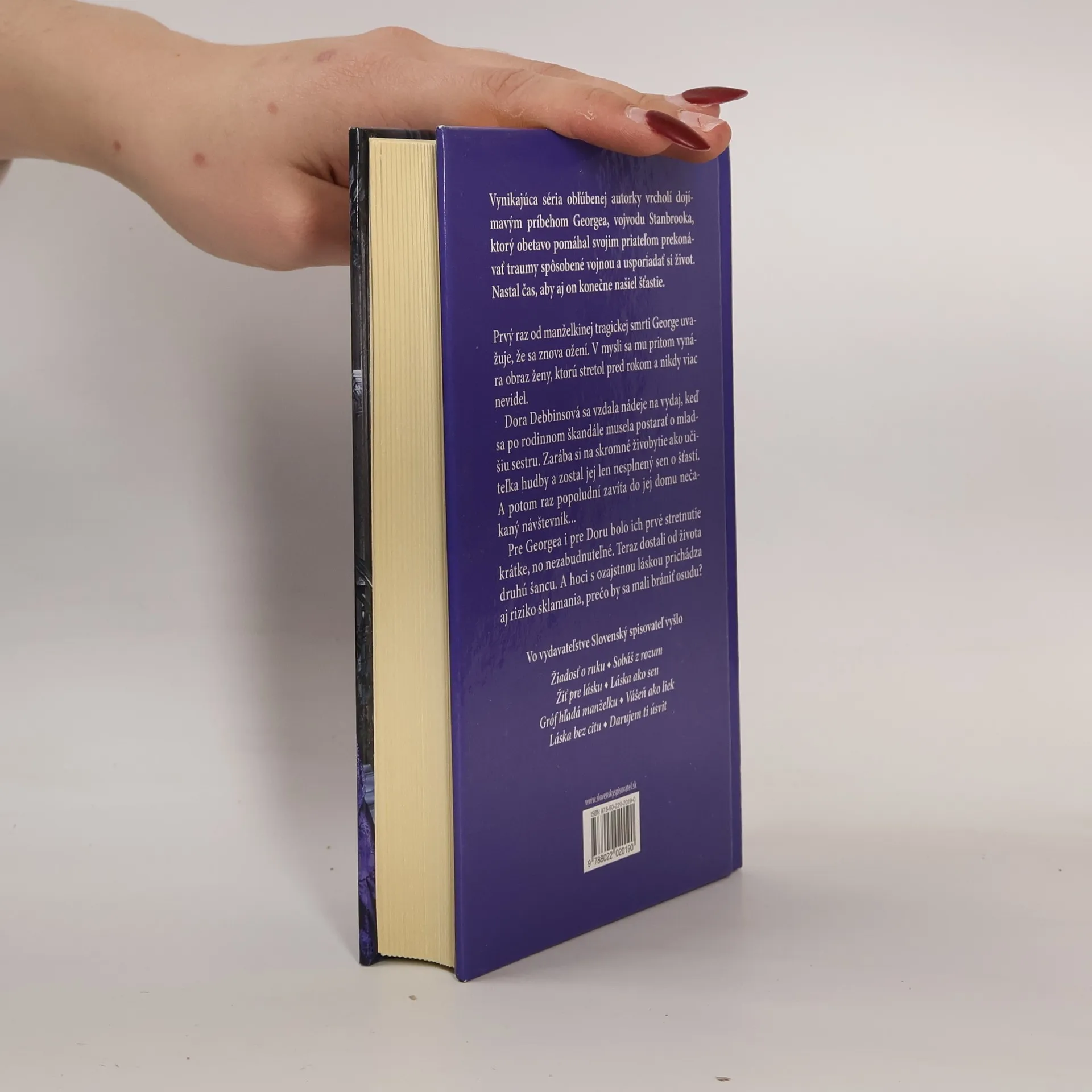 Záverečný diel vynikajúcej série obľúbenej autorky ponúka dojímavý príbeh Georgea, vojvodu Stanbrooka, ktorý obetavo pomáhal priateľom prekonávať traumy spôsobené vojnou a usporiadať si život. Nastal čas, aby aj on konečne našiel šťastie. Prvý raz od manželkinej tragickej smrti George uvažuje, že sa znova ožení. V mysli sa mu pritom vynára obraz ženy, ktorú stretol pred rokom a nikdy viac nevidel. Dora Debbinsová sa vzdala nádeje na vydaj, keď sa po rodinnom škandále musela postarať o mladšiu sestru. Zarába si na skromné živobytie ako učiteľka hudby a zostal jej len nesplnený sen o šťastí. A potom raz popoludní zavíta do jej domu nečakaný návštevník...
