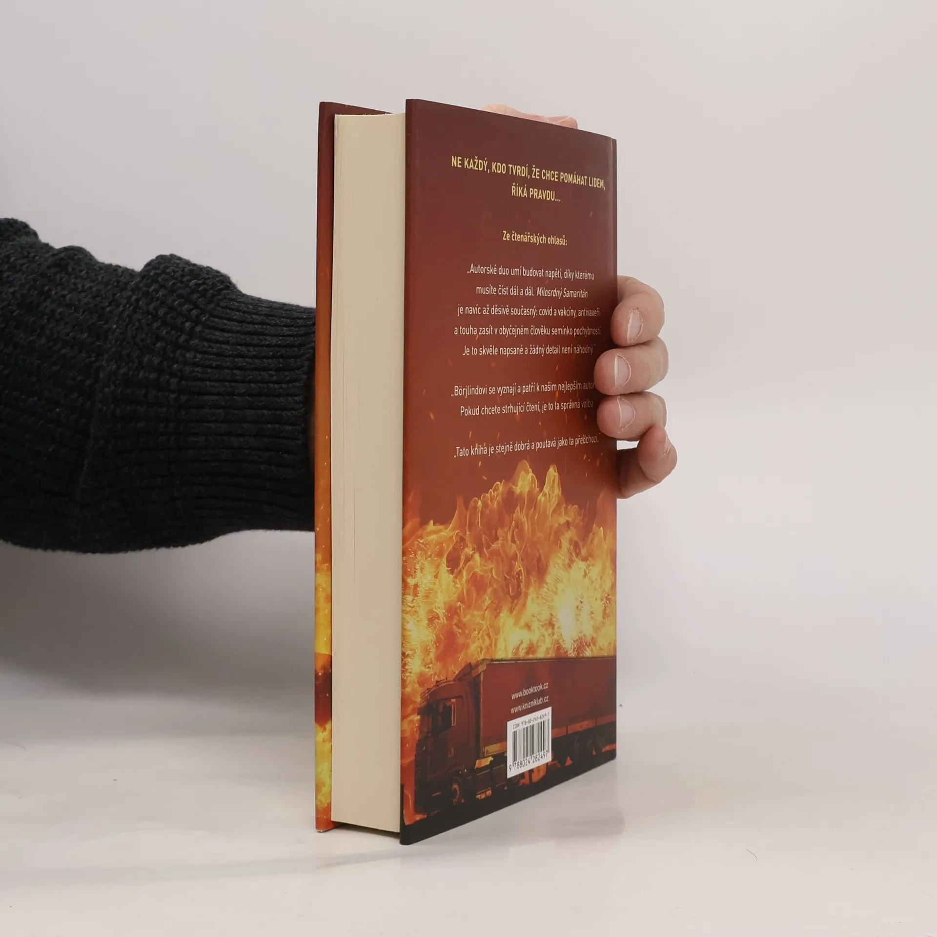 Ne každý, kdo tvrdí, že chce pomáhat lidem, říká pravdu... Olivia Rönningová zmizela. Její kolegyni Lise Hedqvistové brzy dojde, že musela být unesena. Když se Tom Stilton dozví, co se stalo, rozhodne se hned opustit svou ostrovní covidovou karanténu. Lisa a Tom se vydávají po stopách, a ty je zavedou k osamělé chatě. Když k ní však dorazí, je v plamenech a později je v jejích ruinách nalezeno ohořelé ženské tělo. Je to Olivia? Mezitím byla Mette Olsäterová, jejich šéfka na penzi, jmenována národní koordinátorkou dodávek vakcín proti covidu. Jenže kdosi je odhodlán udělat cokoli, aby jejich doručení sabotoval. Milosrdný samaritán je další knihou z bestsellerové severské detektivní série Skočný příliv.