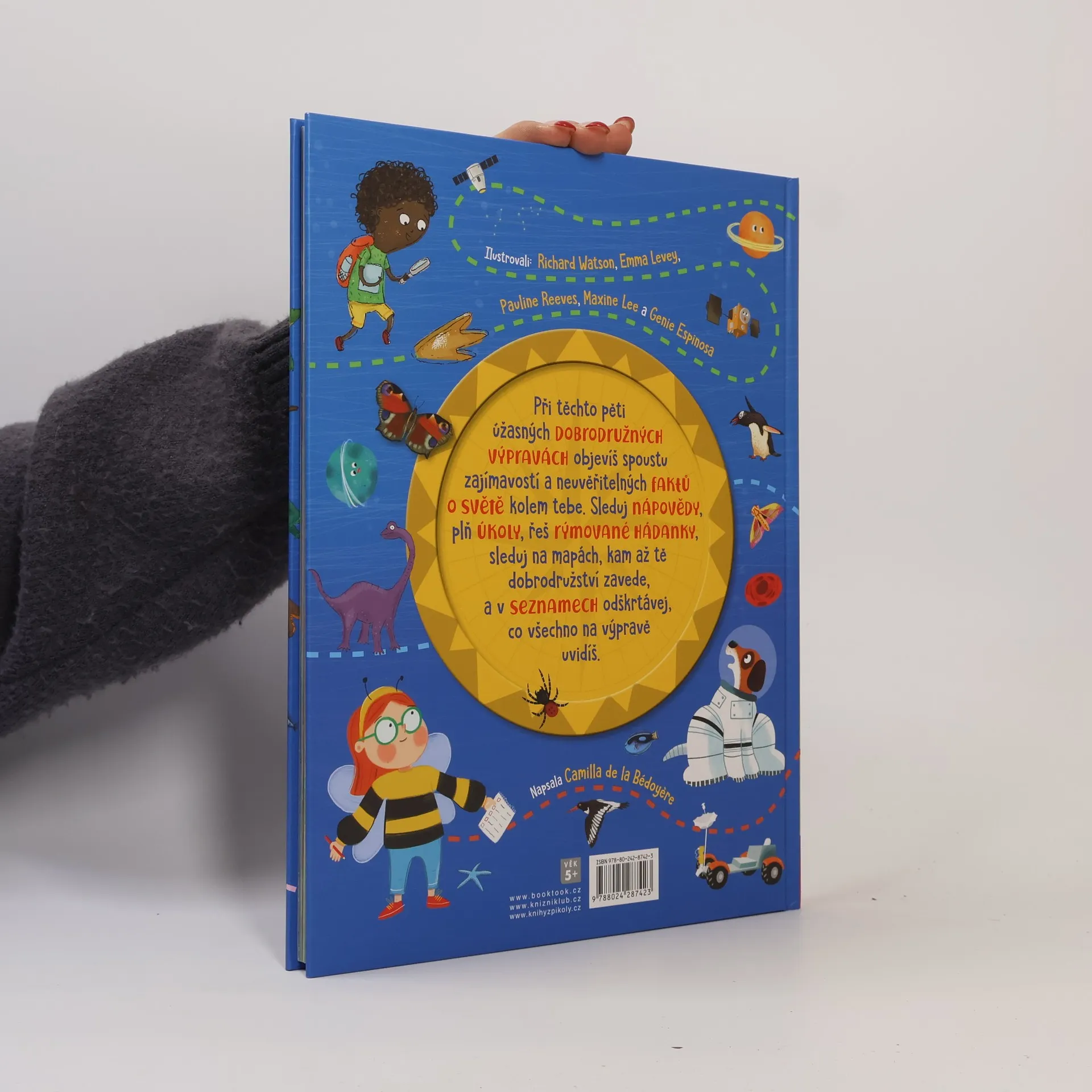 Vydej se na cestu kolem světa a prožij pět úžasných dobrodružství! Putuj časem, a dokonce i vesmírem. Fascinující informace a rýmované hádanky ti vše napoví. Hledej v krásných ilustracích plných nápaditých detailů. Každý příběh má své vlastní postavy, na které je třeba dávat pozor, a hlavně mapu, do níž si můžeš vyznačit svou trasu. Tak na co ještě čekáš? Hurá za dobrodružstvím!