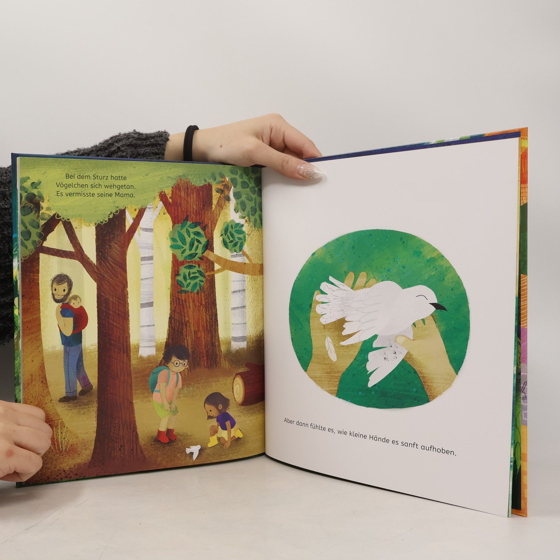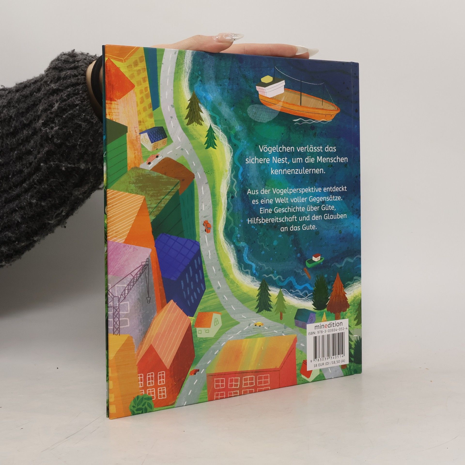 „Stell‘ dir vor, Mama“, sagte Vögelchen. „Ich habe die Menschen gesehen!“ „Und wie sind sie?“, fragte Mama gespannt. „Sie sind alle ganz verschieden“, antwortete Vögelchen. „Aber die, die gut zu mir waren, werde ich nie vergessen.“ • Ein Buch, das die Gegensätze in der Welt zeigt • Über Güte, Hilfsbereitschaft und den Glauben an das Gute • Ausdrucksstarke und farbenfrohe Bilder Lädt ein zum Gespräch über die Gestaltung des eigenen Handelns