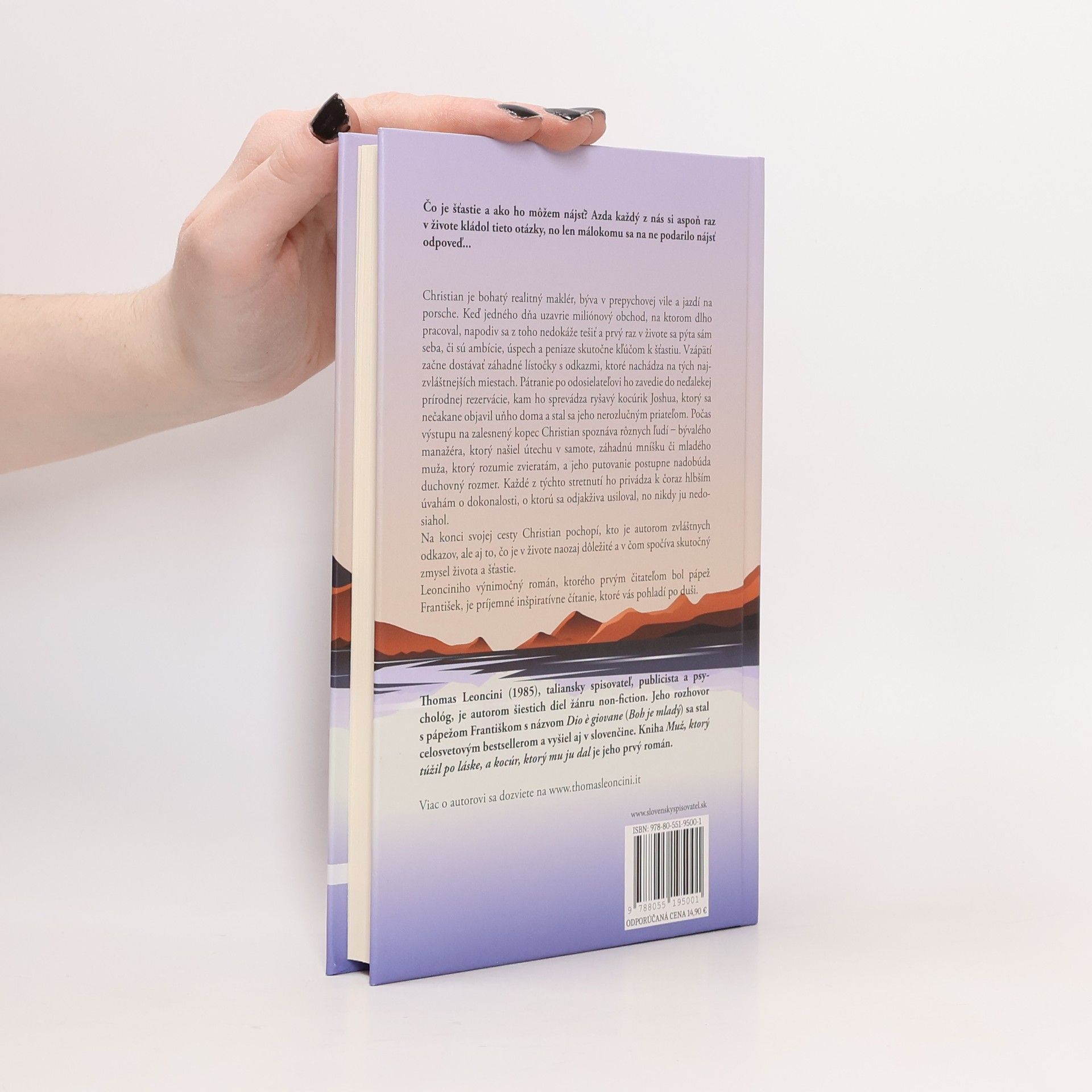 Čo je šťastie a ako ho môžem nájsť? Azda každý z nás si aspoň raz v živote kládol tieto otázky, no len málokomu sa na ne podarilo nájsť odpoveď... Christian je bohatý realitný maklér, býva v prepychovej vile a jazdí na porsche. Keď jedného dňa uzavrie miliónový obchod, na ktorom dlho pracoval, napodiv sa z toho nedokáže tešiť a prvý raz v živote sa pýta sám seba, či sú ambície, úspech a peniaze skutočne kľúčom k šťastiu. Vzápätí začne dostávať záhadné lístočky s odkazmi, ktoré nachádza na tých najzvláštnejších miestach. Pátranie po odosielateľovi ho zavedie do neďalekej prírodnej rezervácie, kam ho sprevádza ryšavý kocúrik Joshua, ktorý sa nečakane objavil uňho doma a stal sa jeho nerozlučným priateľom. Počas výstupu na zalesnený kopec Christian spoznáva rôznych zvláštnych ľudí - bývalého manažéra, ktorý našiel útechu v samote, záhadnú mníšku či mladého muža, ktorý rozumie zvieratám, a jeho putovanie postupne nadobúda duchovný rozmer. Každé z týchto stretnutí ho privádza k čoraz hlbším úvahám o dokonalosti, o ktorú sa odjakživa usiloval, no nikdy ju nedosiahol. Na konci svojej cesty Christian pochopí, kto je autorom zvláštnych odkazov, ale aj to, čo je v živote naozaj dôležité a v čom spočíva skutočný zmysel života a šťastie. Leonciniho výnimočný román, ktorého prvým čitateľom bol pápež František, je príjemné inšpiratívne čítanie, ktoré vás pohladí po duši.